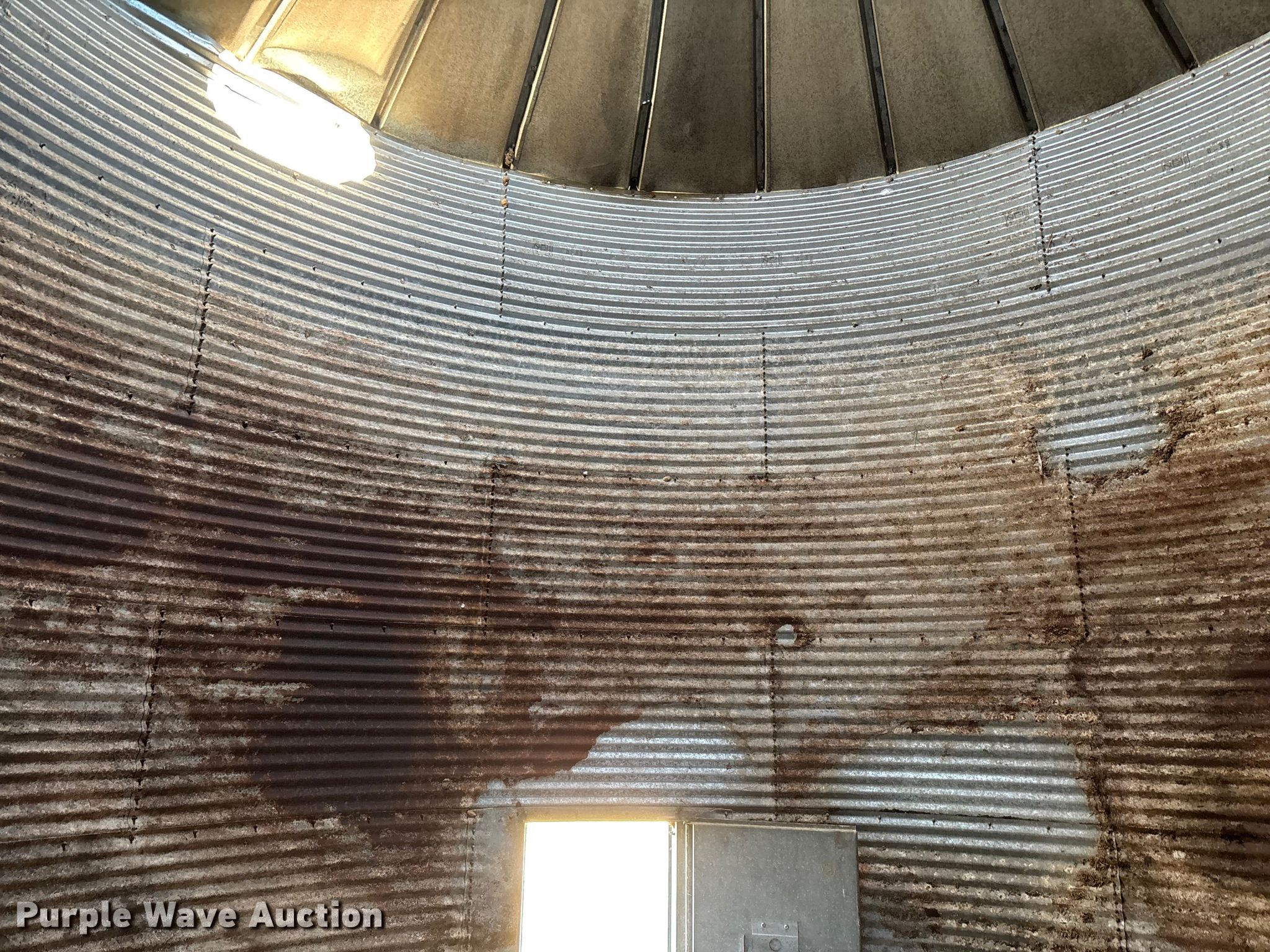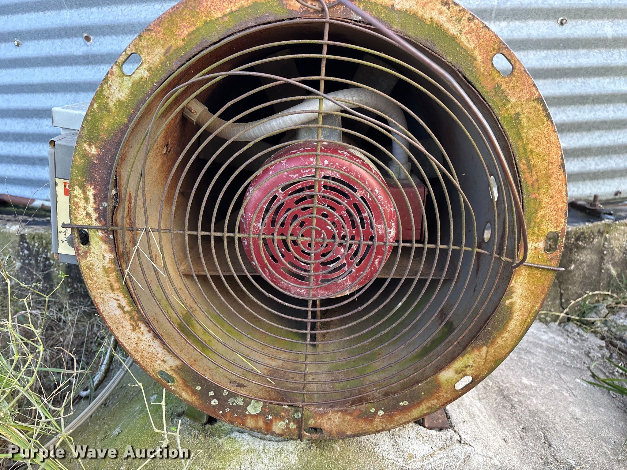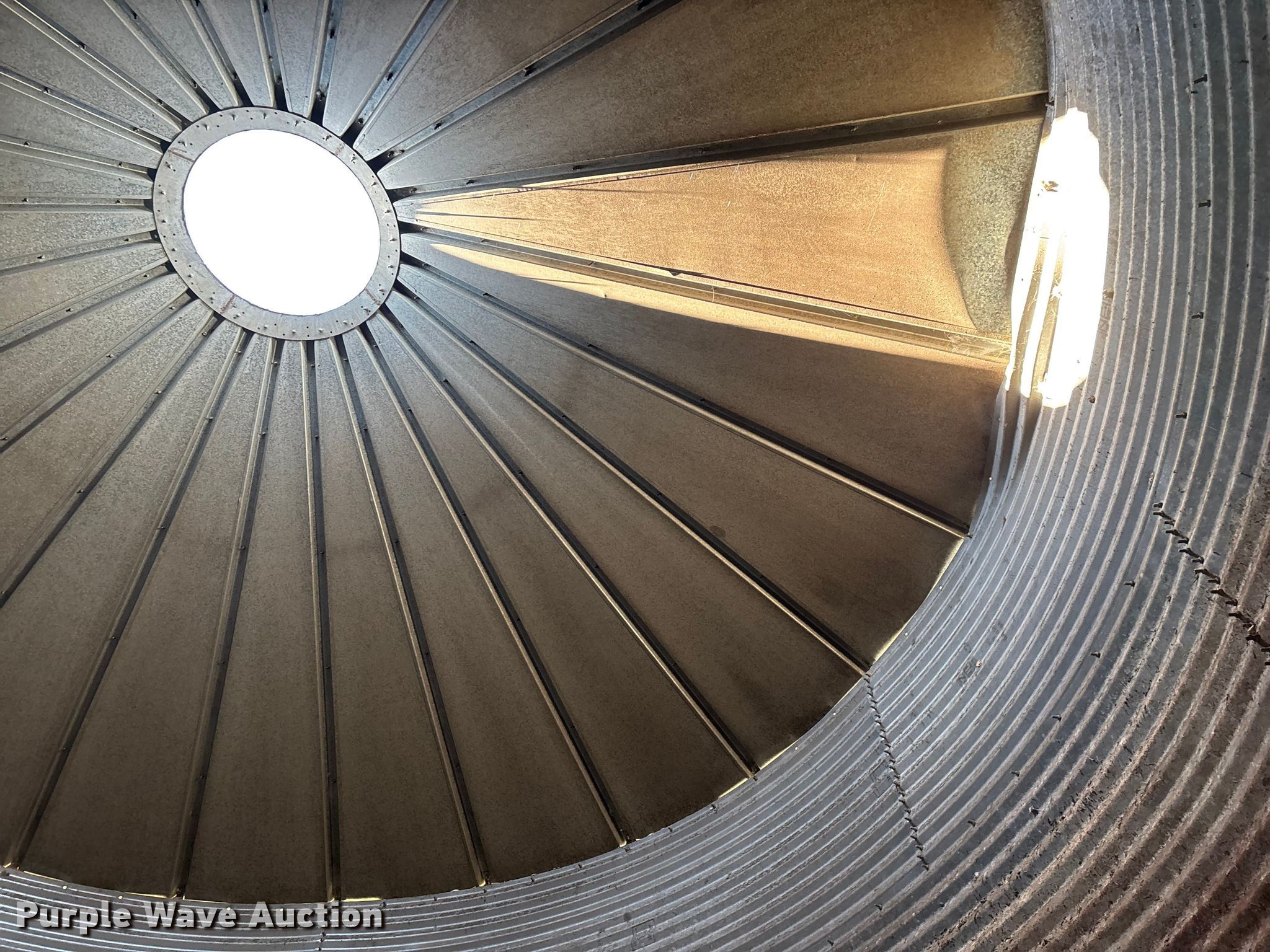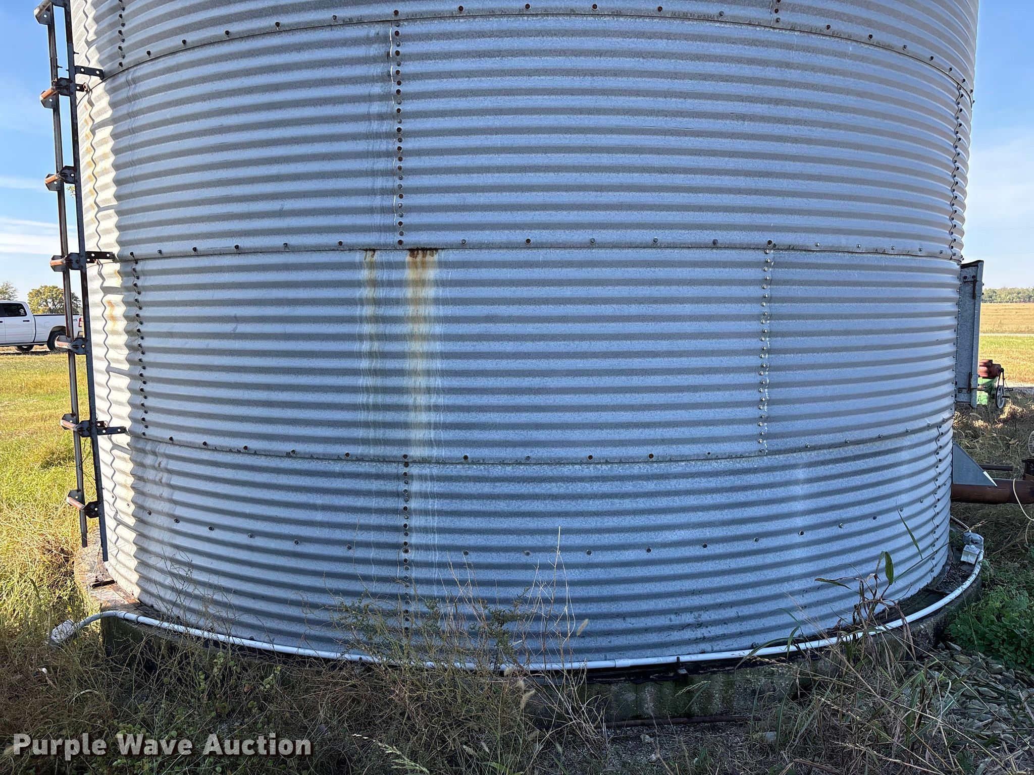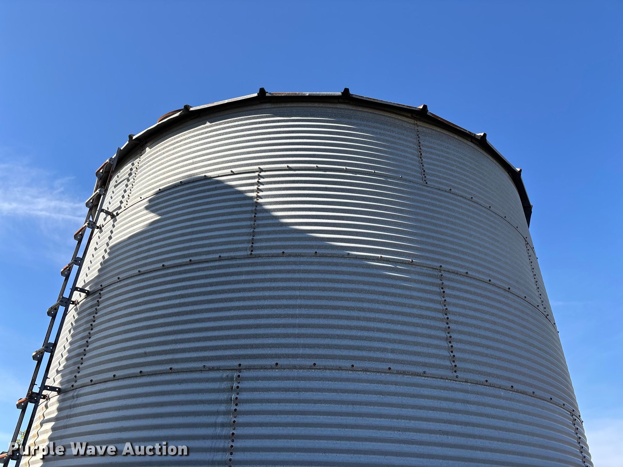 Purple Wave is selling a used Other Grain or Fertilizer Handling in Kansas. This item is a MFS grain bin with the following: Diameter: 17'10", (6) rings, Approx. 32", Unload auger, Diameter: 6", Length: 33.5", Electric motor, Baldor Reliance Farm Duty, HP: 1, Volts: 115/230, Phase: Single, Drying fan