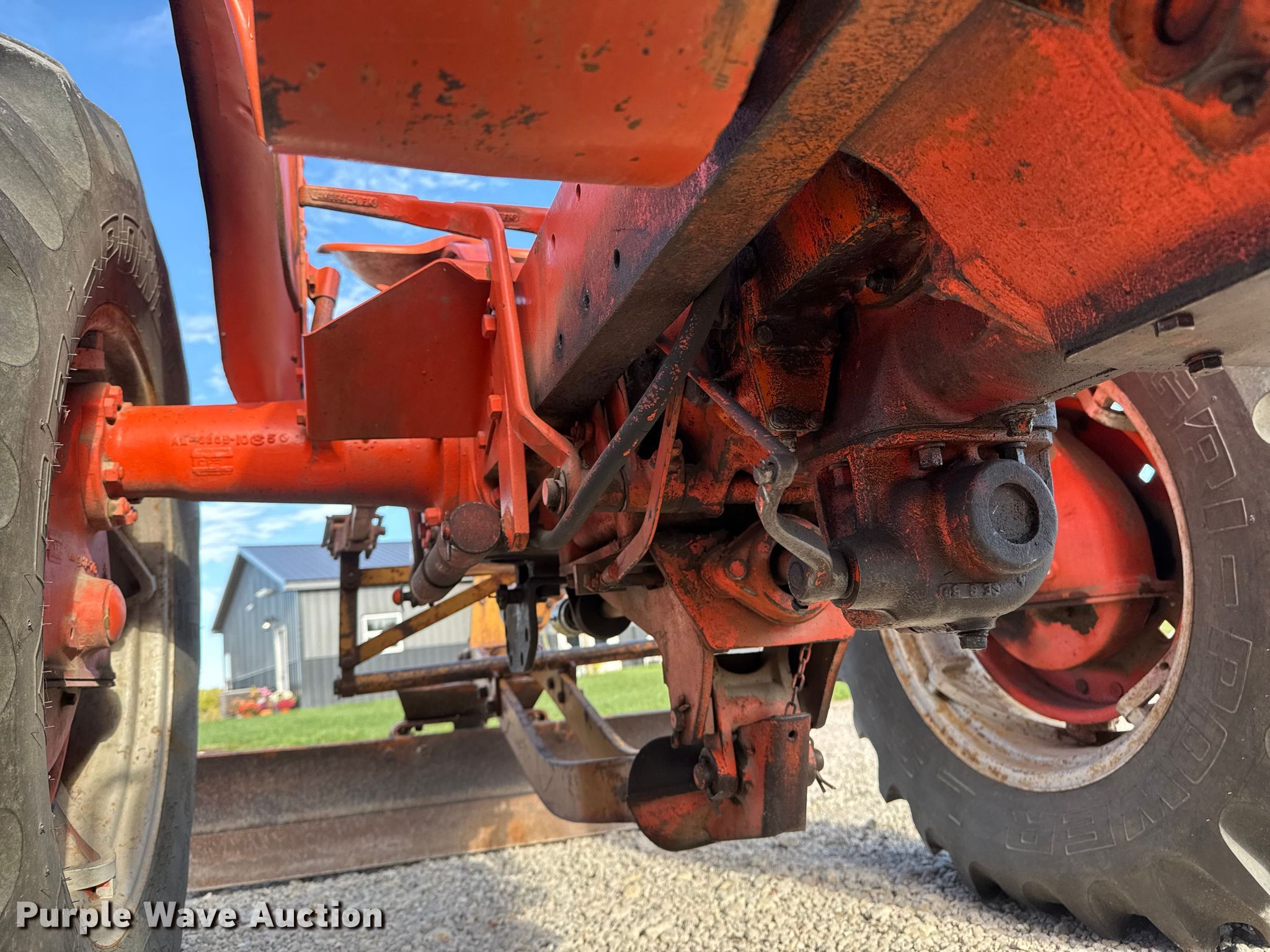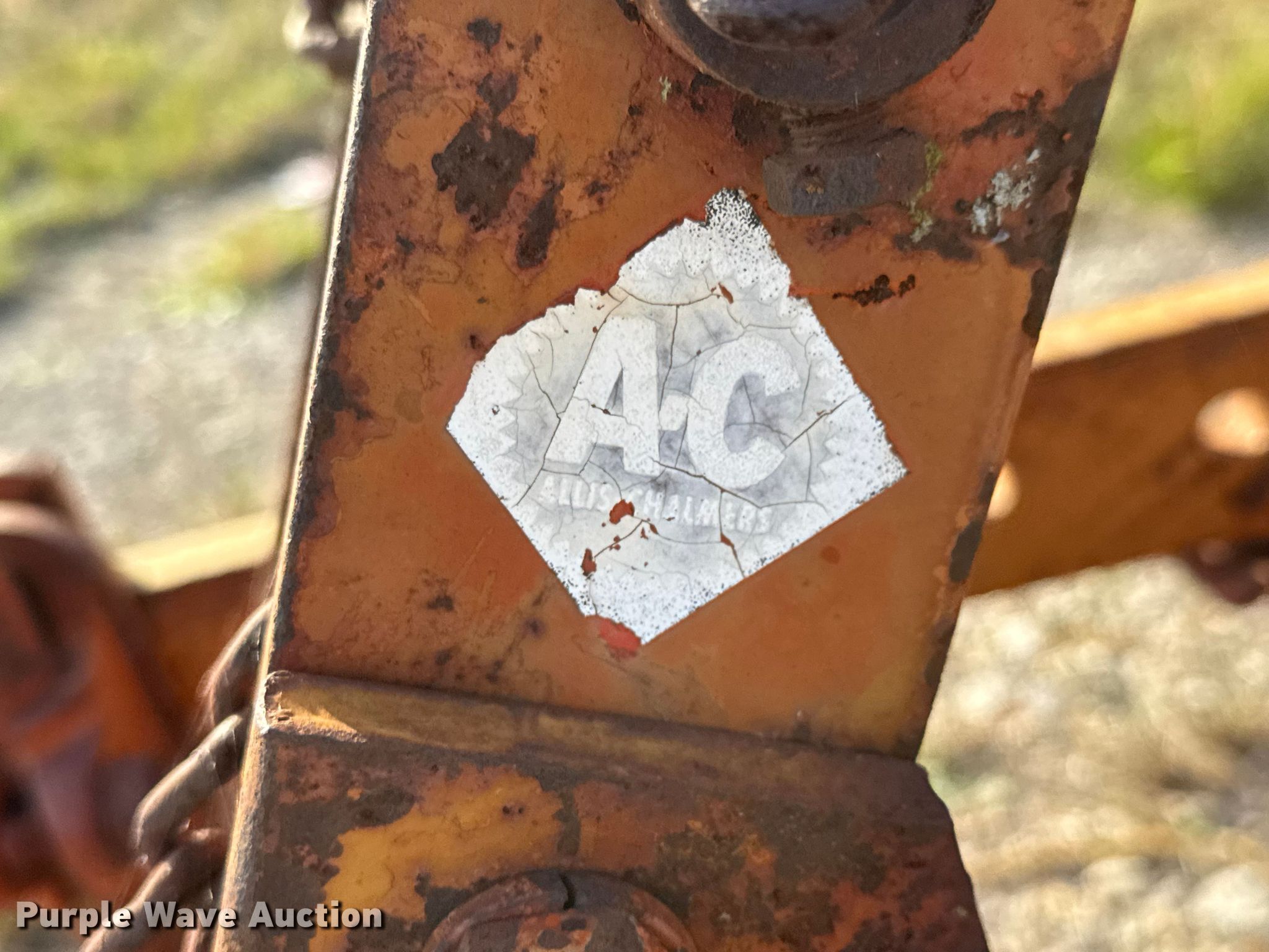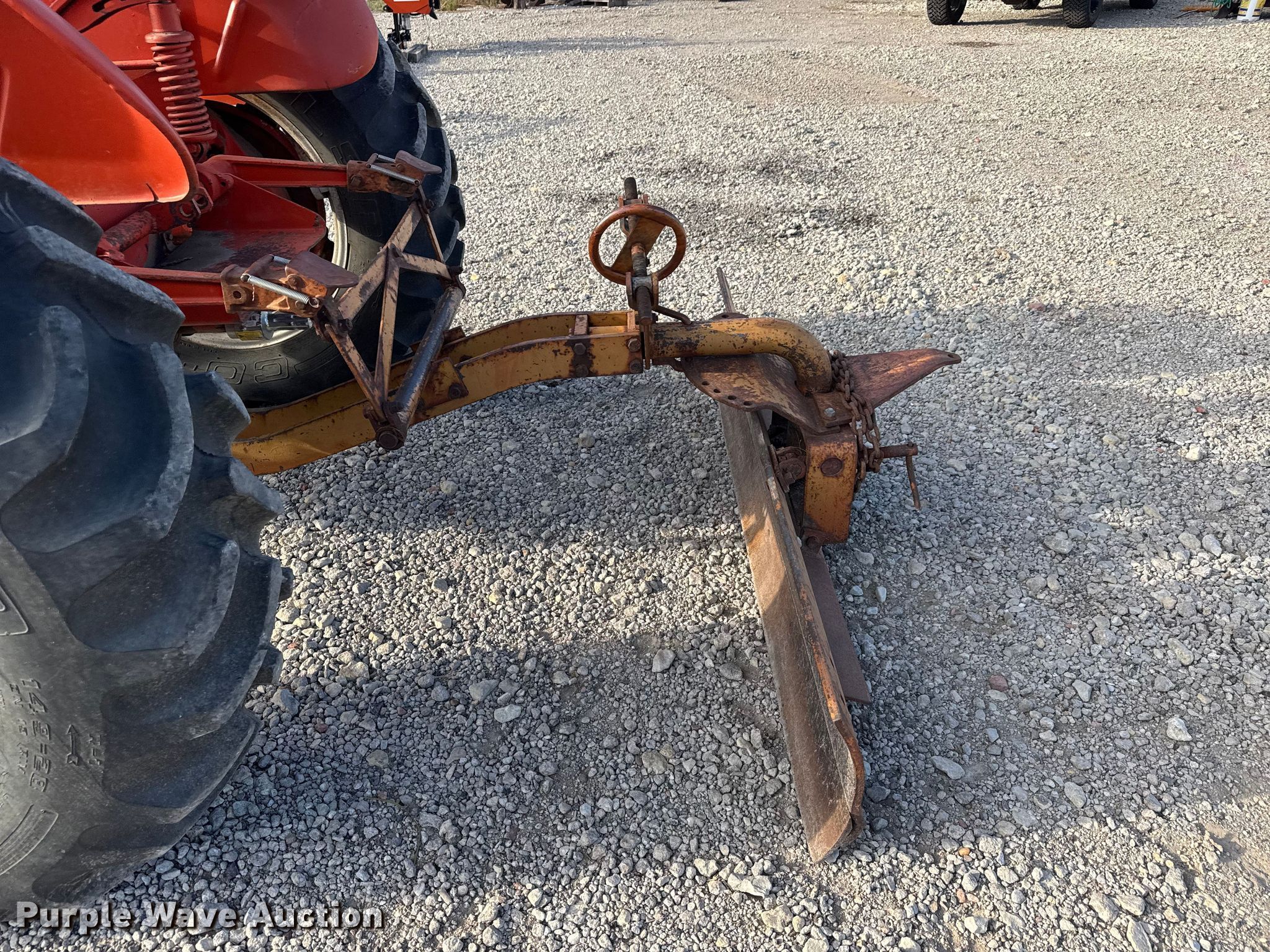1955 Allis-Chalmers WD45 tractor. Serial: WD20312. Engine Cylinders: 4, Fuel type: Gas. Transmission Manual, 4F - 1R. Features PTO: 540, Three point, 72" W blade, Bale mover, Allis-Chalmers three bottom plow, Chisel Width: 8', Shanks: 24. Tires Front: 5.50-16, Rear: 14.9-28. Fab Works LLC. Windom, KS 67491