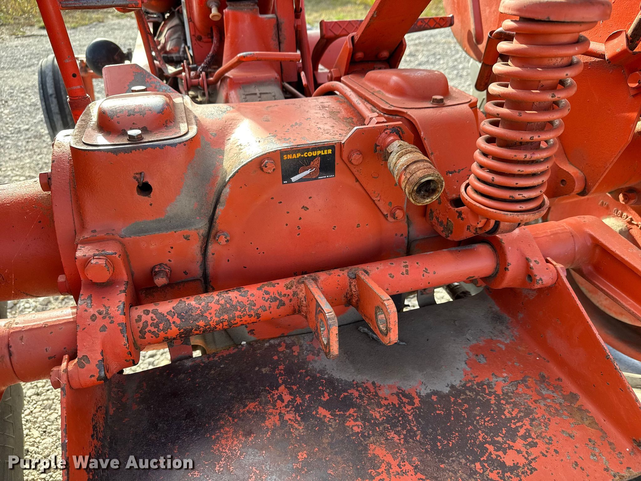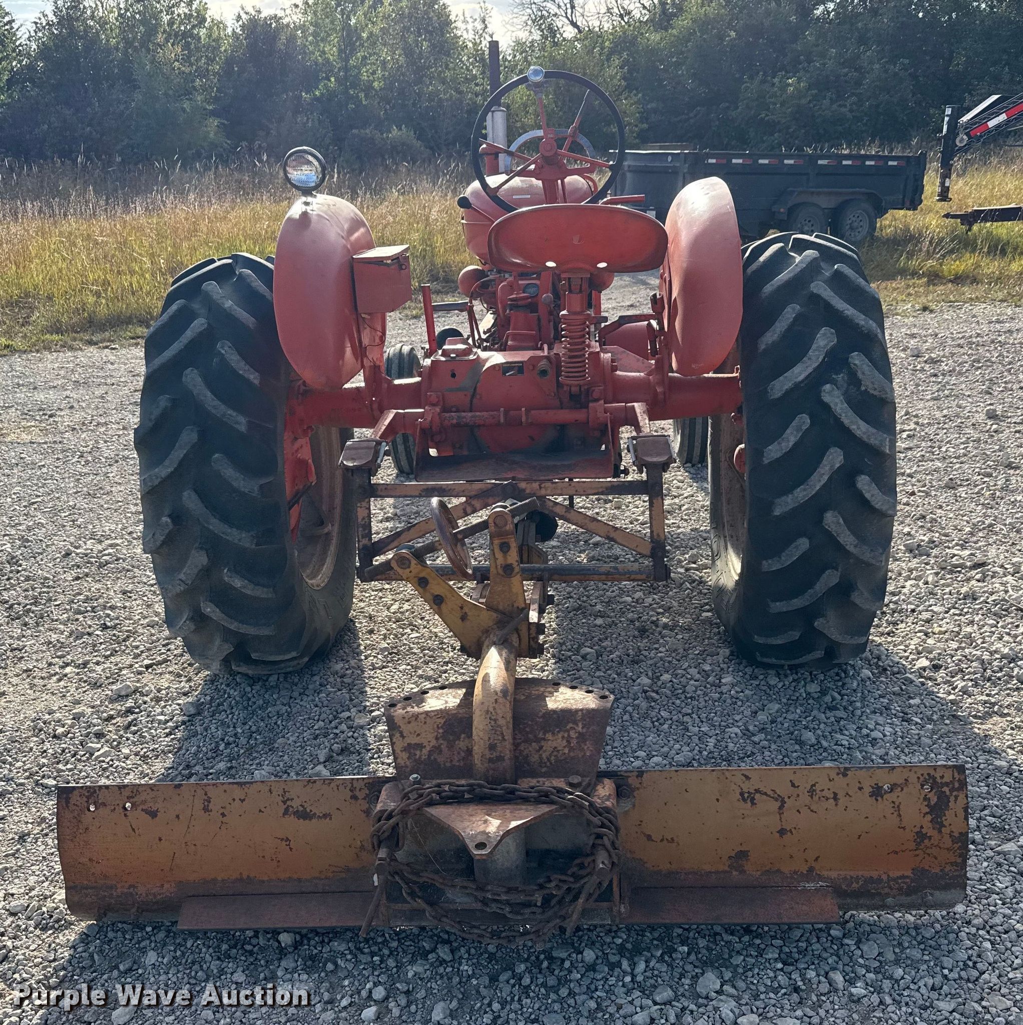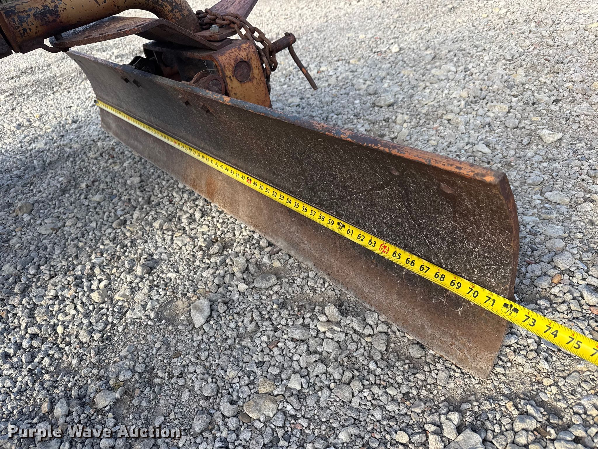 1955 Allis-Chalmers WD45 tractor. Serial: WD20312. Engine Cylinders: 4, Fuel type: Gas. Transmission Manual, 4F - 1R. Features PTO: 540, Three point, 72" W blade, Bale mover, Allis-Chalmers three bottom plow, Chisel Width: 8', Shanks: 24. Tires Front: 5.50-16, Rear: 14.9-28. Fab Works LLC. Windom, KS 67491