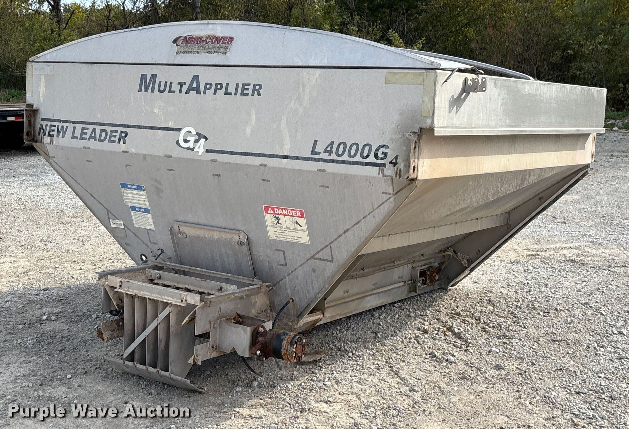 Take a look at this used New Leader MultApplier L4000G4 spreader bed insert being sold on December 10th, 2025 in the Wednesday December 10 Ag Equipment Auction made by New Leader. Take a look at all of the item information below or take a look at similar auctions for Applicators.