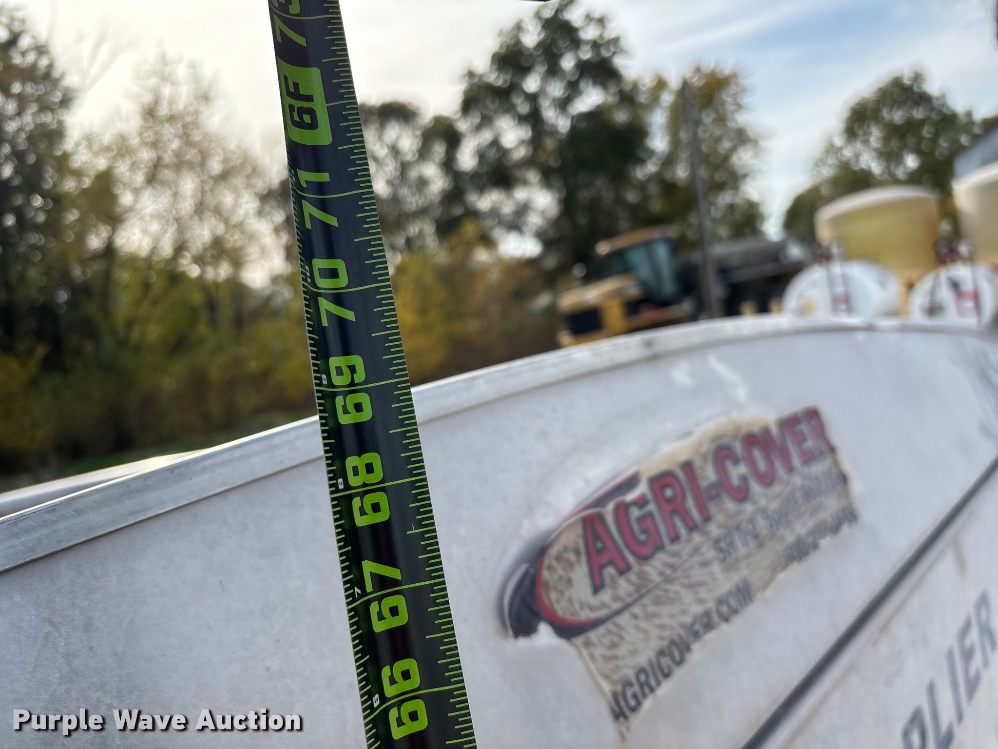 New Leader MultApplier L4000G4 spreader bed insert. Serial: 321158. Dimensions Overall Length: 8' 6", Width: 8' 6", Height: 69", Interior Length: 7', Width: 8' 6", Height: 44". Features Conveyor belt Width: 18", Roll tarp Donovan, Tarp mounts Agri-Cover. MFA Ag Inc. Lamar, MO 64759
