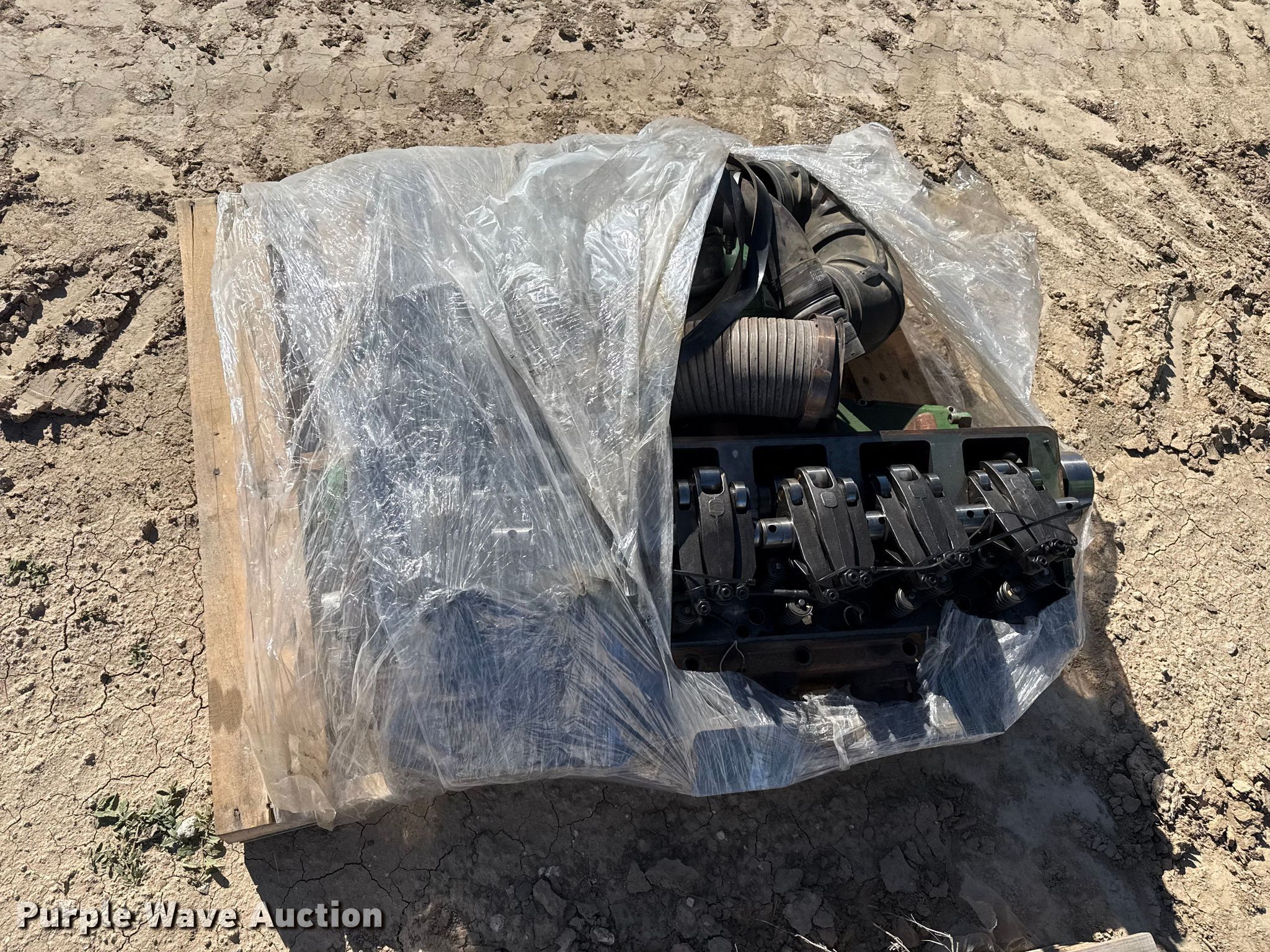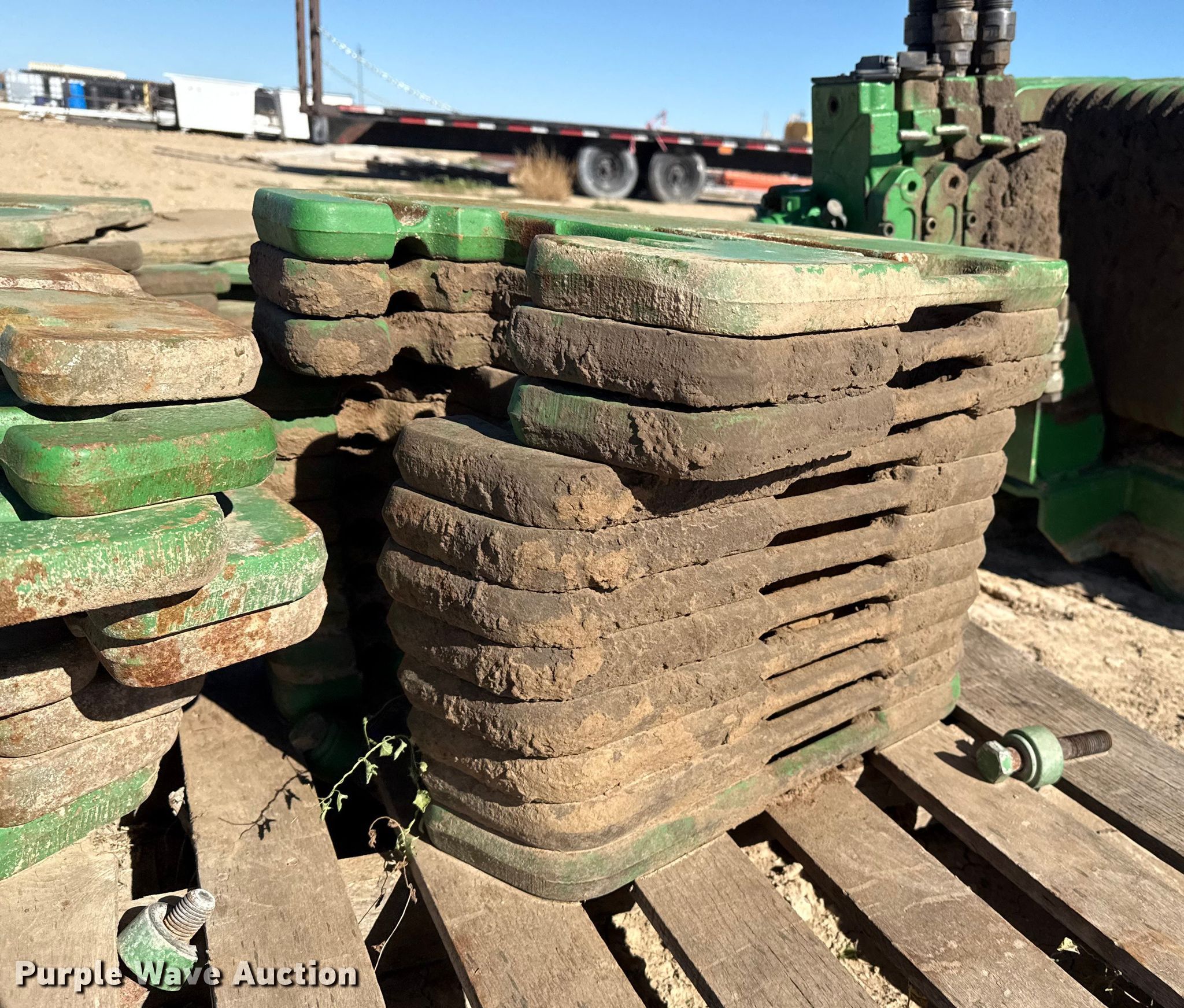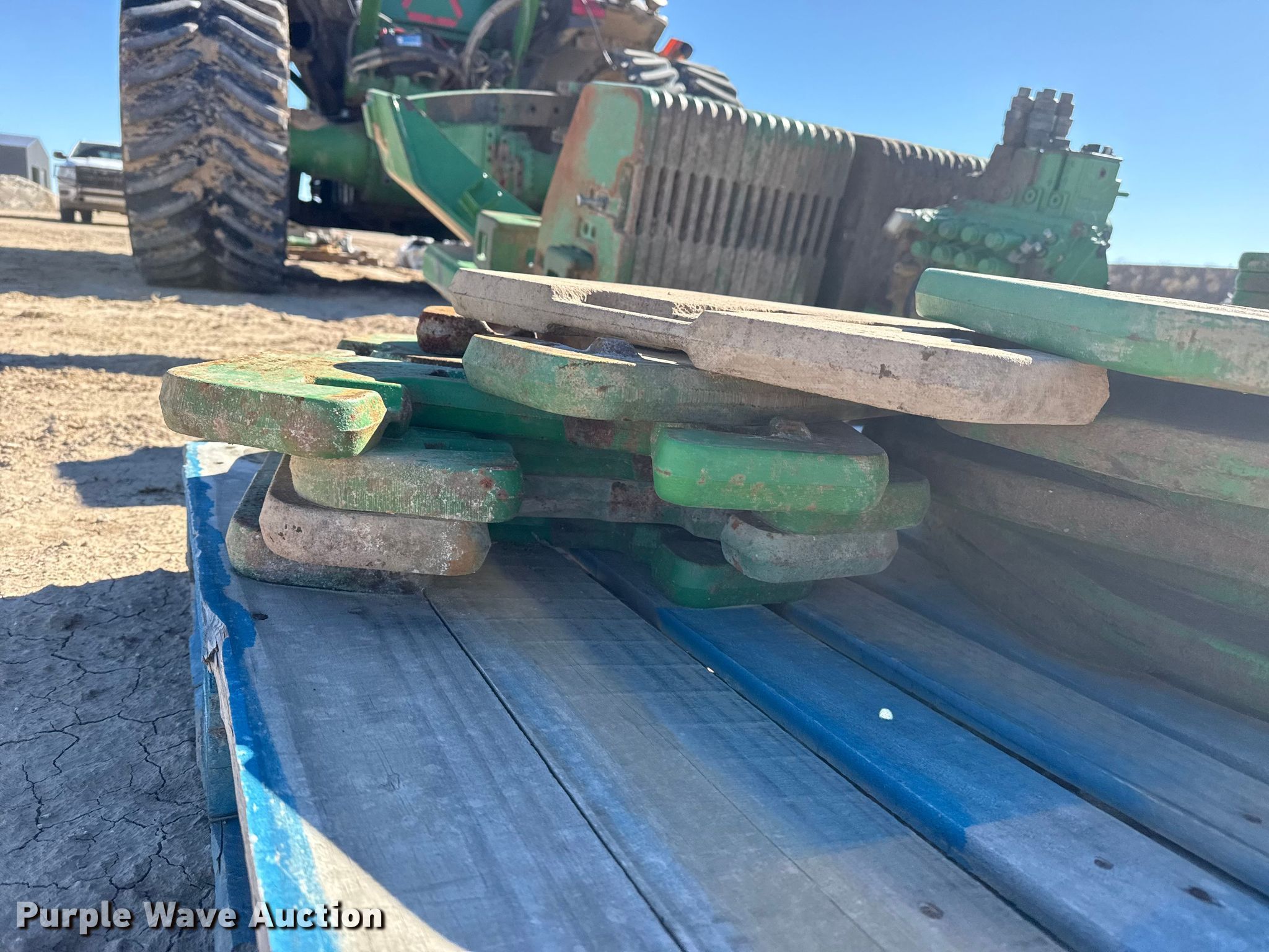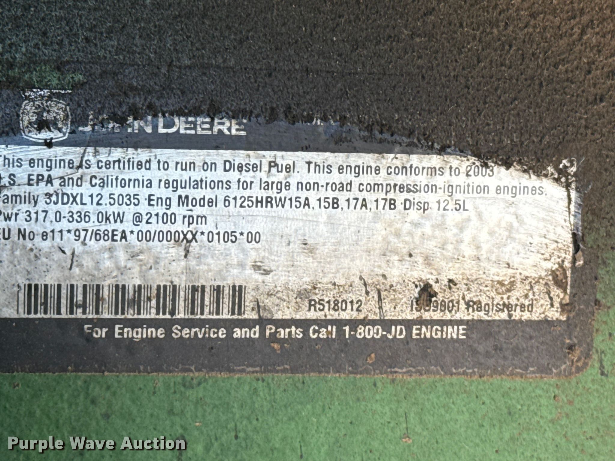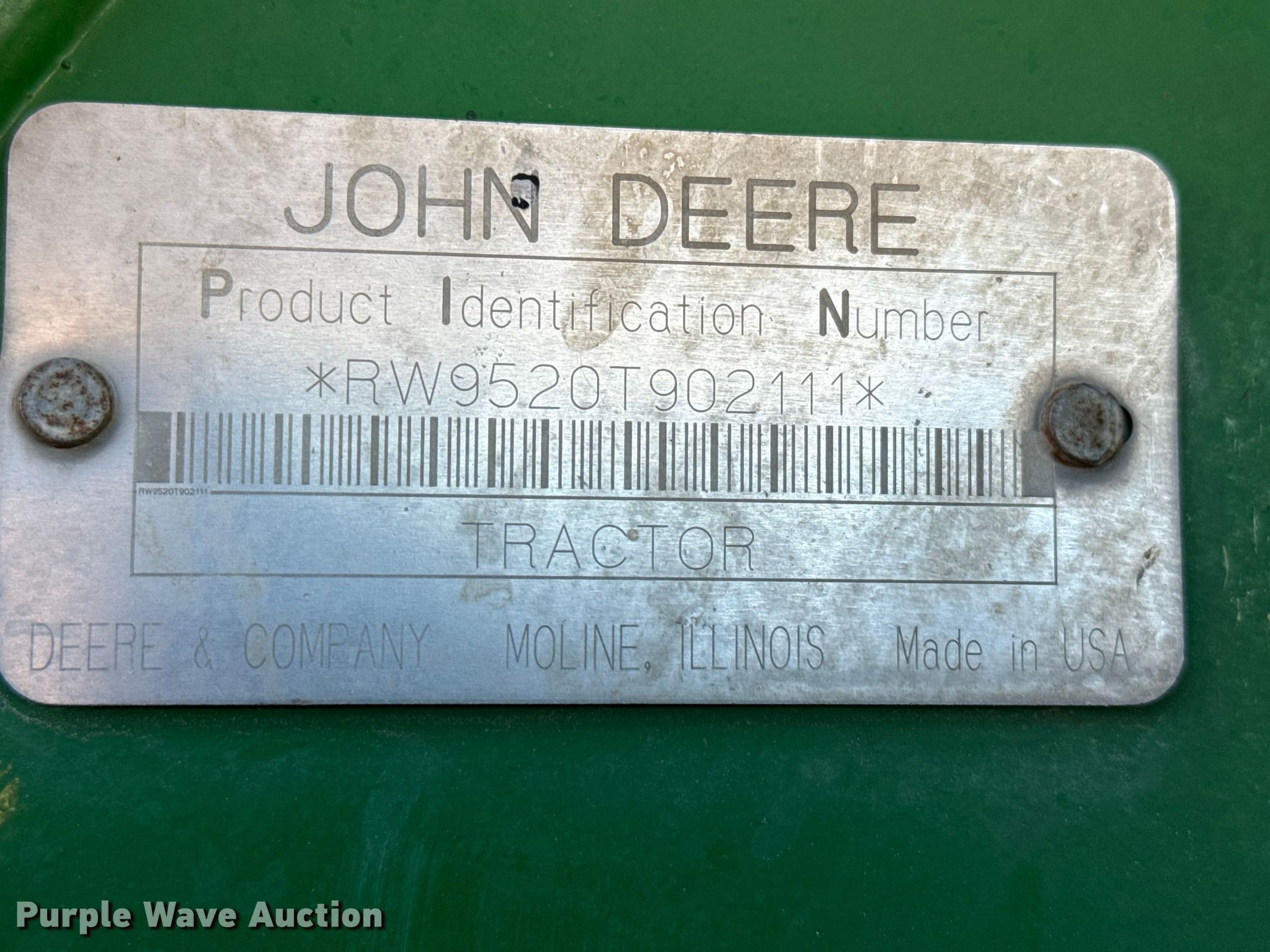 2003 John Deere 9520T tractor. Hours: 8,245 on meter, Serial: RW9520T902111. Engine John Deere, Displacement: 12.5L, Cylinders: 6, Fuel type: Diesel. Transmission Powershift, 18F - 6R. Operators station AC, Heat. Features Seven pin outlet, ISOBUS outlet, Hydraulic remote sets Rear: 4, Suitcase weights: 64. Tracks Width: 30". Notes Engine parts removed, Non-operational unit. Scott City, KS 67871