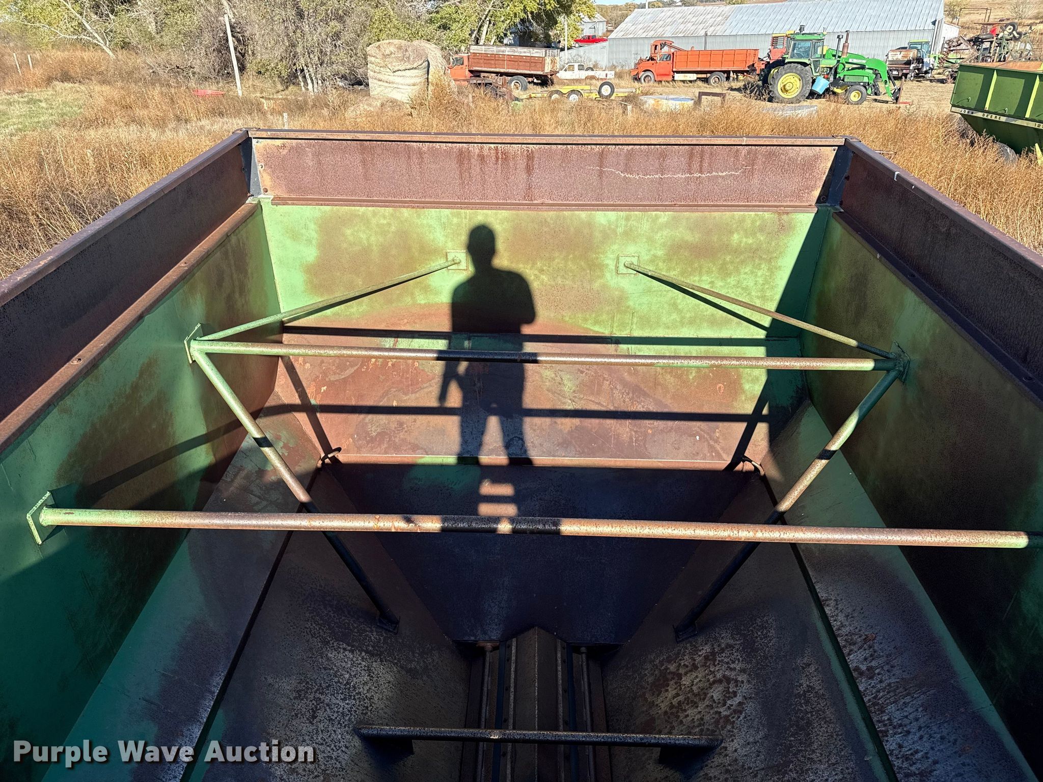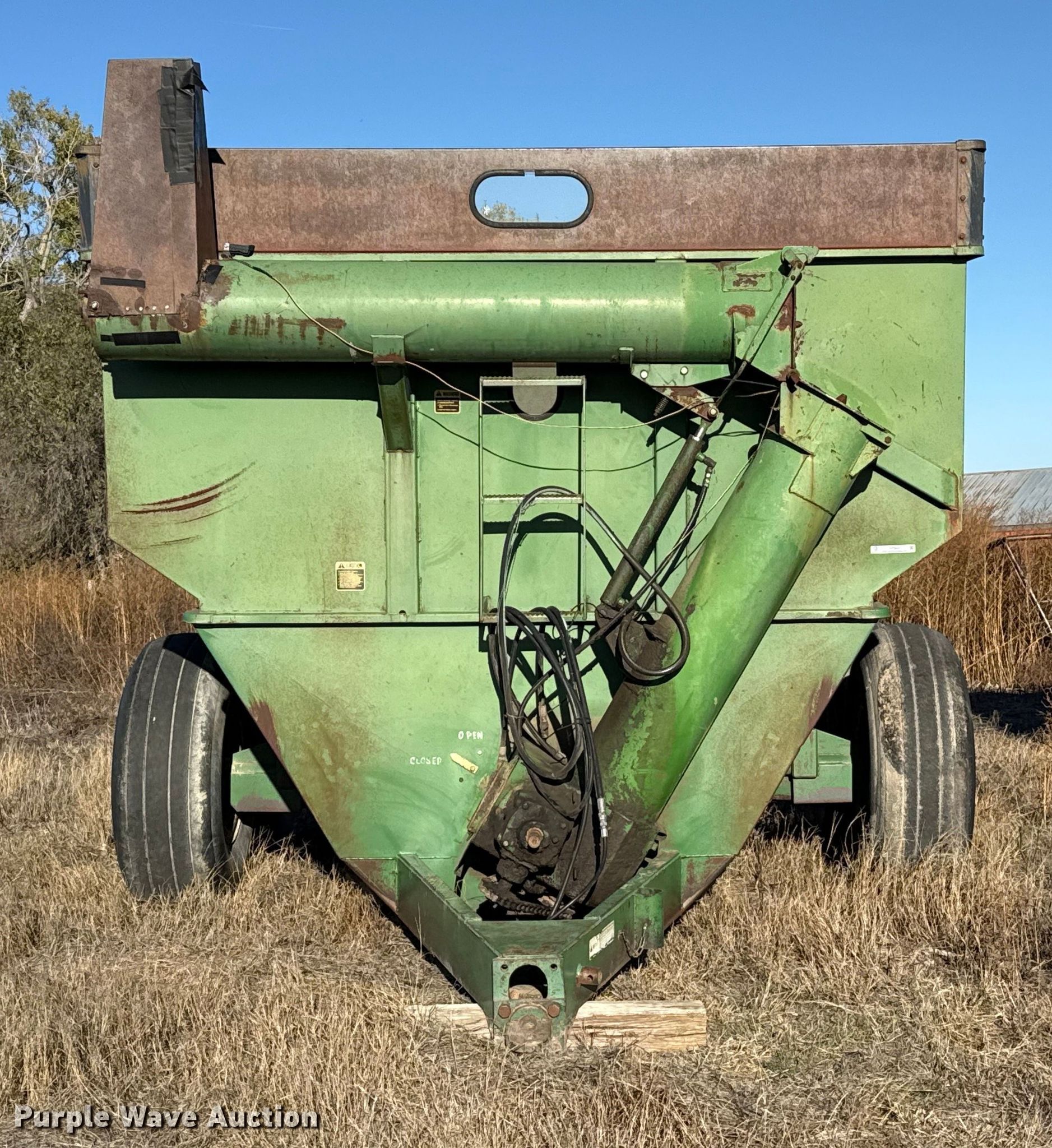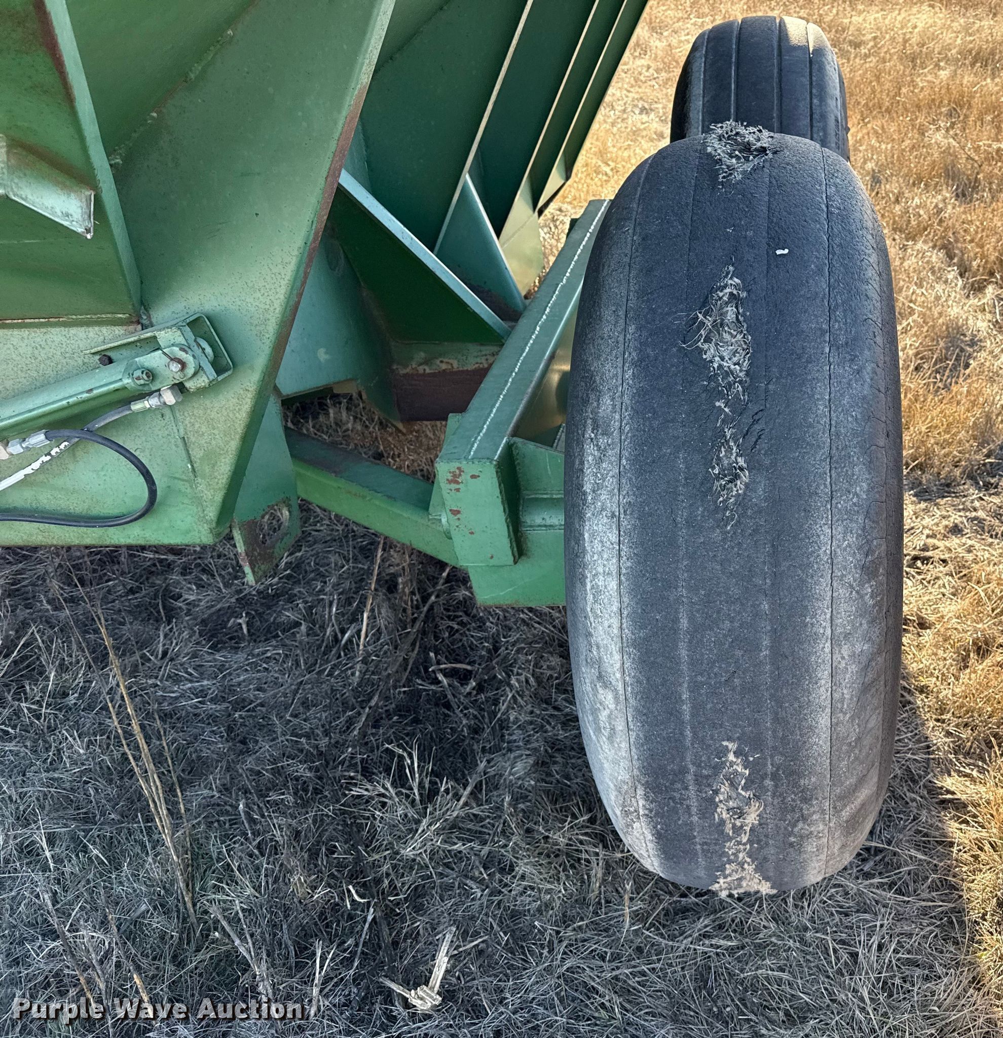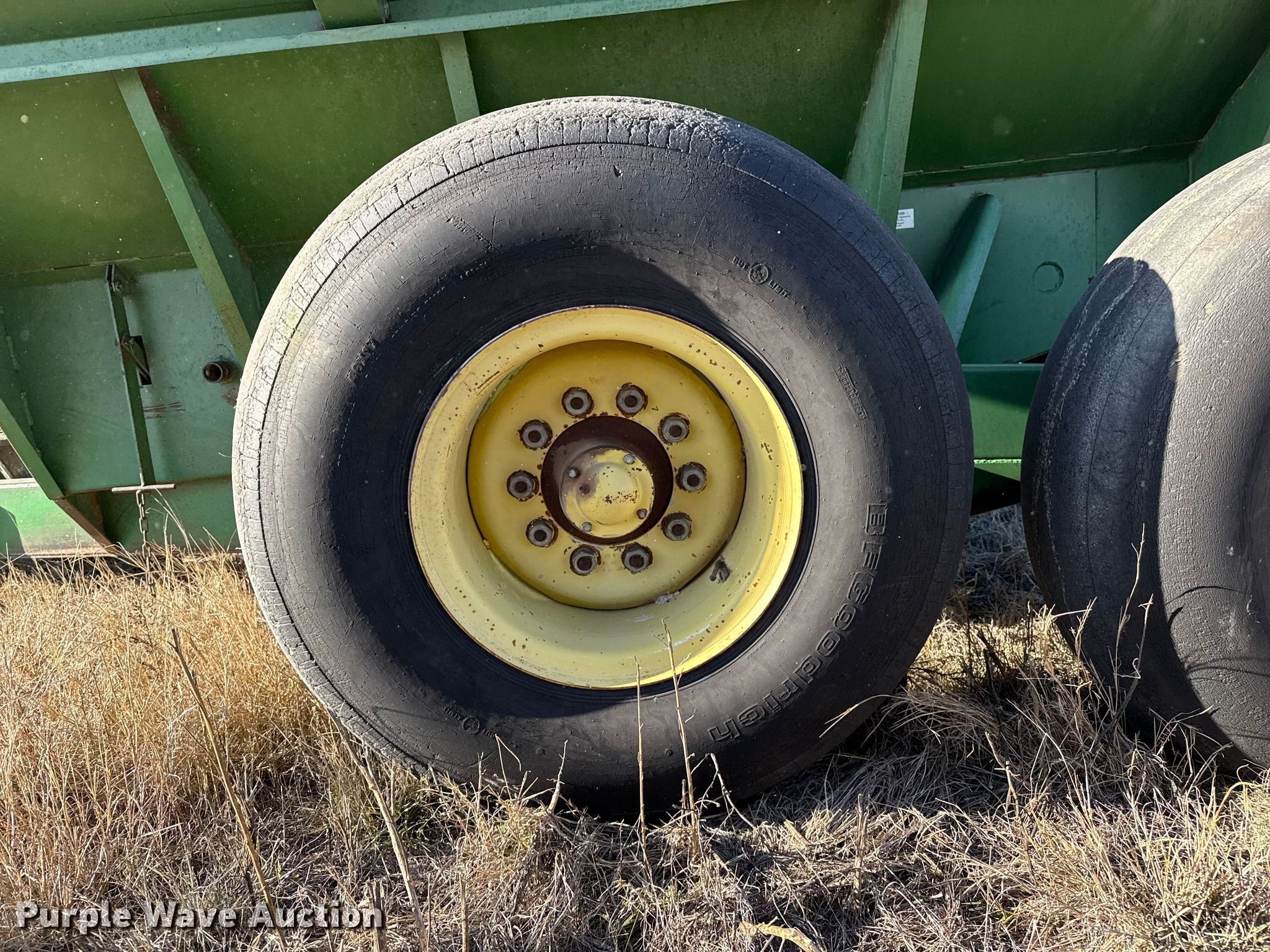 Purple Wave is selling a used Grain Cart or Gravity Wagon in Kansas. This item is a John Deere 650 grain cart with the following: Auger diameter: 12", Shut-off gate: Hydraulic