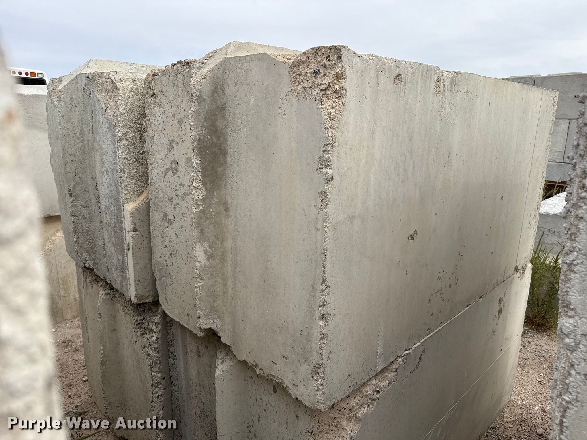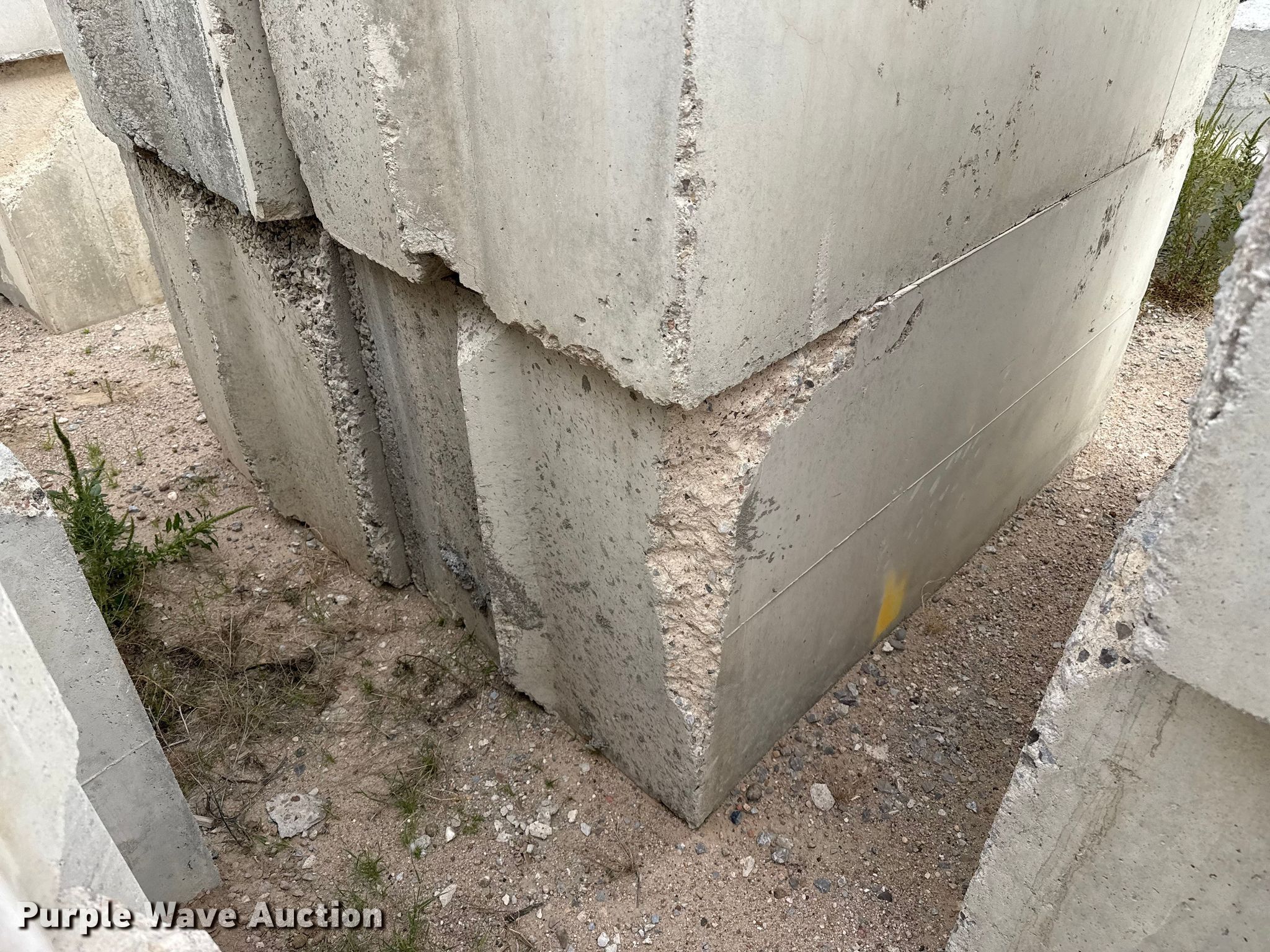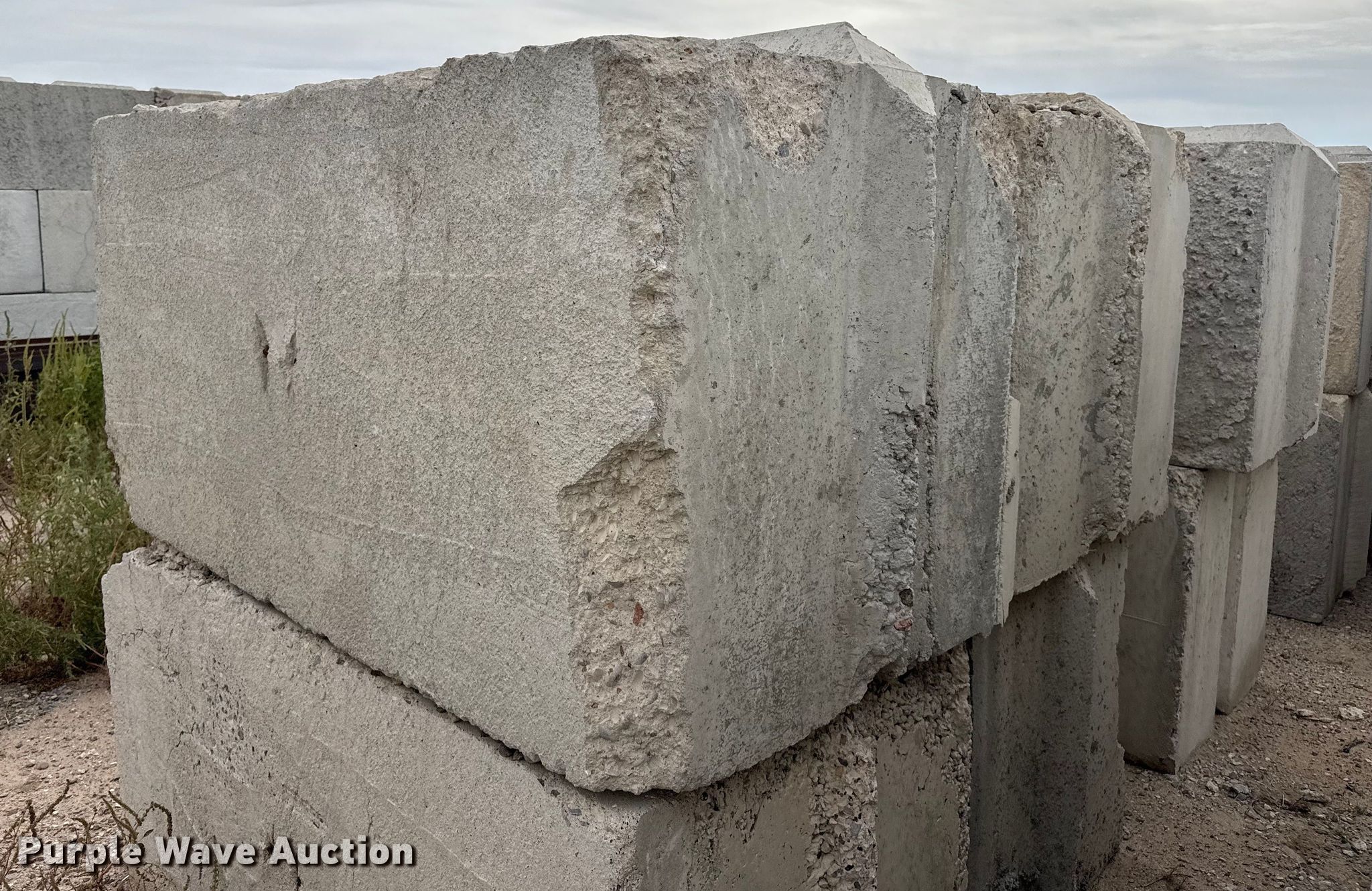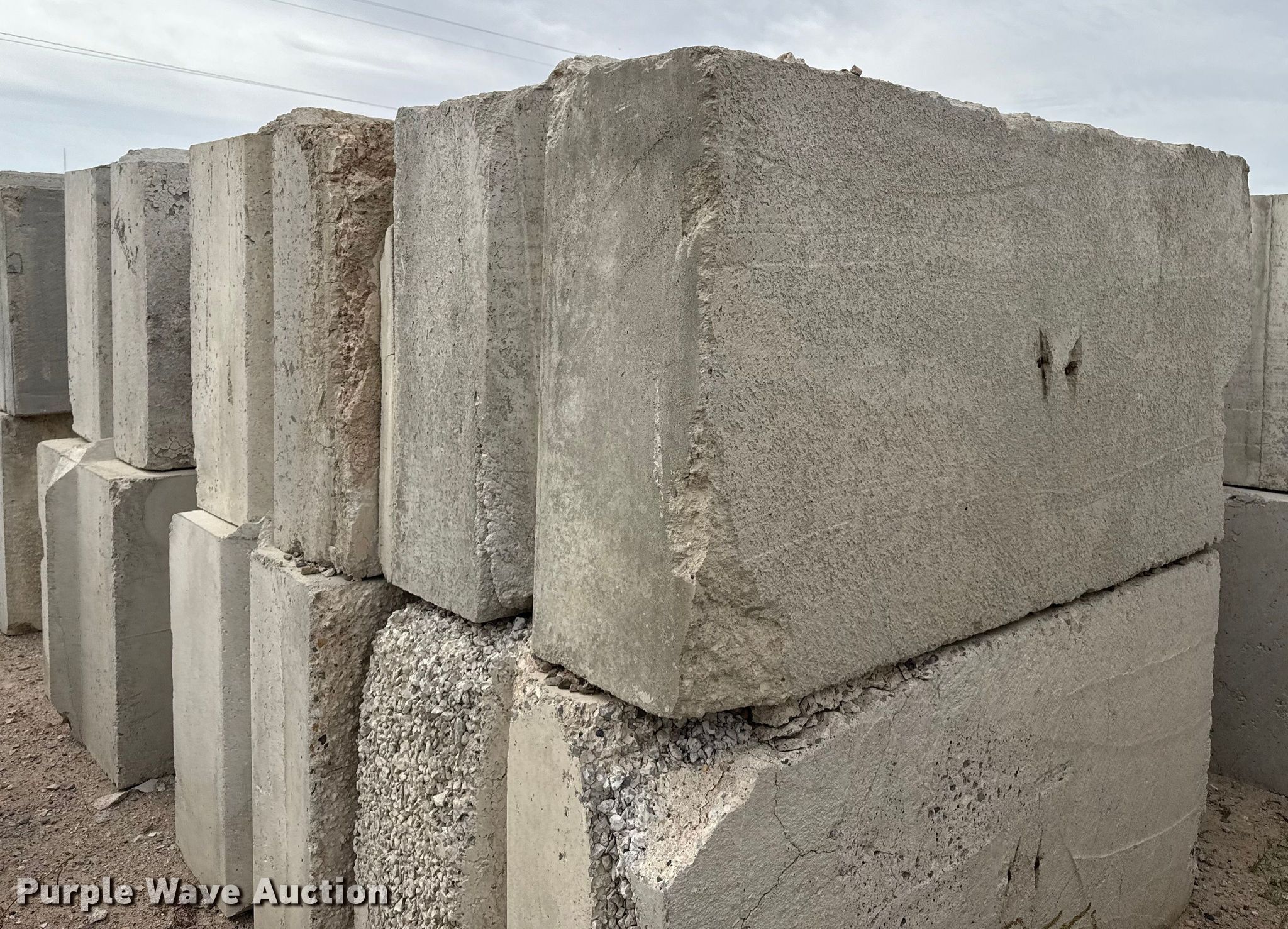 Purple Wave is selling a used Building Materials in Kansas. This item is a (6) concrete blocks with the following: Overall, Length: 6', Width: 3', Height: 3'