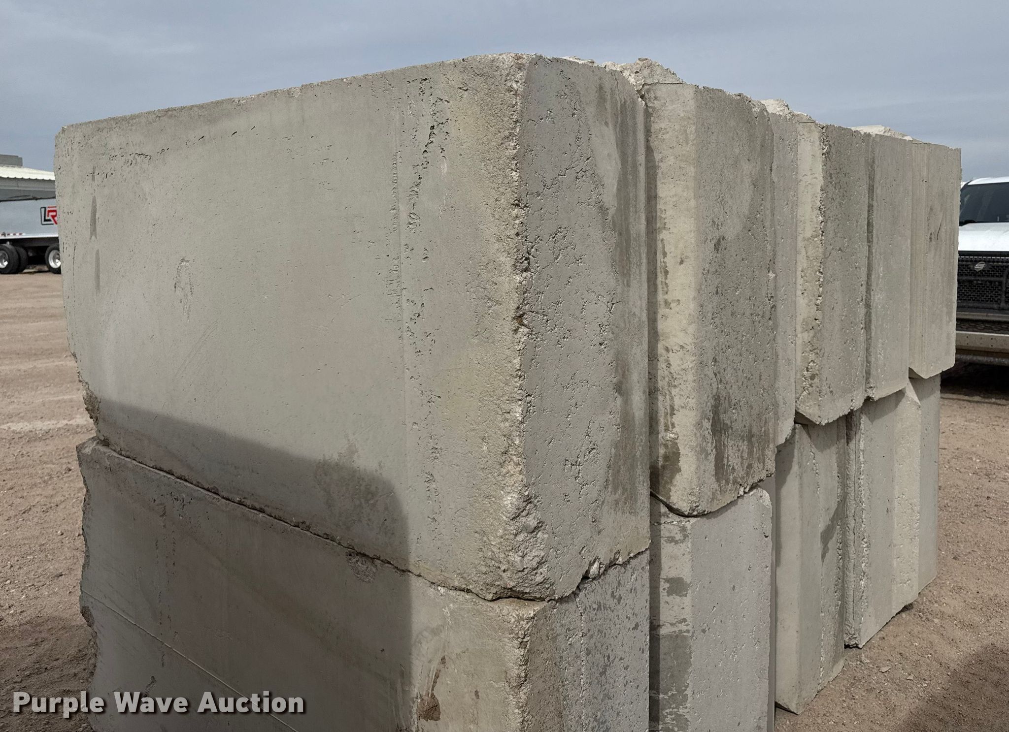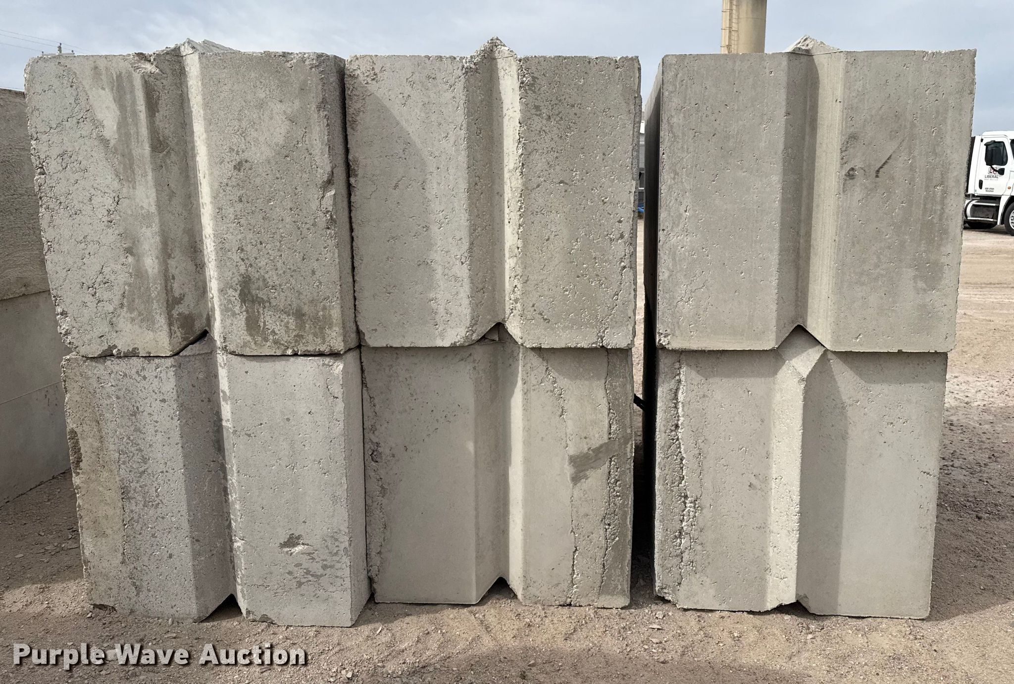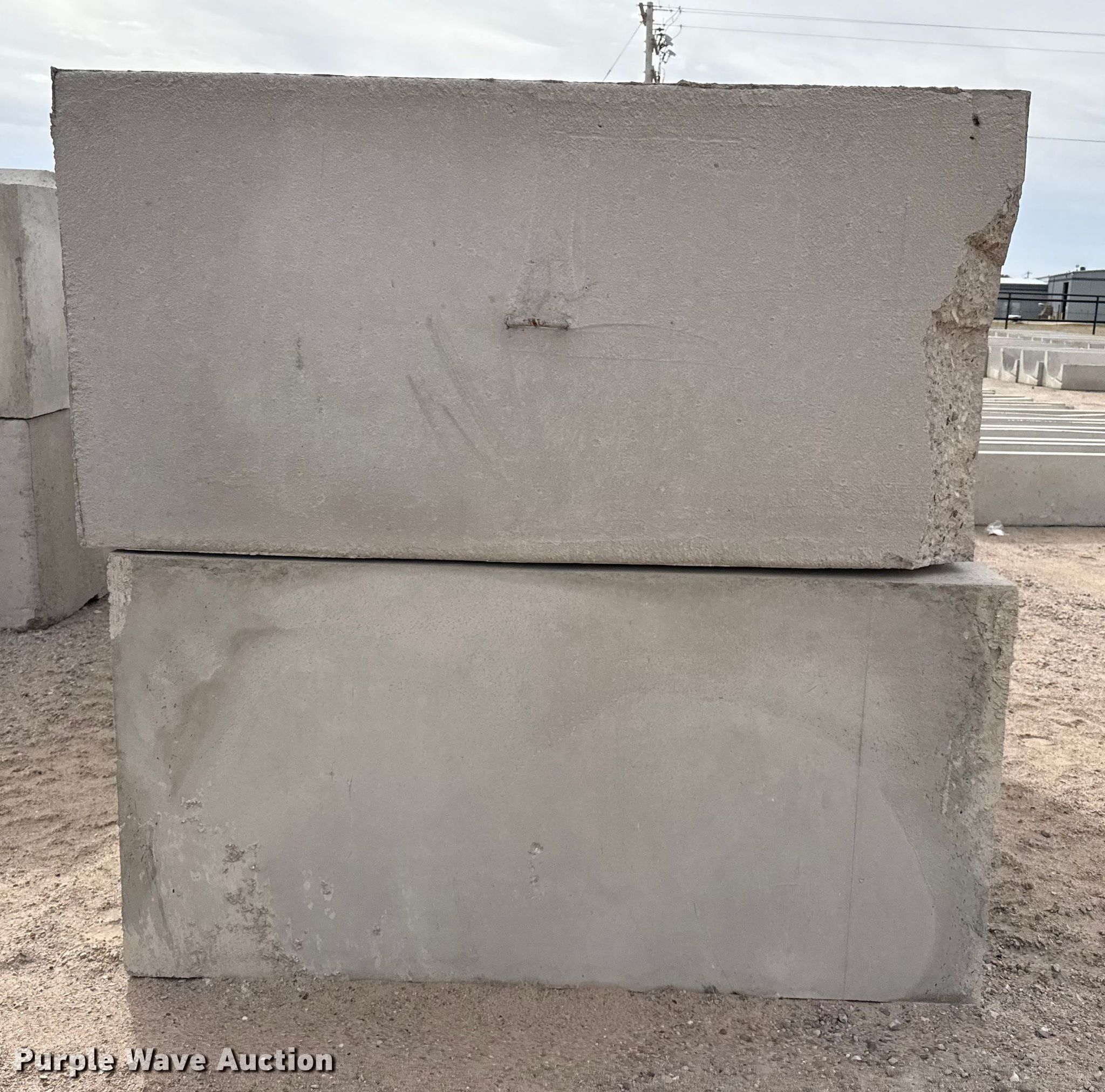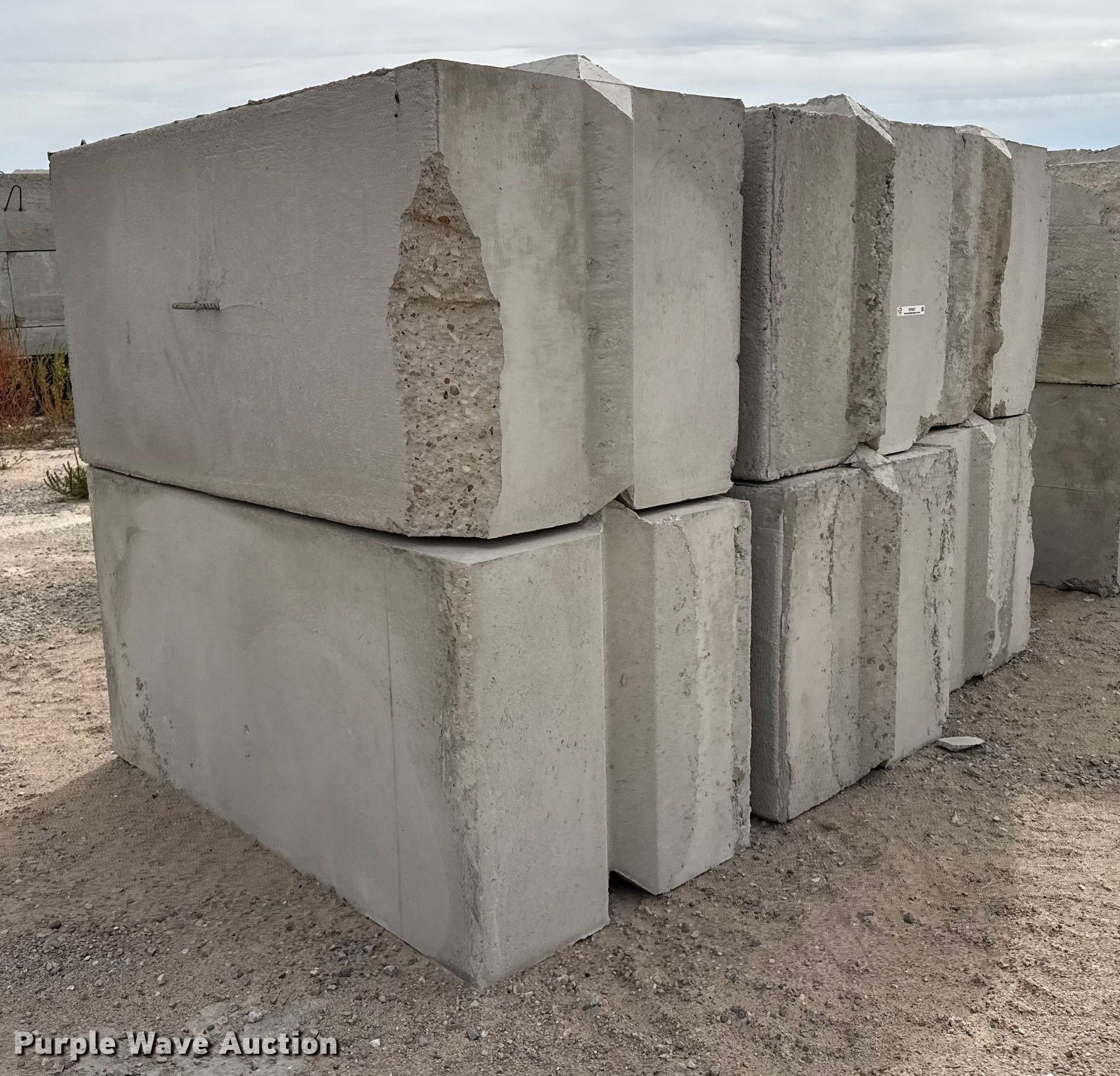 Purple Wave is selling a used Building Materials in Kansas. This item is a (6) concrete blocks with the following: Overall, Length: 6', Width: 3', Height: 3'