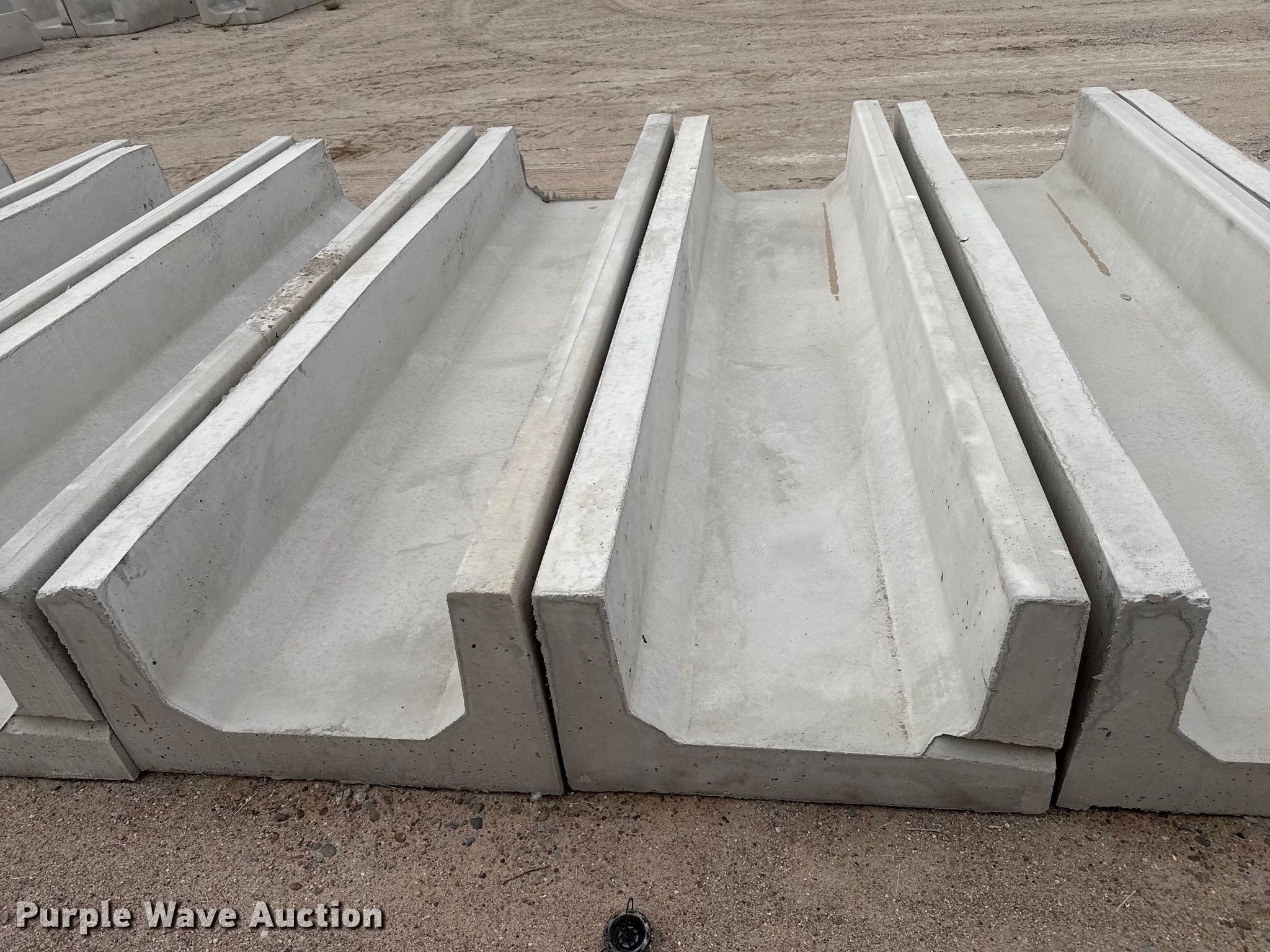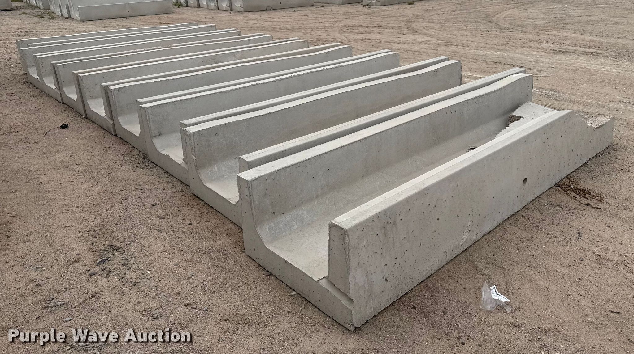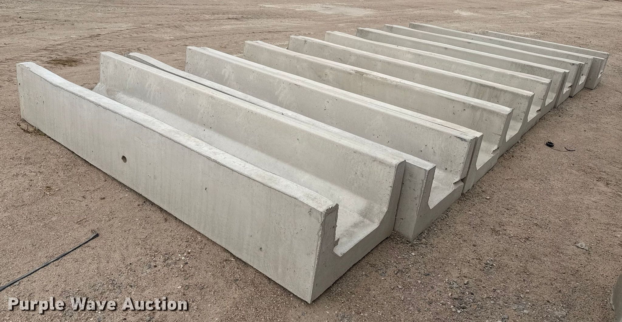 Purple Wave is selling a used Livestock Equip. in Kansas. This item is a (9) concrete feed bunks with the following: Overall, Length: 10'