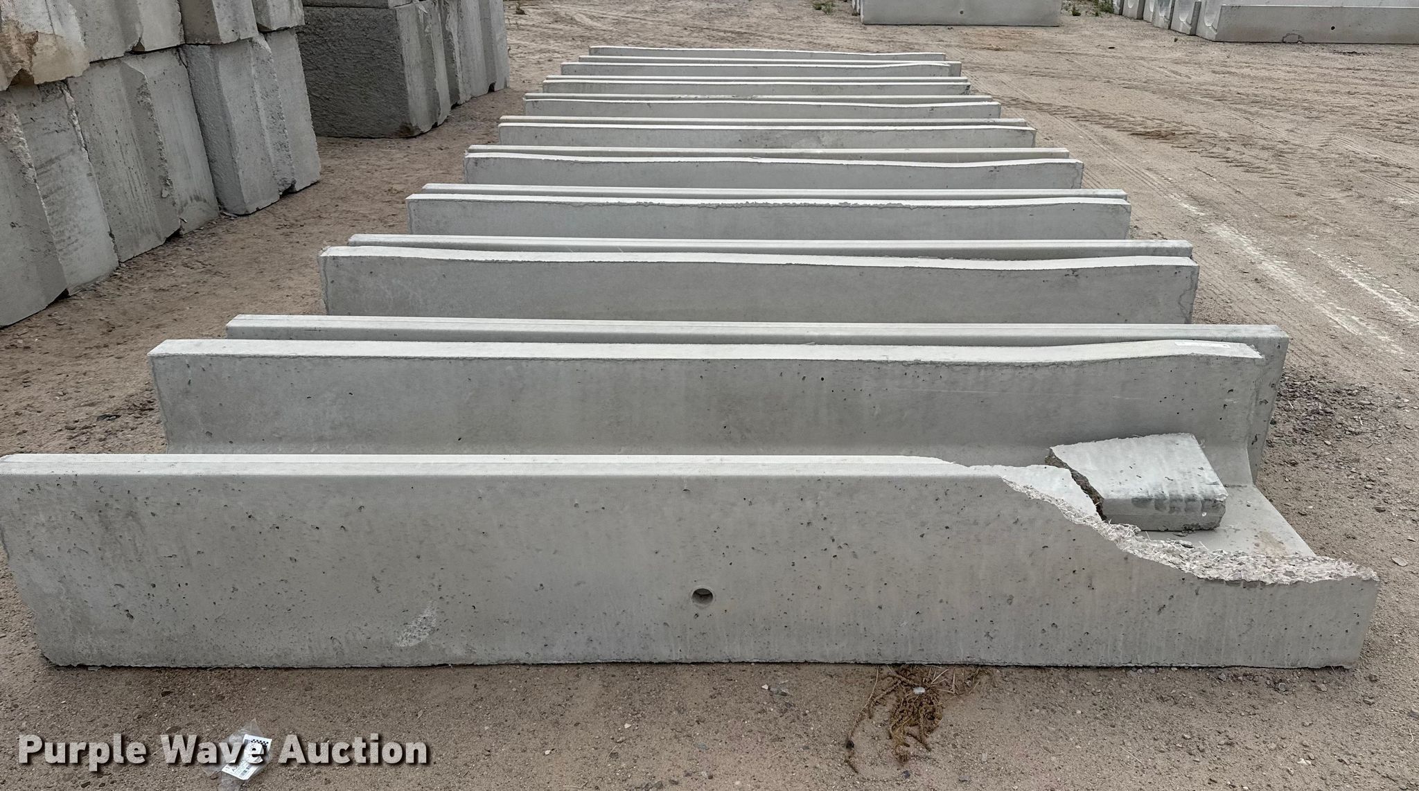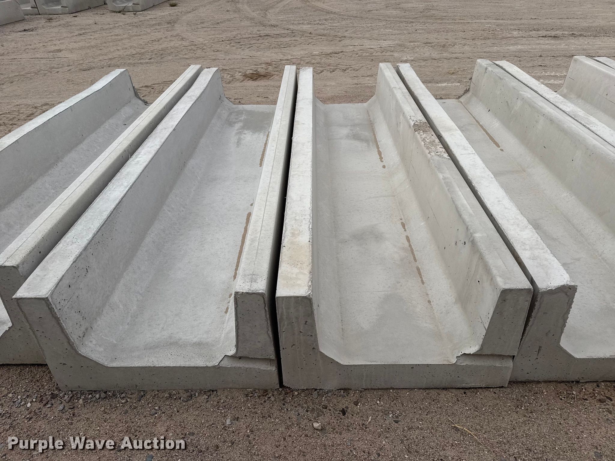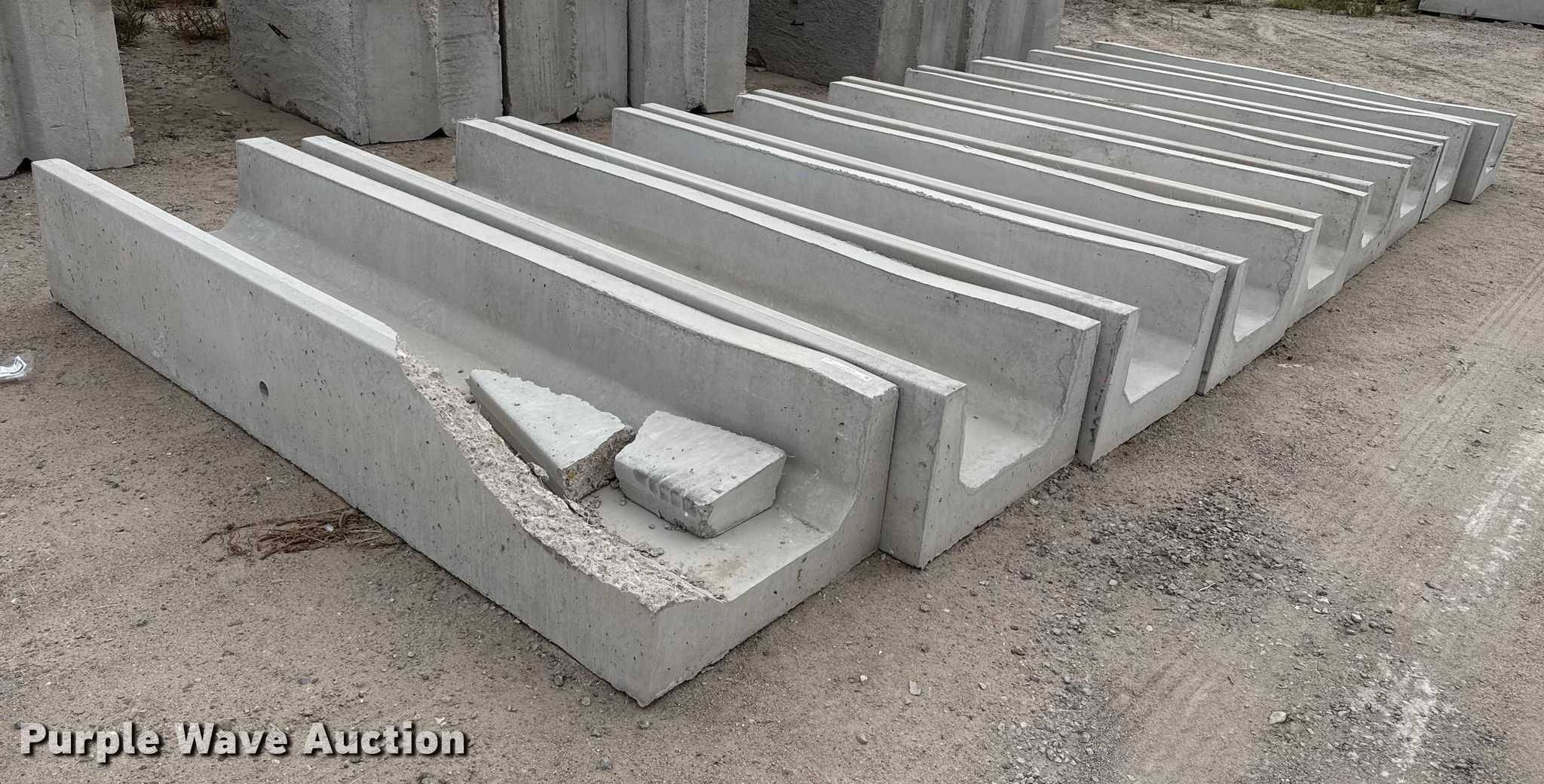 Purple Wave is selling a used Livestock Equip. in Kansas. This item is a (9) concrete feed bunks with the following: Overall, Length: 10'