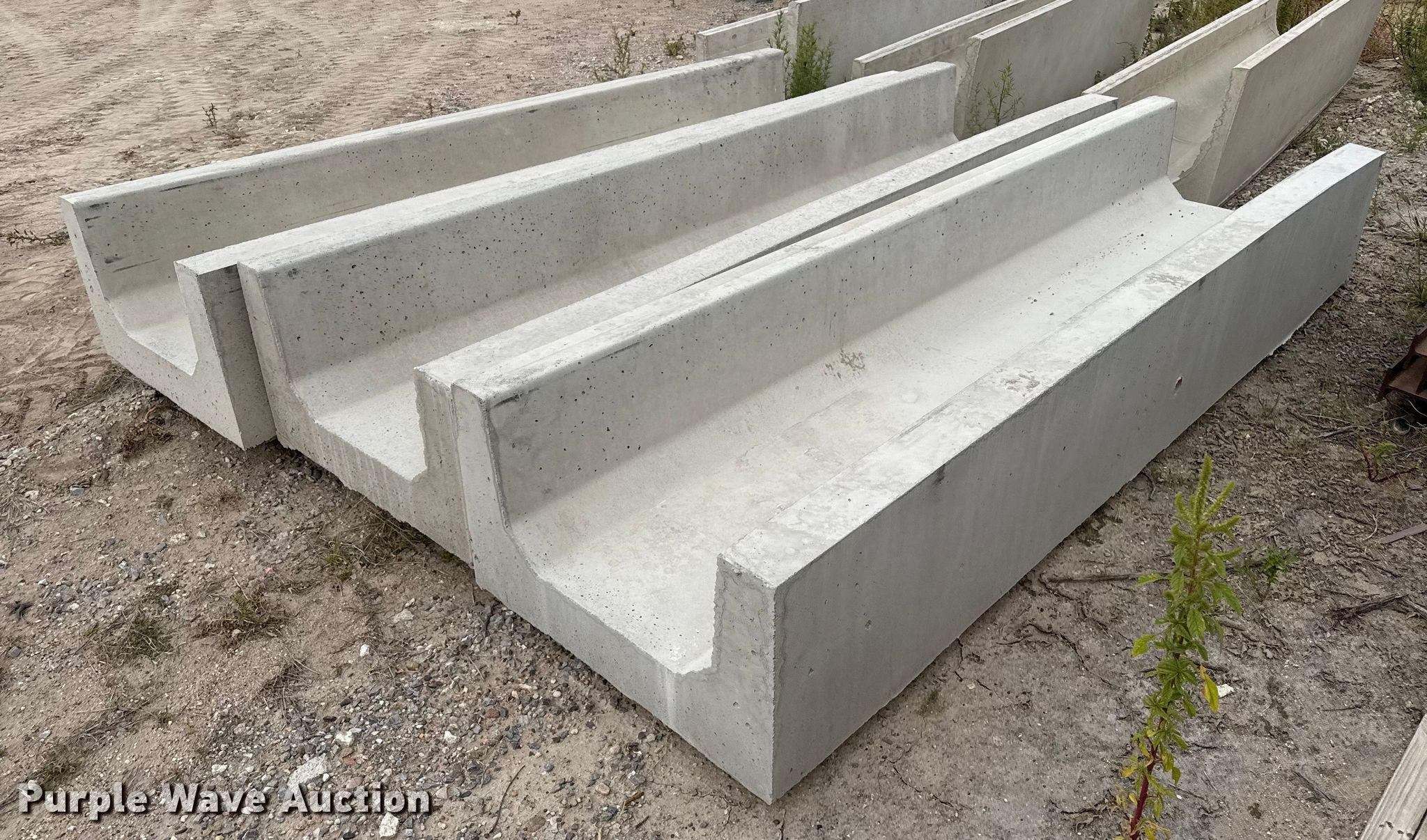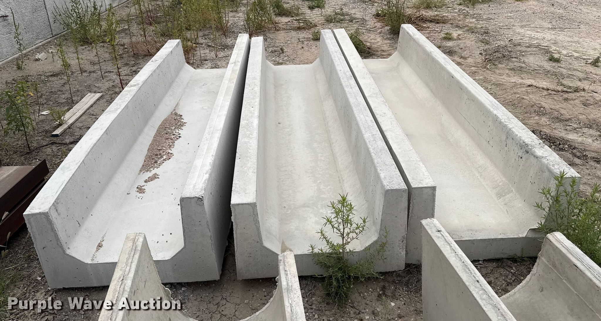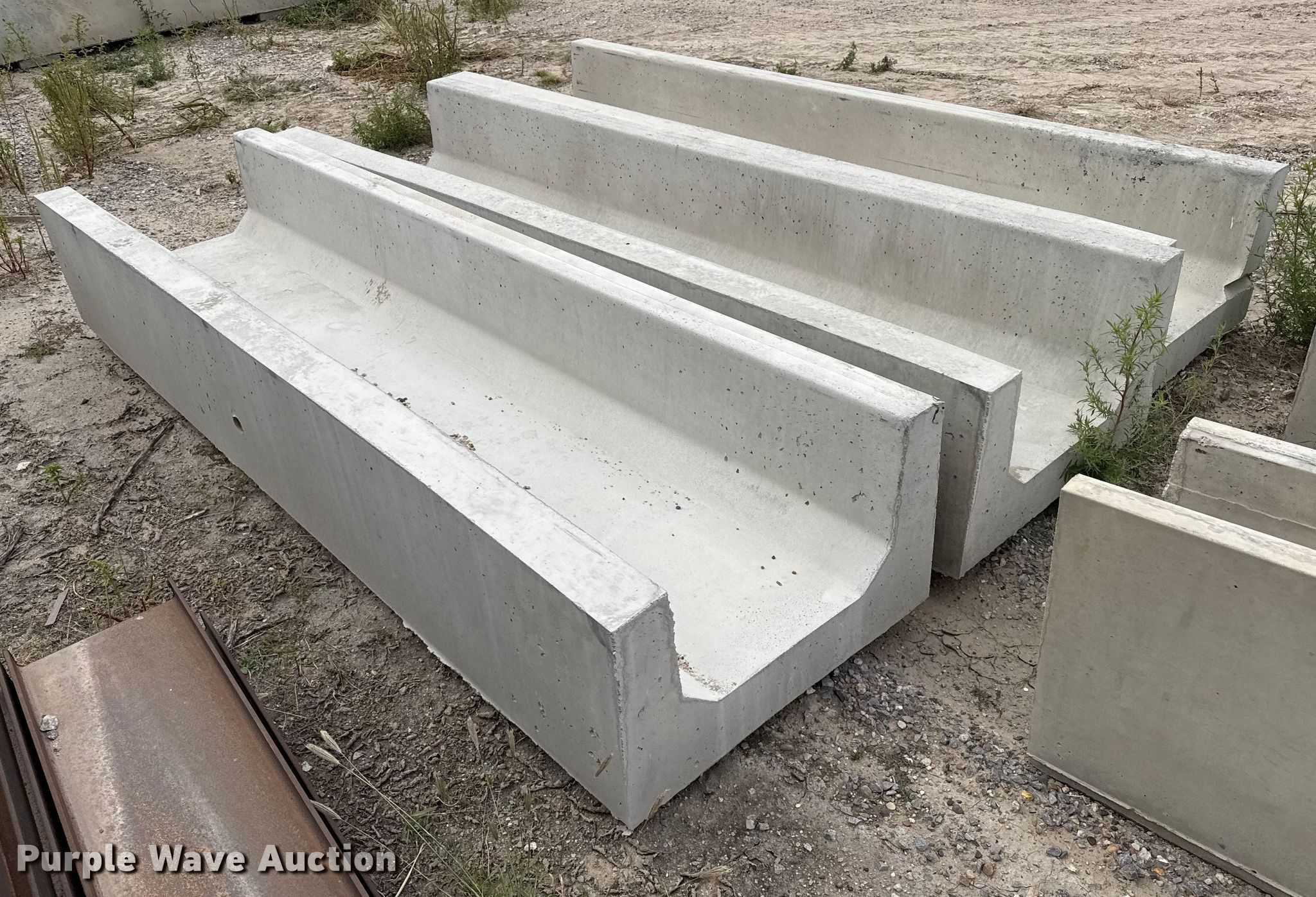 Purple Wave is selling a used Livestock Equip. in Kansas. This item is a (3) concrete feed bunks with the following: Overall, Length: 10'