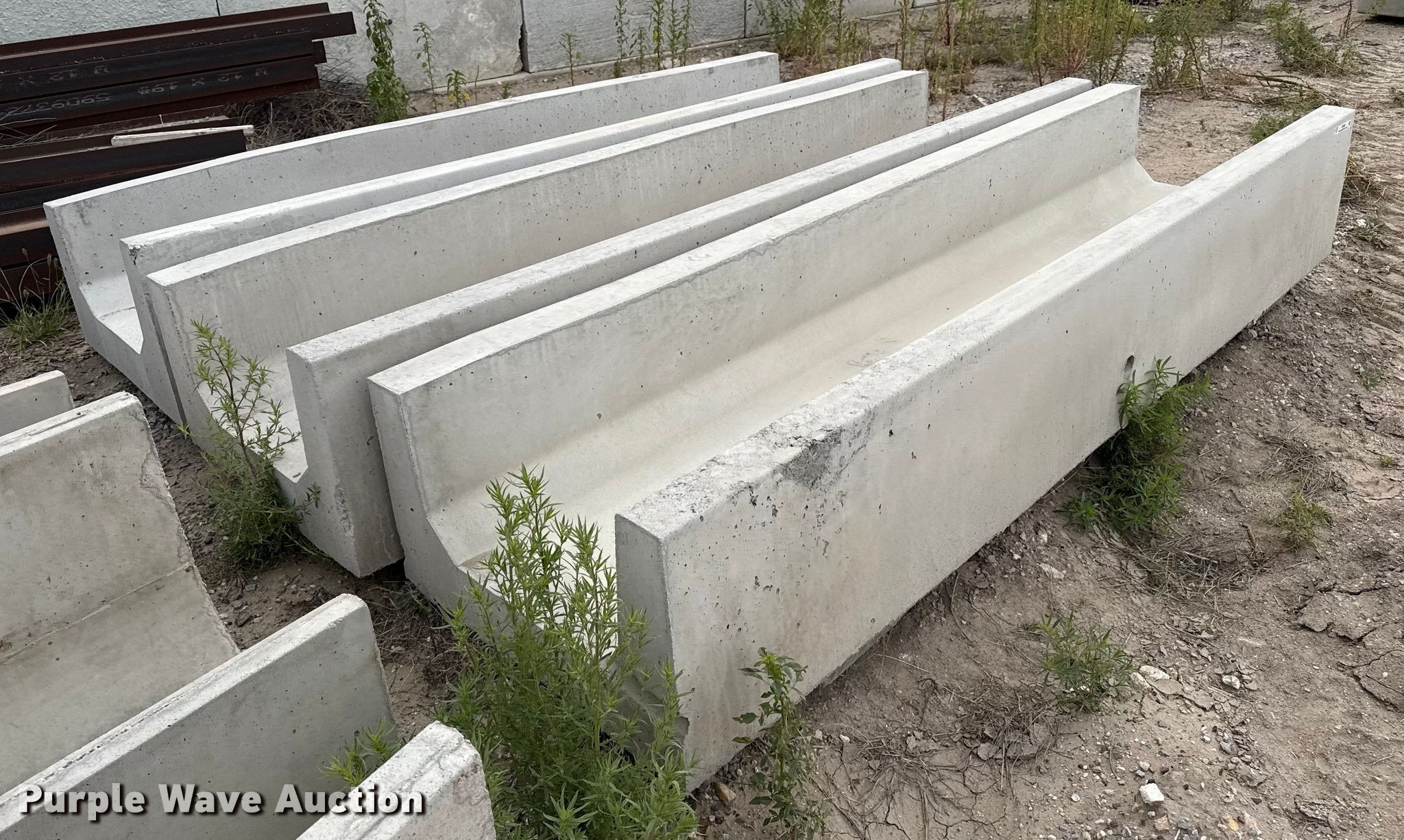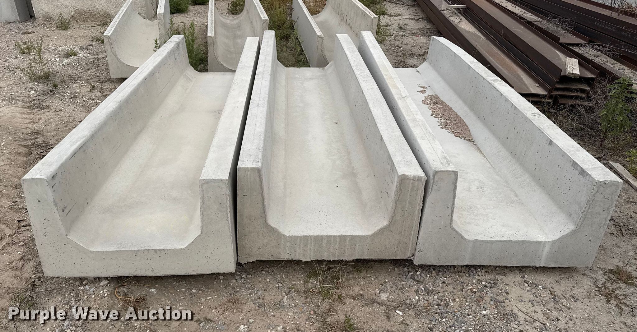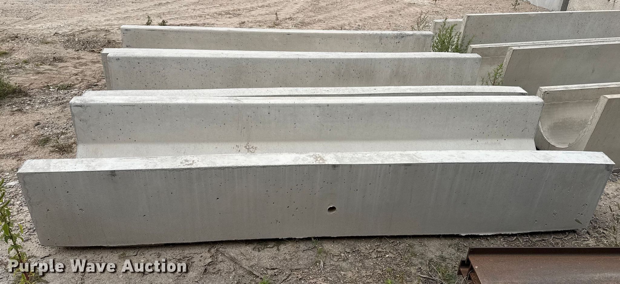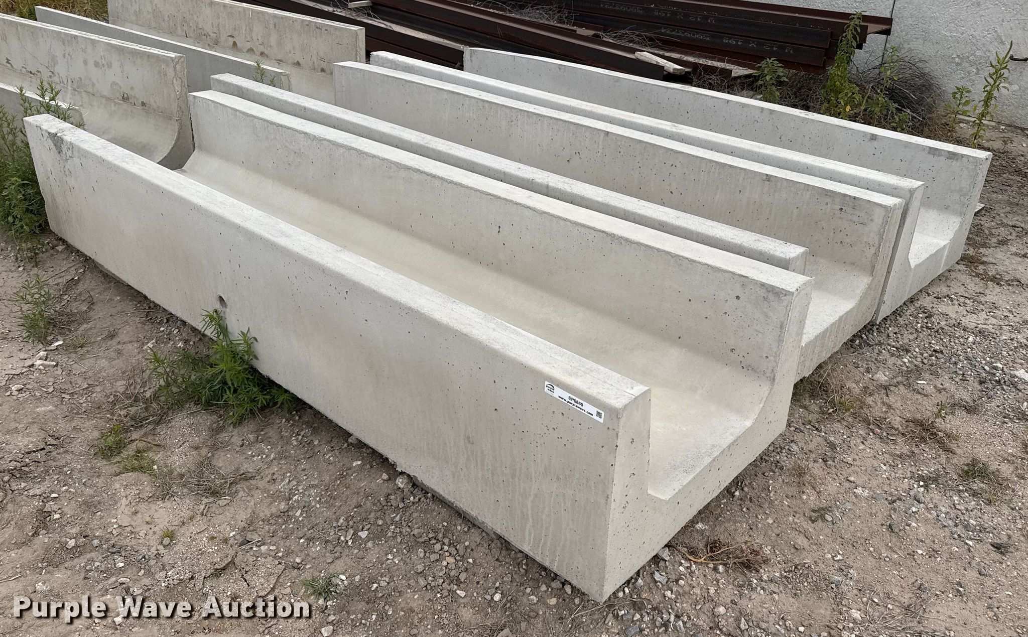 Purple Wave is selling a used Livestock Equip. in Kansas. This item is a (3) concrete feed bunks with the following: Overall, Length: 10'