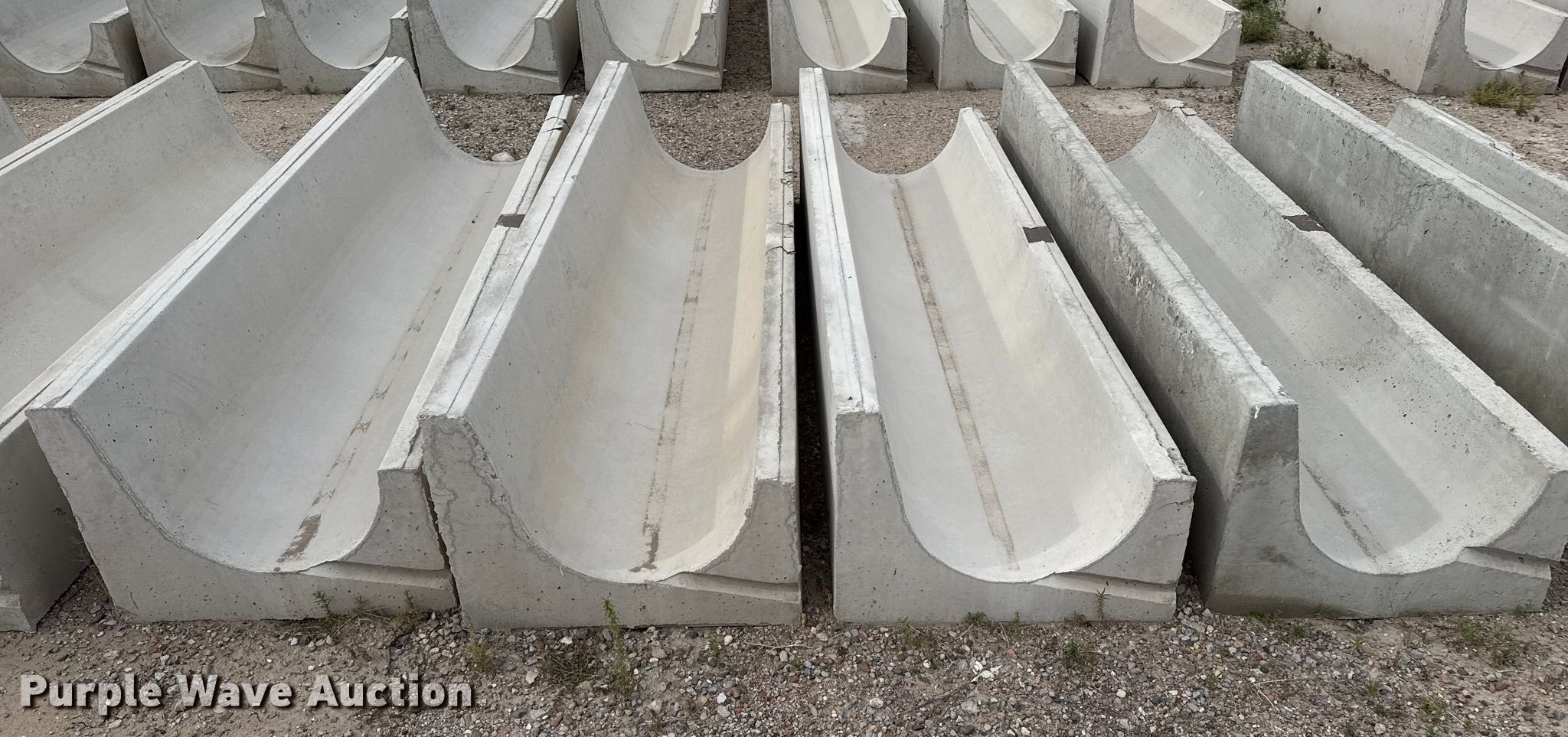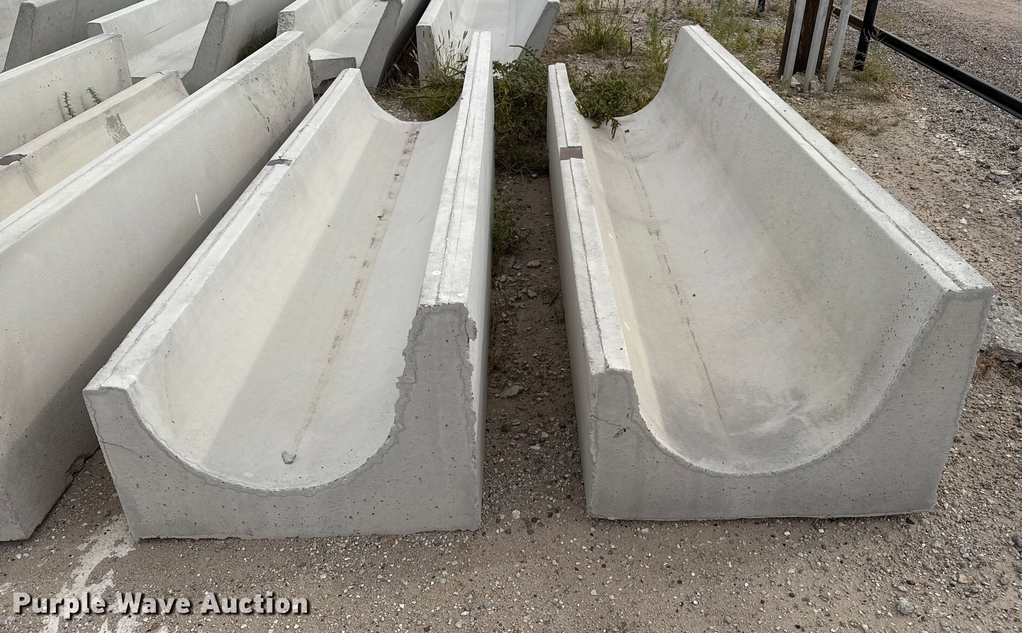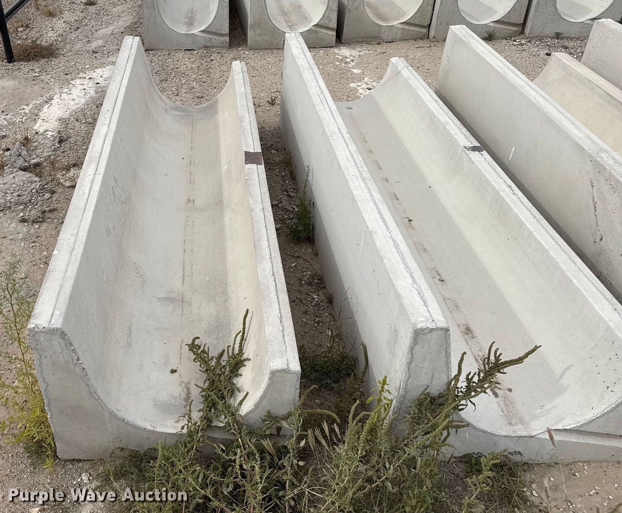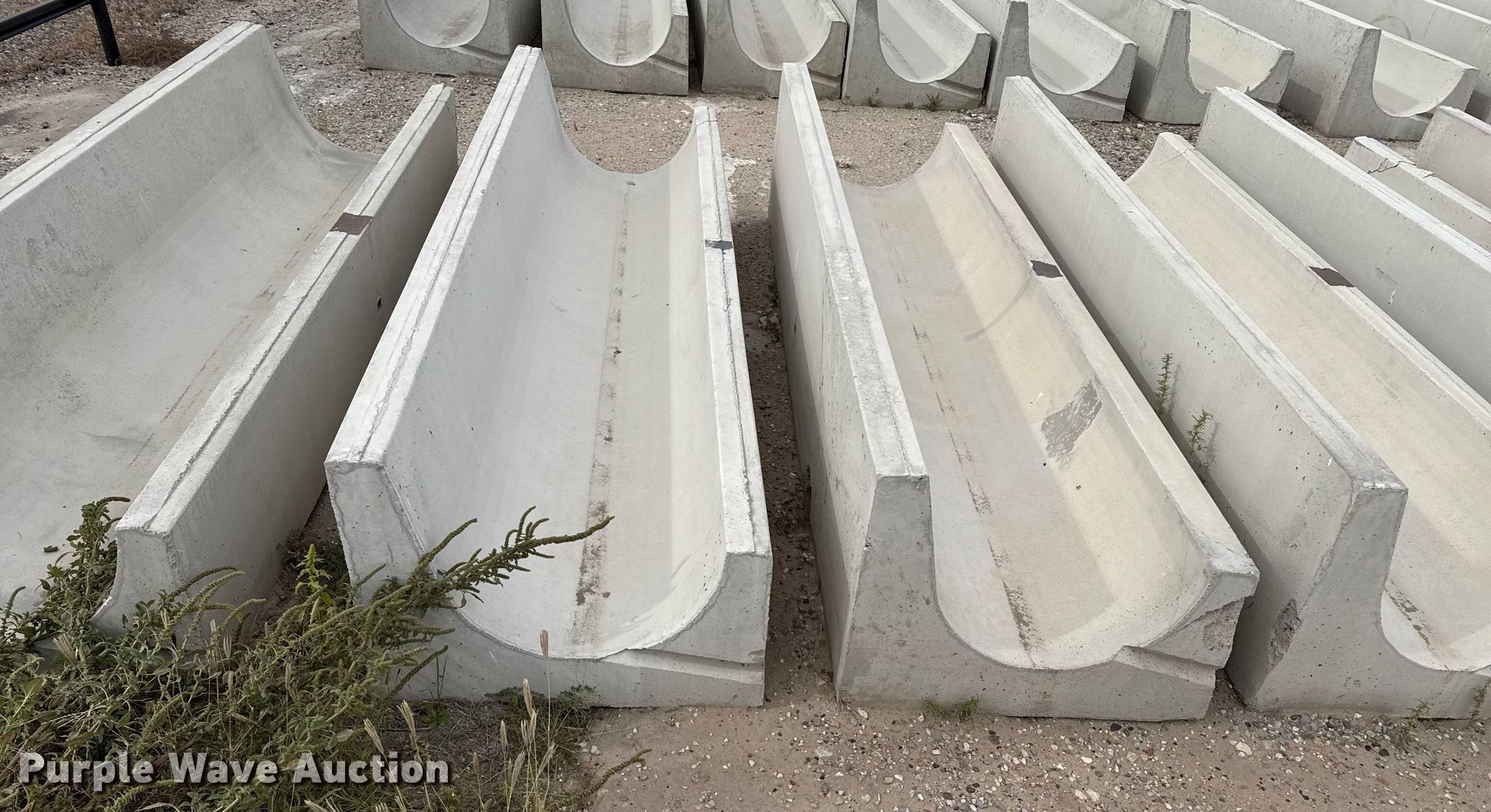 Purple Wave is selling a used Livestock Equip. in Kansas. This item is a (9) concrete feed bunks with the following: Overall, Length: 10'