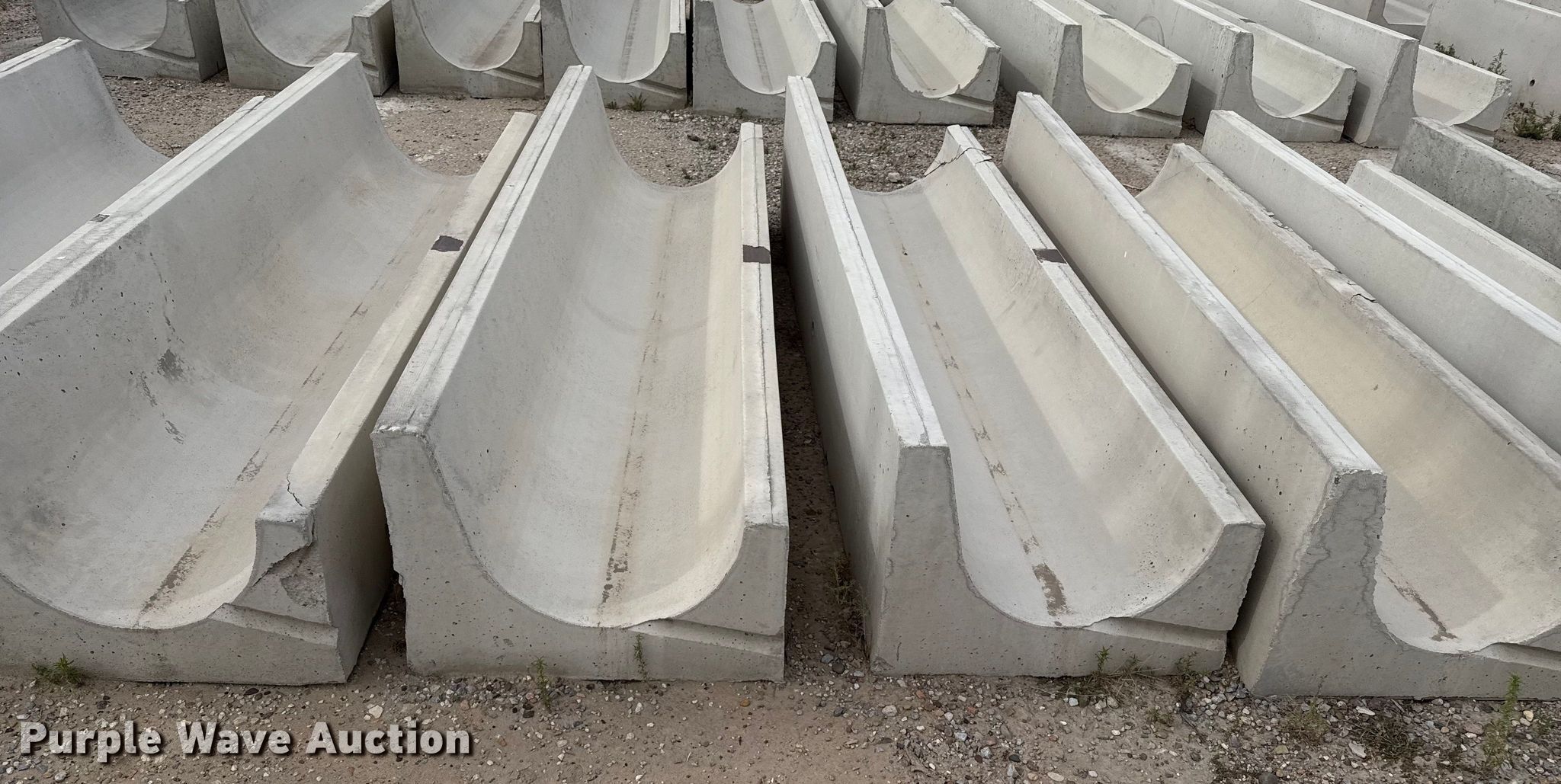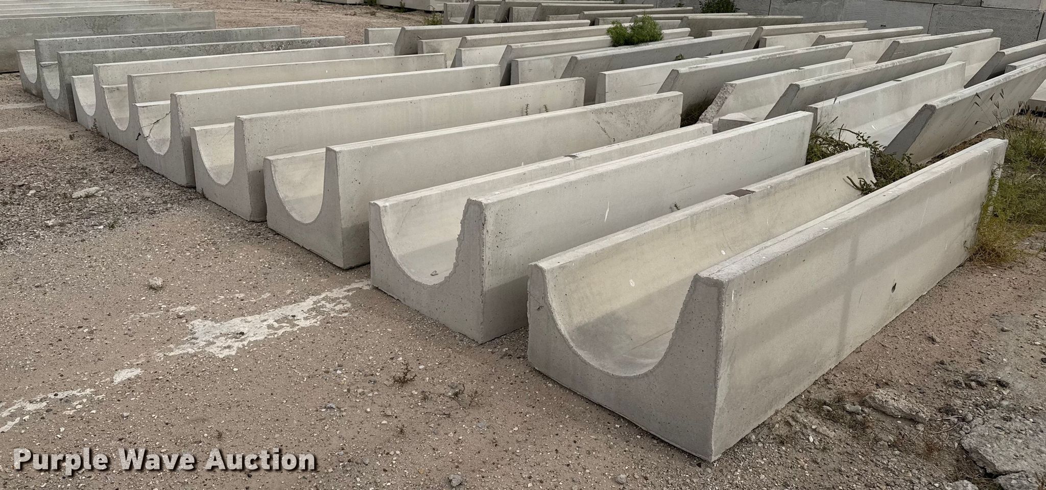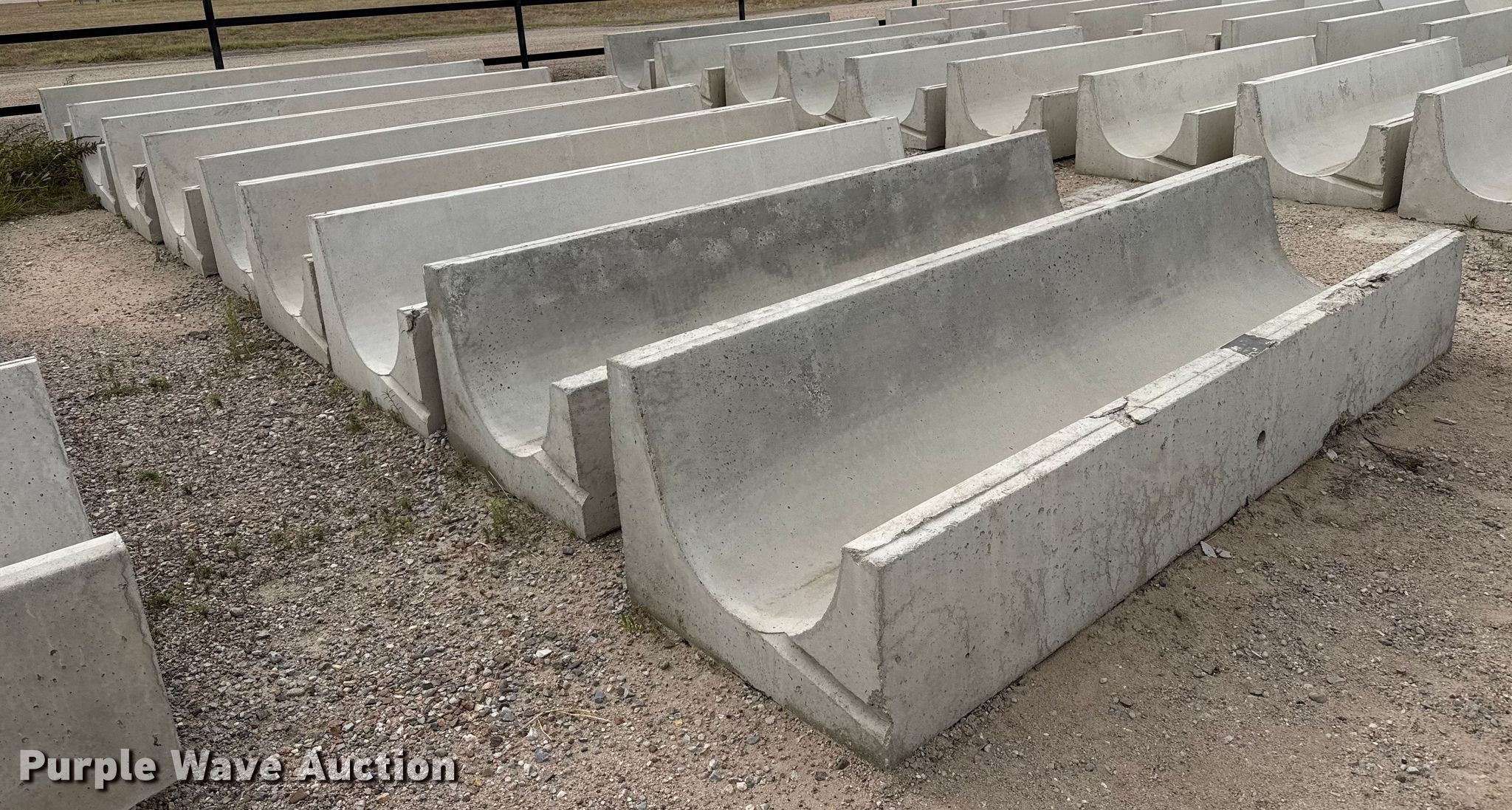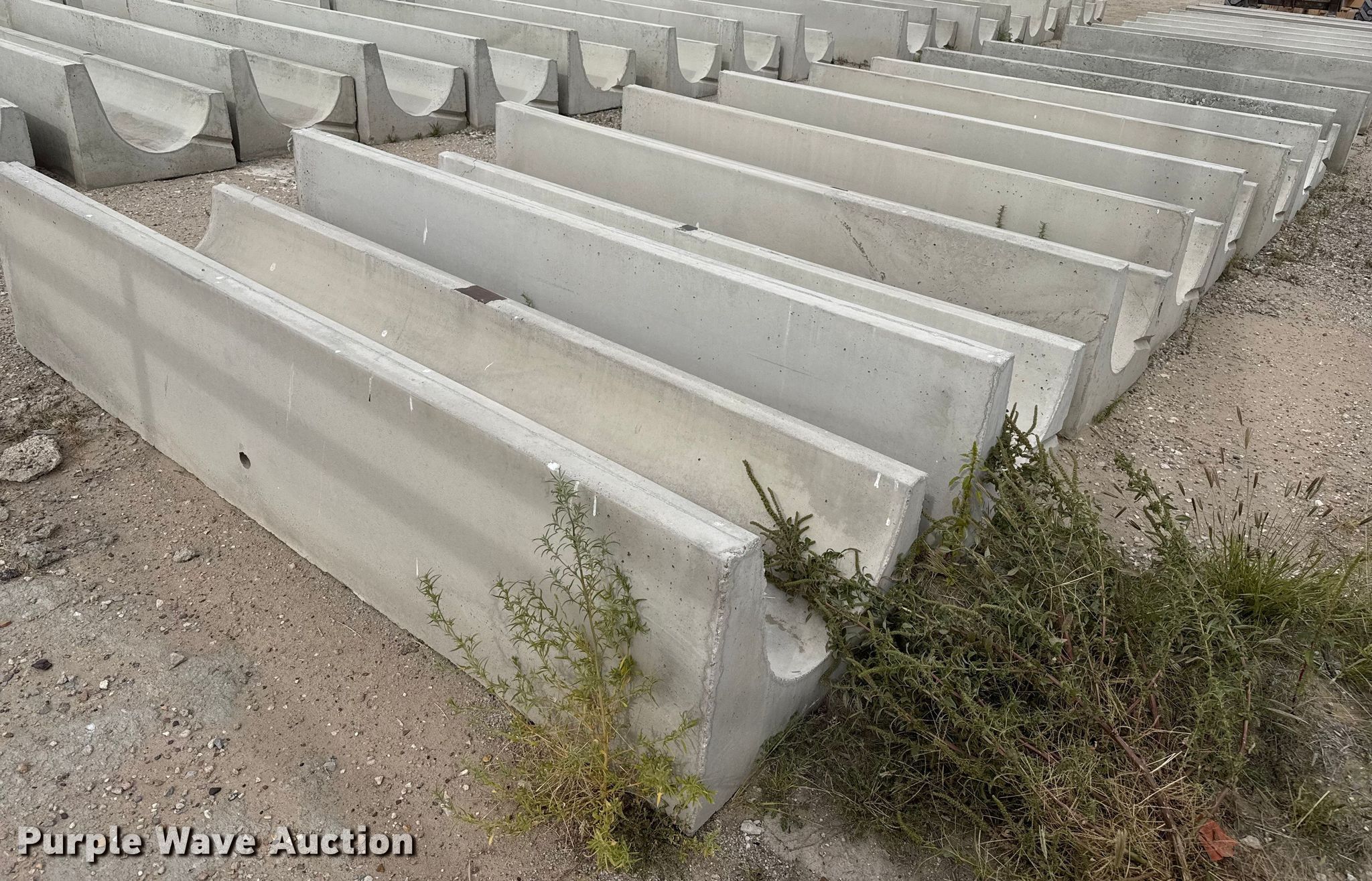 Purple Wave is selling a used Livestock Equip. in Kansas. This item is a (9) concrete feed bunks with the following: Overall, Length: 10'