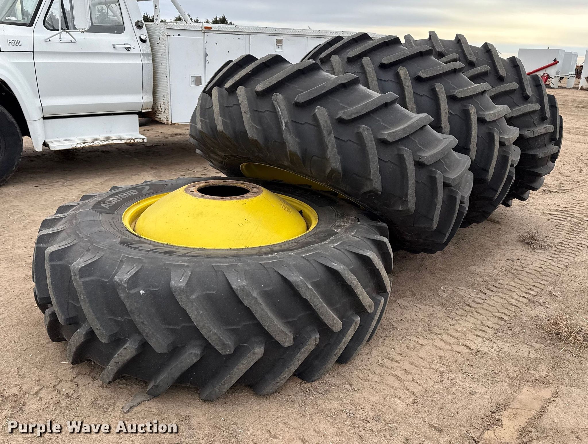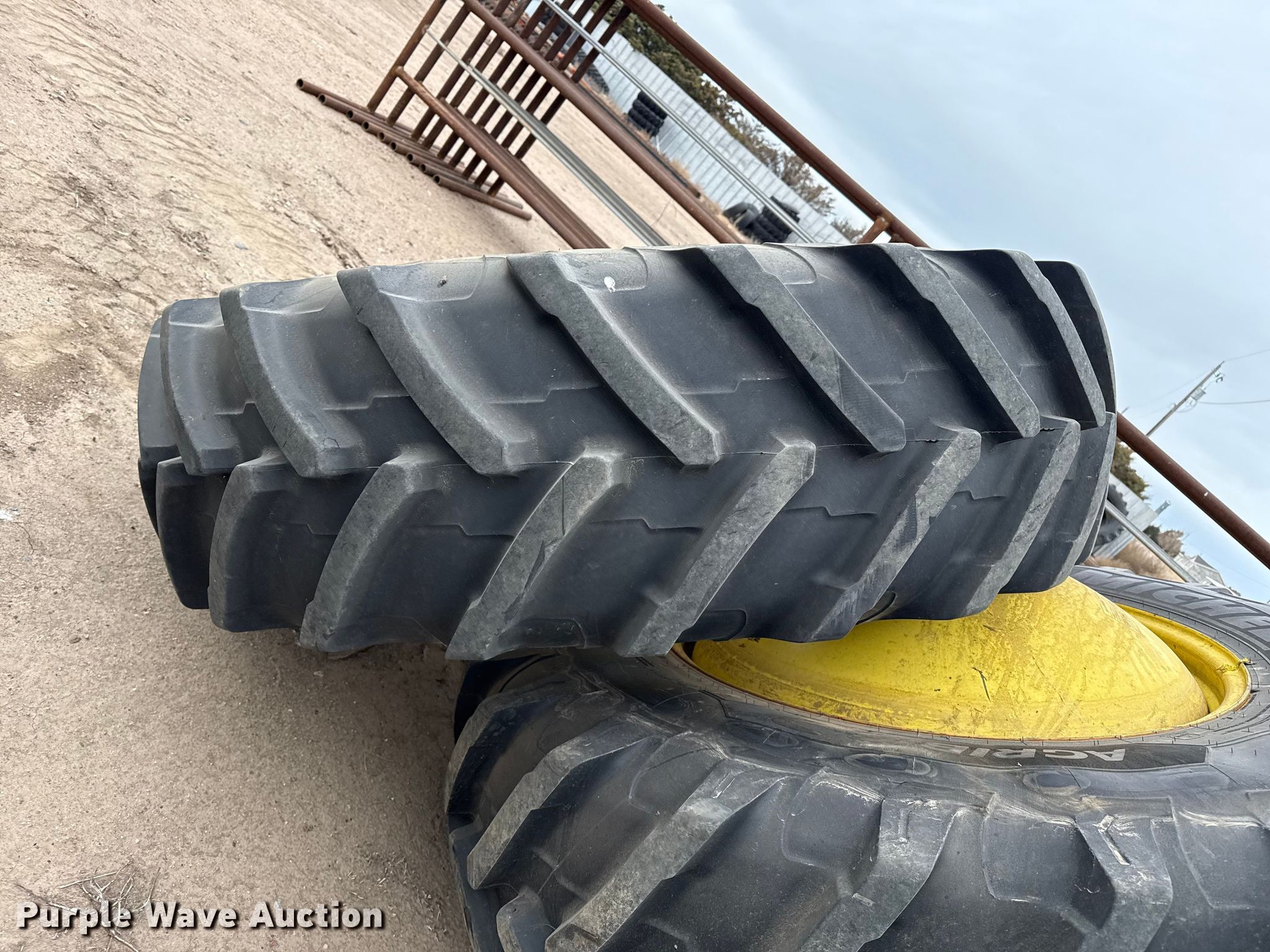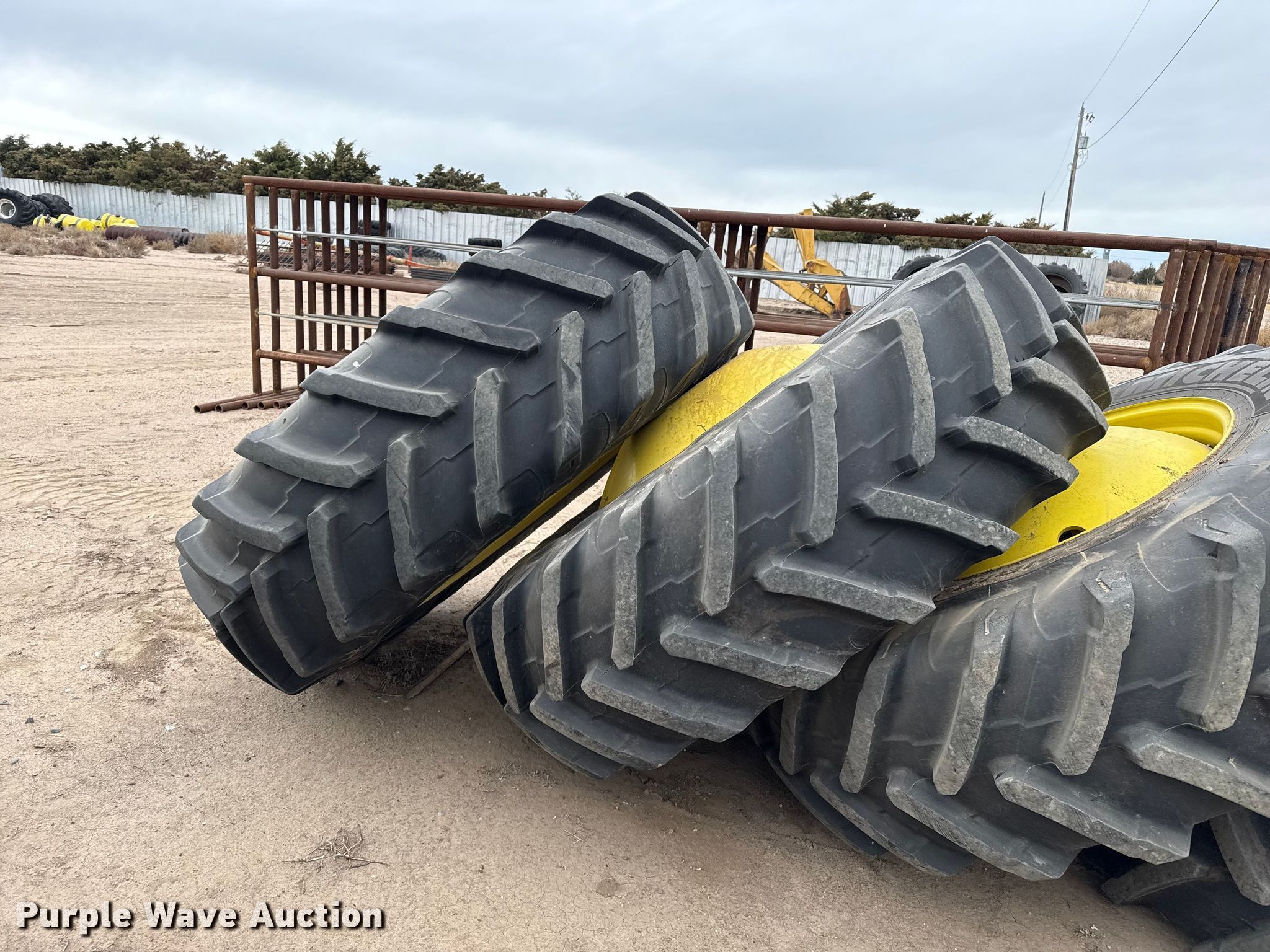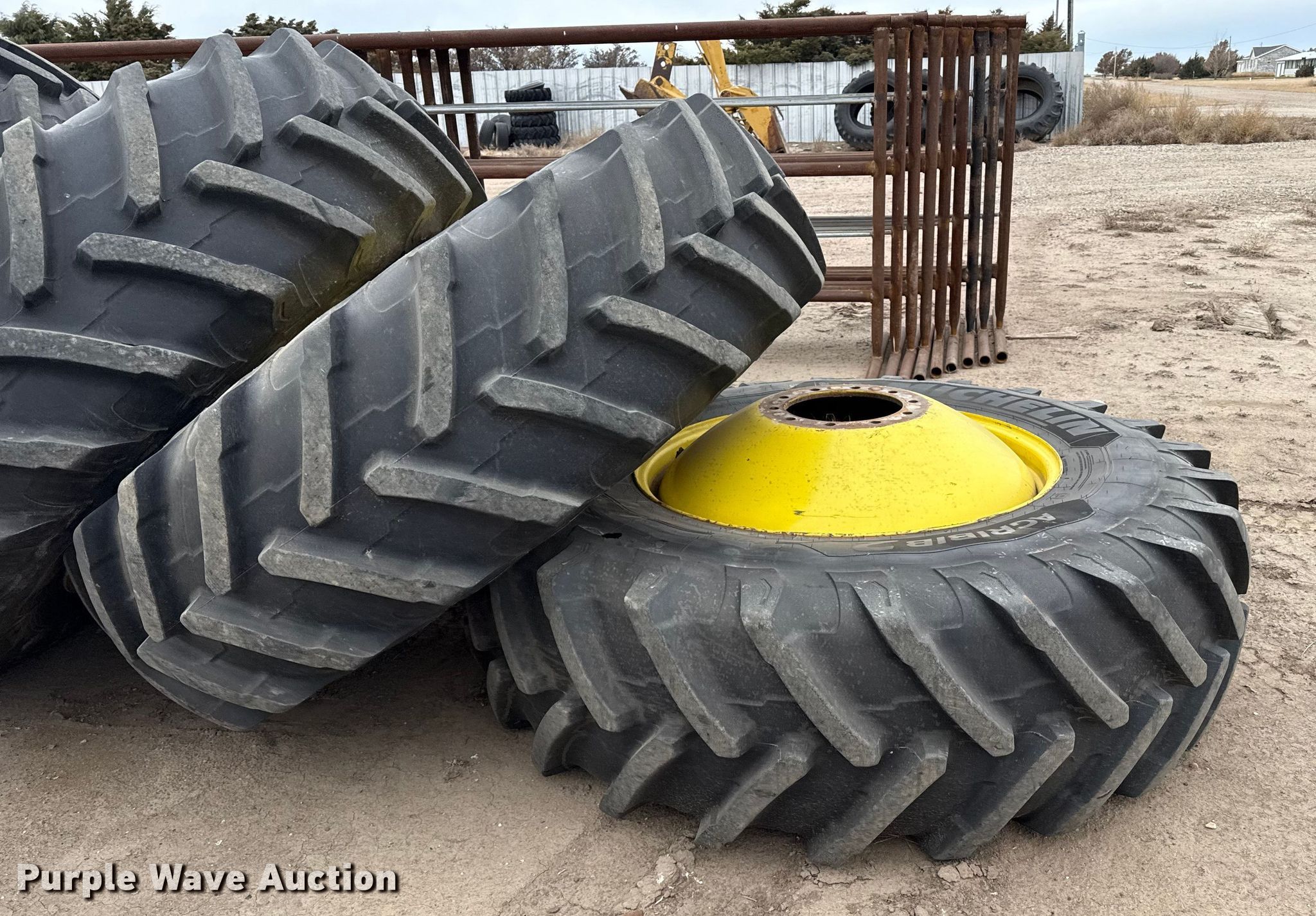 Purple Wave is selling a used Industrial Tires or Tracks in Kansas. This item is a (4) combine wheels and tires with the following: Size: 520/85R38