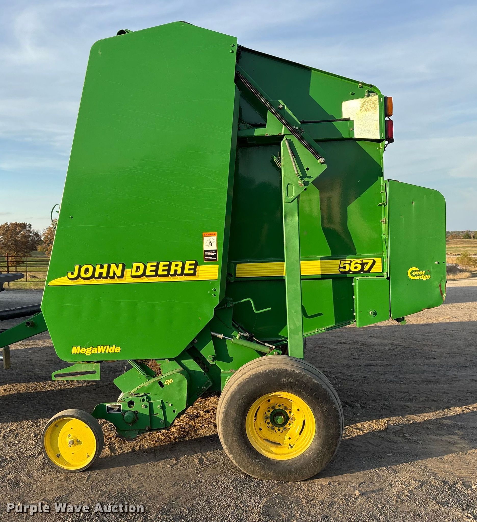 Purple Wave is selling a used Round Baler in Oklahoma. This item is a 2001 John Deere 567 round baler with the following: Bale count: 17,475, Serial: E00567X155492