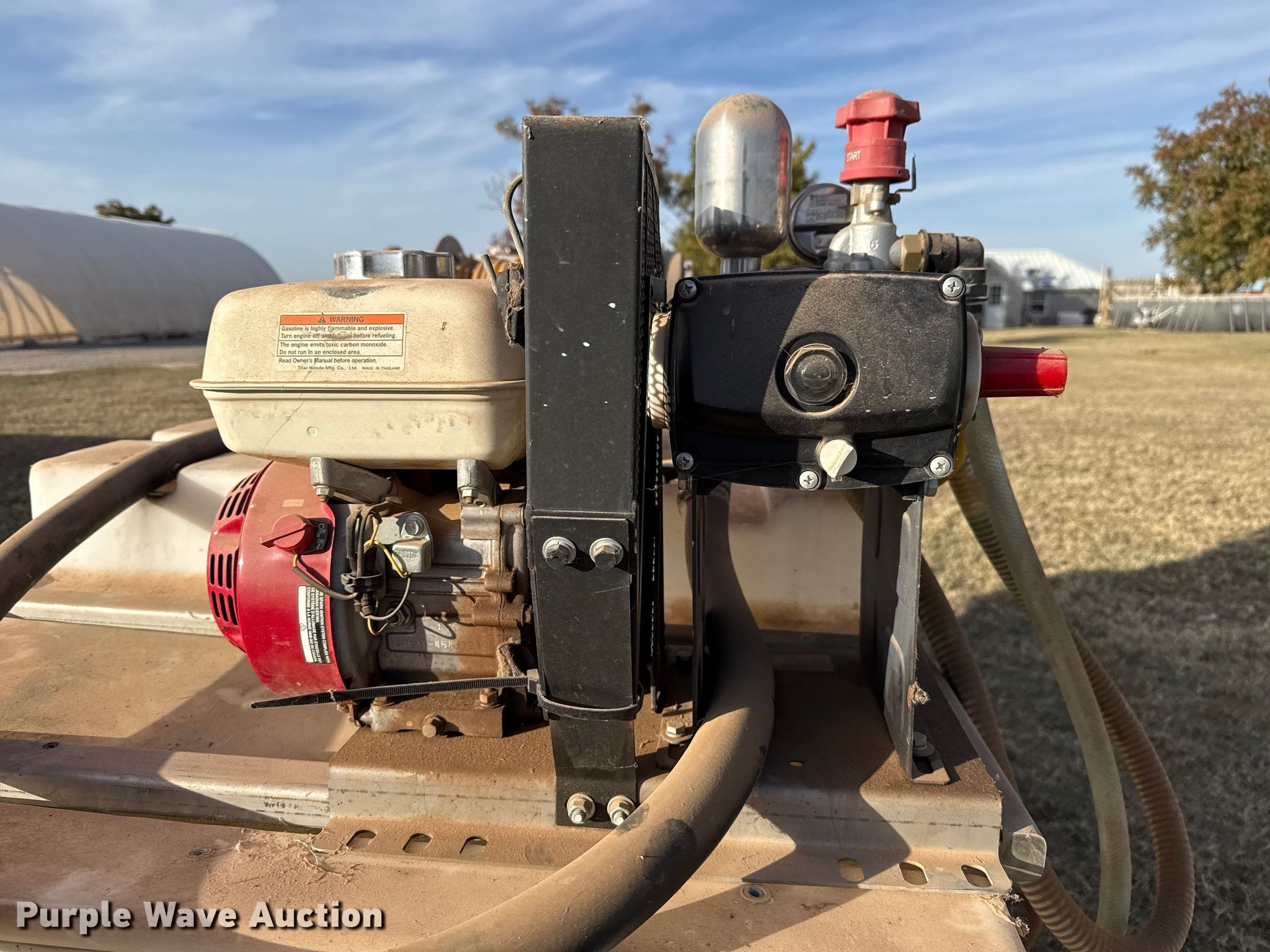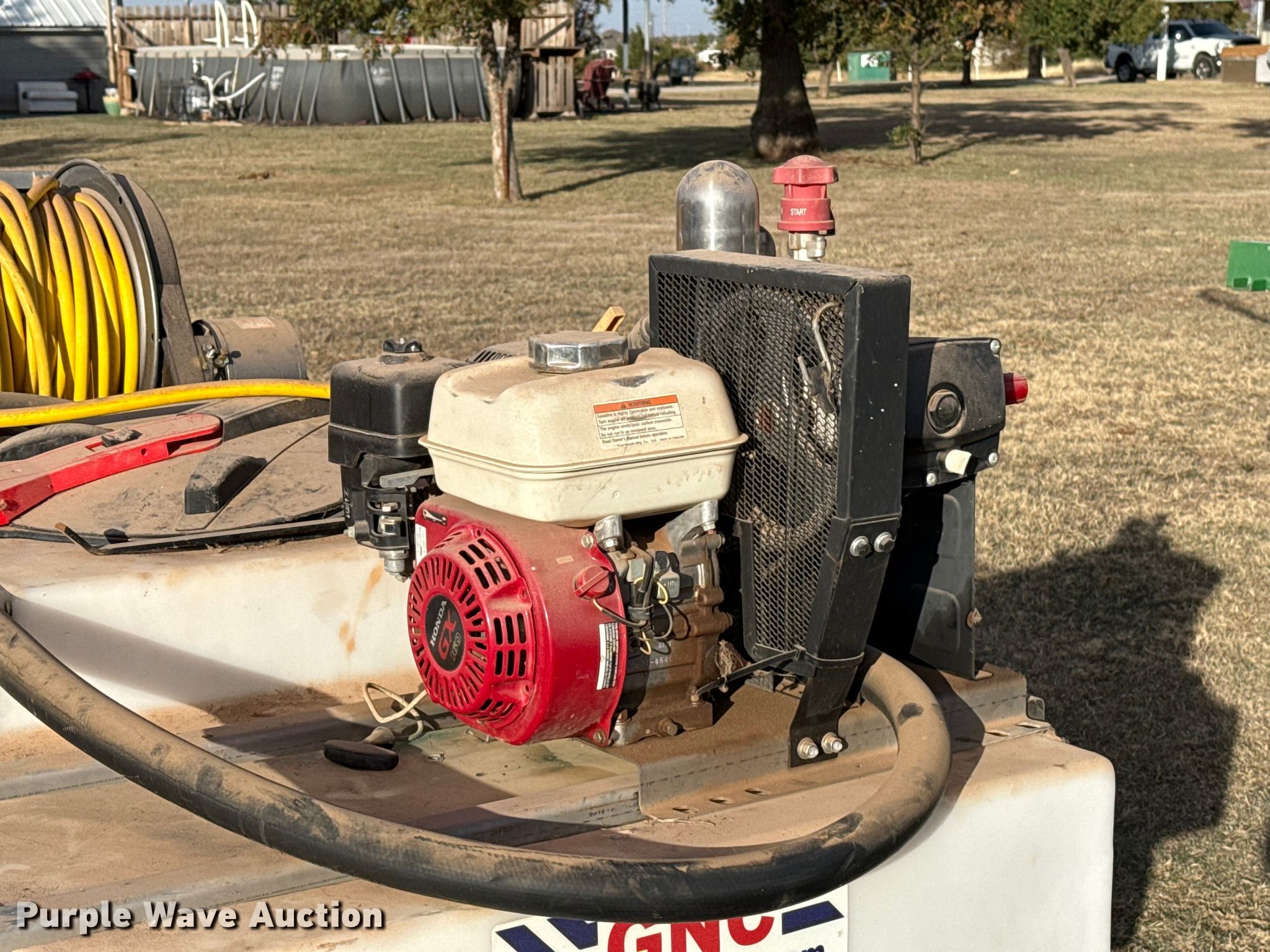GNC turf sprayer. Dimensions. Length: 5' 10", Width: 39", Height: 36". Engine Honda GX160, Cylinders: 1, Fuel type: Gas. Features Tank Capacity: 300 gallons, Hose reel Hannay, Serial: 3097040, Electric. Westerberg Applications, Inc.. Kingfisher, OK 73750