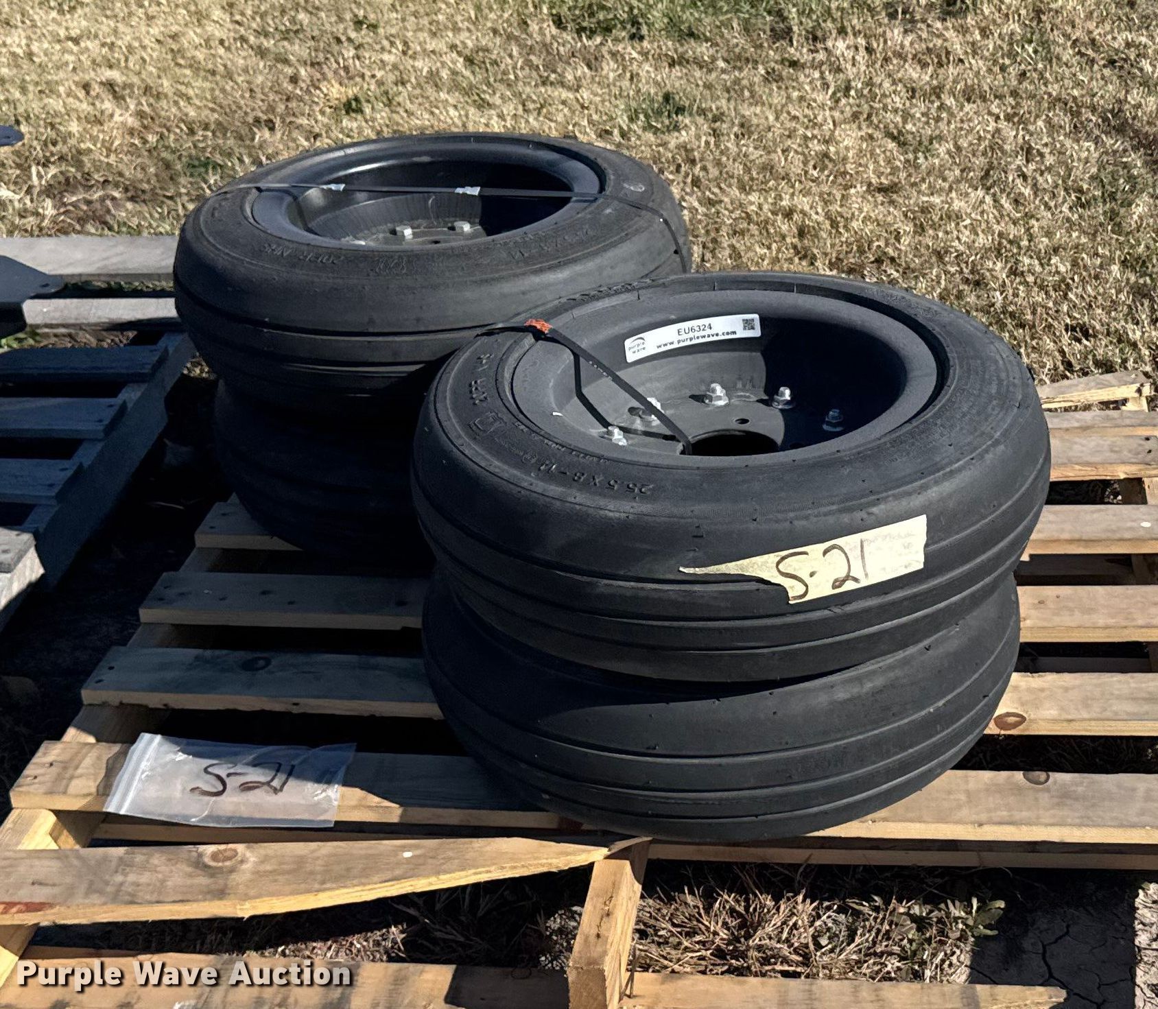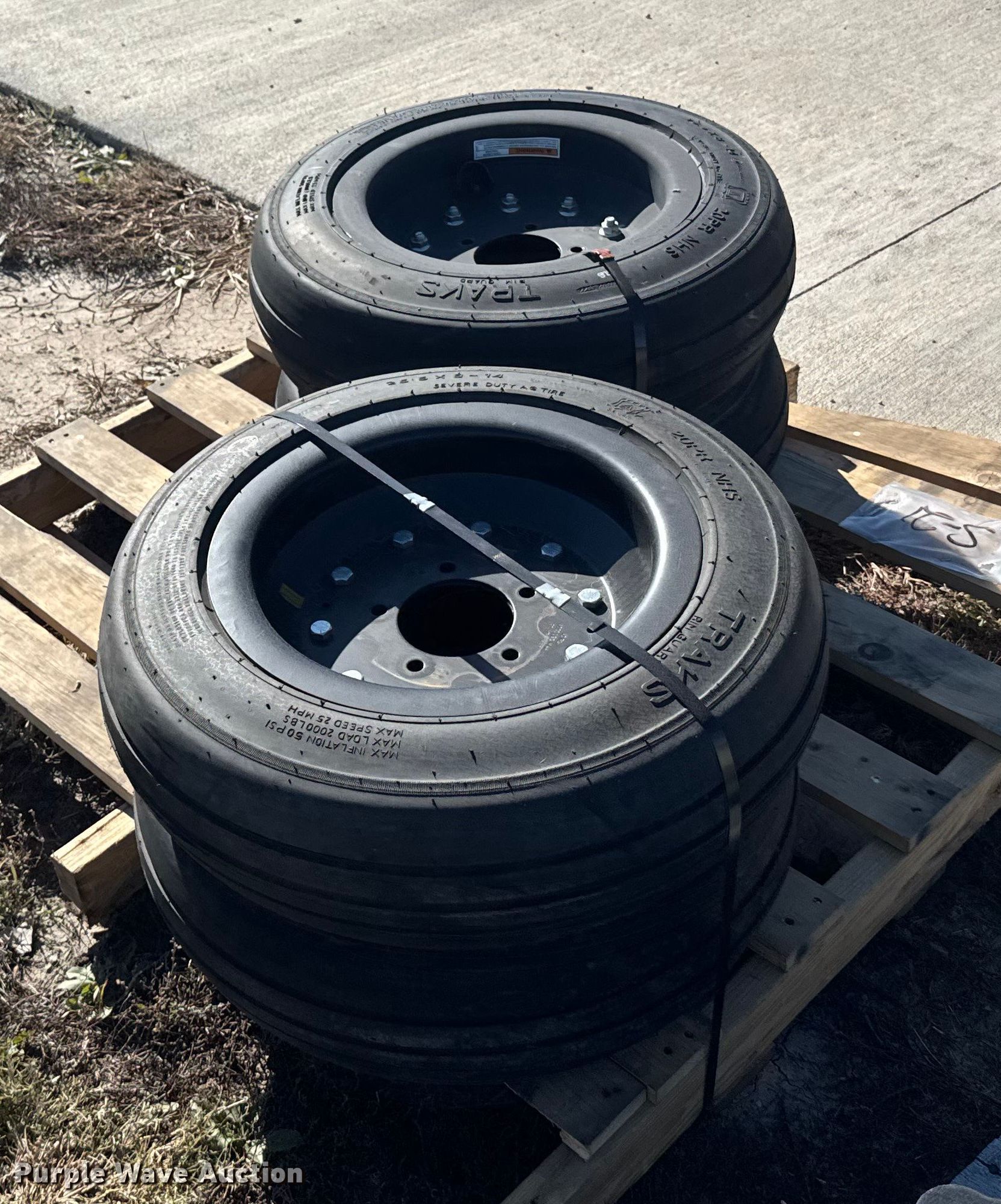 Purple Wave is selling a used Industrial Tires or Tracks in Kansas. This item is a (4) Traks 4-25.5x8-14 tires and wheels with the following: (4) Traks 4-25.5x8-14 tires and wheels. Land Pride. Salina, KS 67401