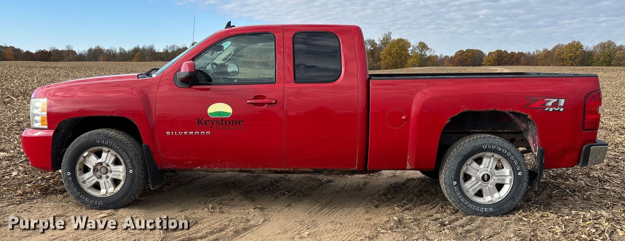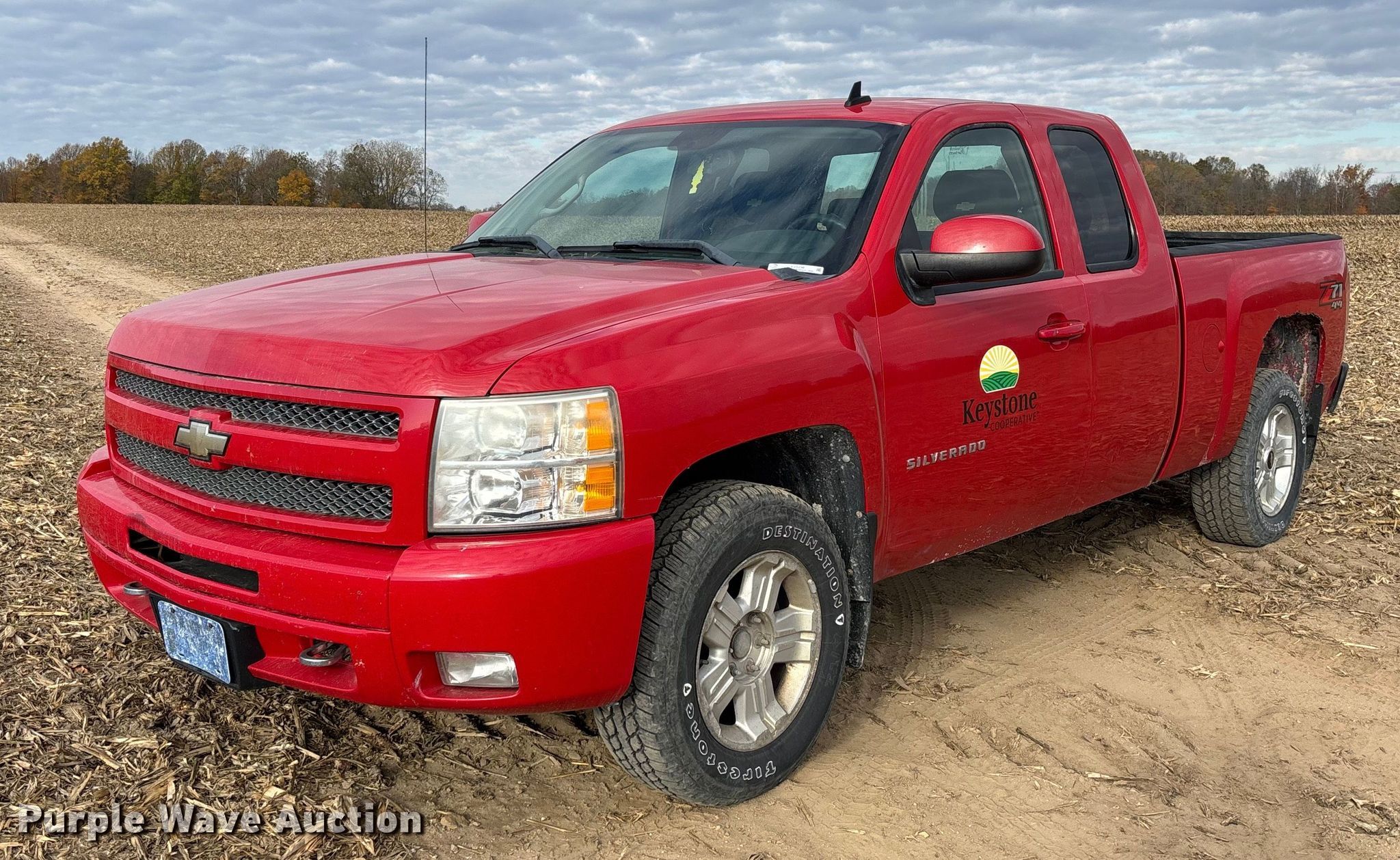 2011 Chevrolet Silverado 1500 Ext. Cab pickup truck. VIN: 1GCRKSE30BZ142508. Engine Displacement: 5.3L, Cylinders: 8, Fuel type: Gas. Transmission Automatic, Four wheel drive. Interior AC, Heat, Seat: Power driver, Power windows, Power locks, Cruise control, Brake controller. Features Bed Length: 6' 6". Tires Size: 265/65R18. Notes Dash warning indicator: Check engine, TPMS. Indiana title. Title distribution may be delayed up to 14 days from verification of funds. Keystone Cooperative. Larwill, IN 46764