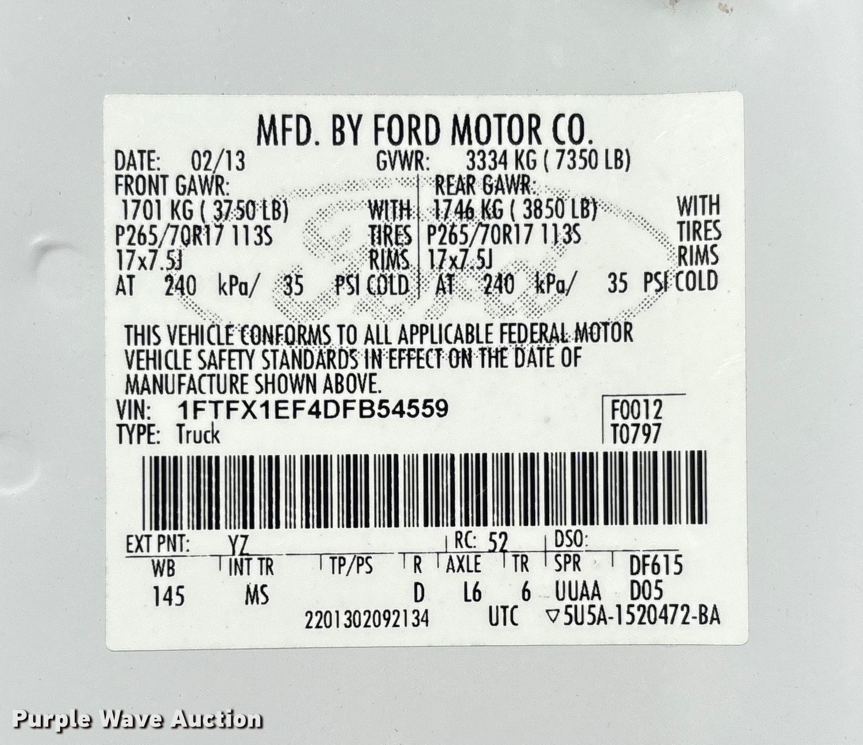 - VIN: 1FTFX1EF4DFB54559