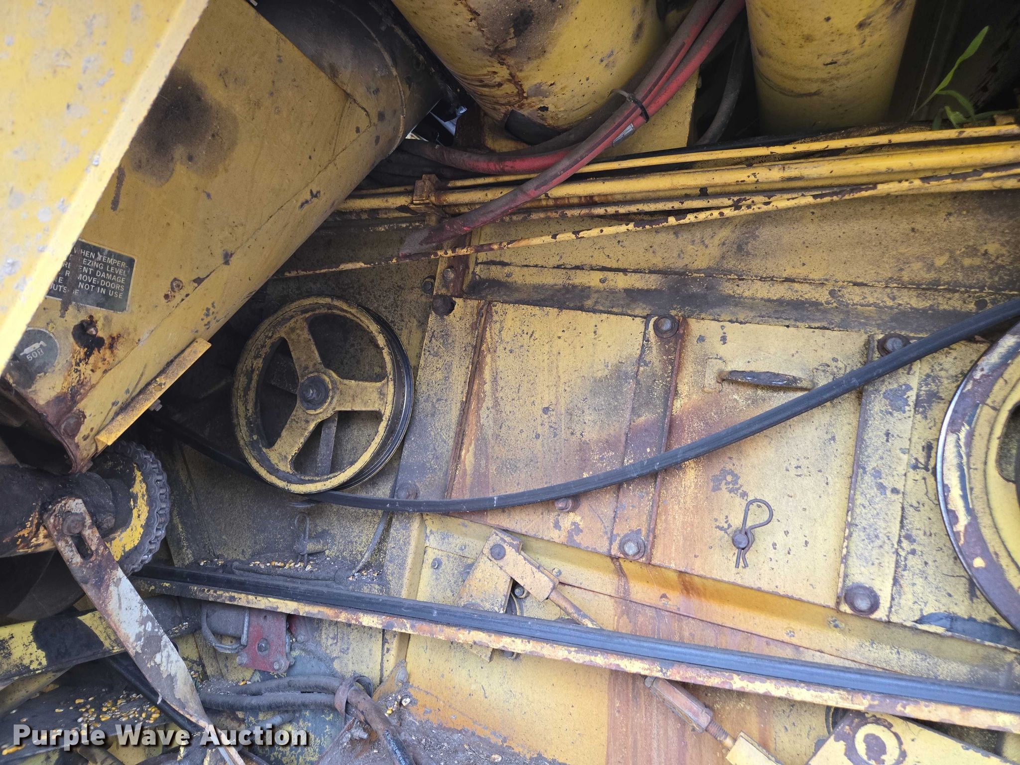 New Holland TR95 combine. Engine hours: 4,681 on meter. Engine Caterpillar, Cylinders: 8, Fuel type: Diesel. Transmission Hydrostatic. Operators station AC, Heat. Features Feederhouse: Multi-speed, Chaff spreader, Straw chopper, Bin: Extensions, Unloading auger length: 13'. Tires Front: 30.5-32, Rear: 12.4-24. Notes One chaff spreader missing. Blaine, KS 66549