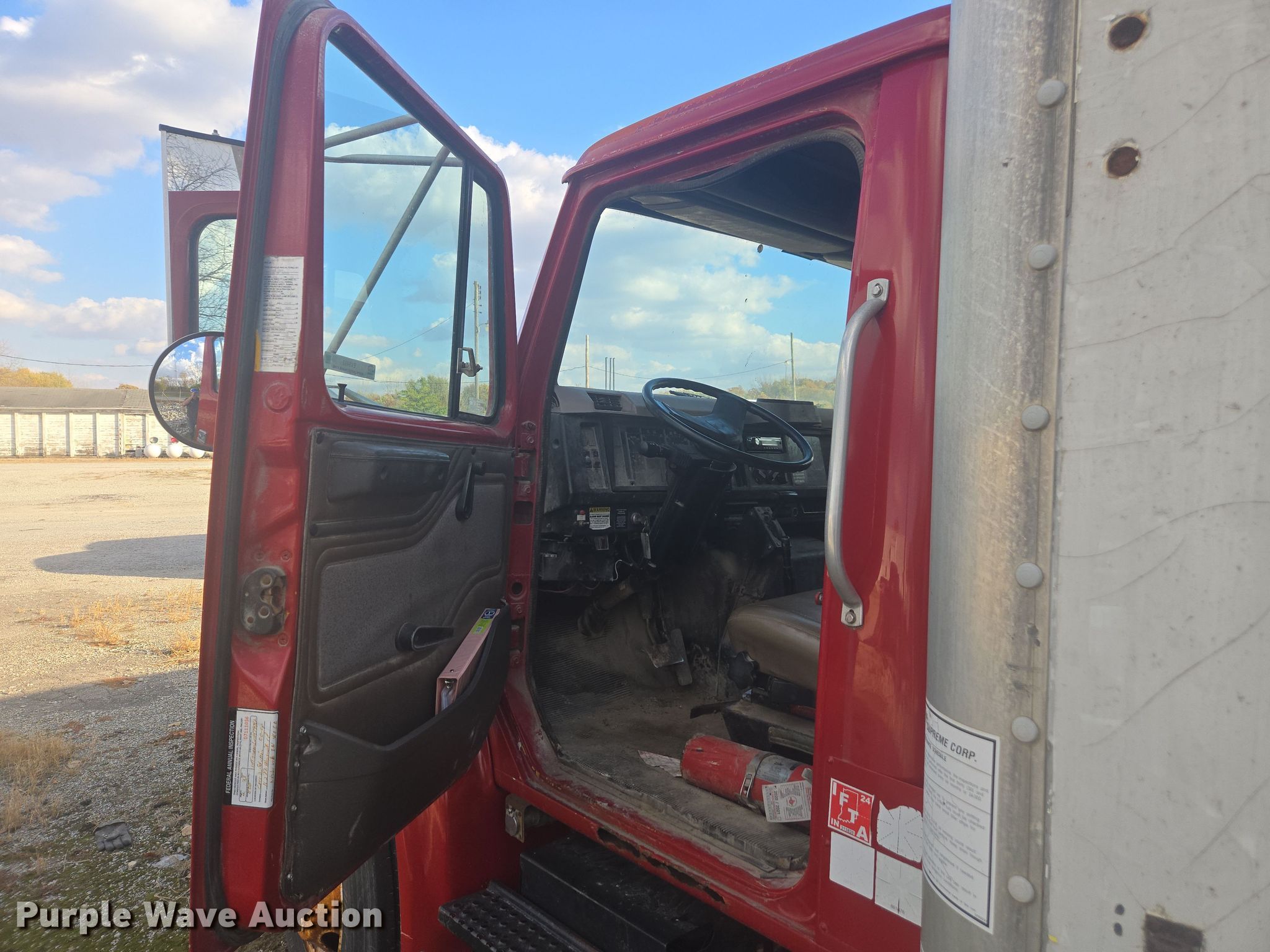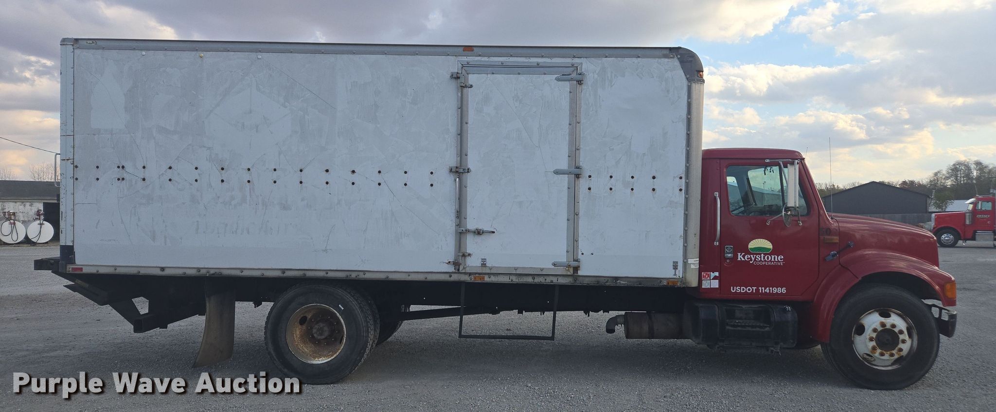 1997 International 4900 box truck. Miles: 312,279 on odometer, VIN: 1HTSDAAM6VH479962. Engine International DT466, Displacement: 7.6L, Cylinders: 6, Fuel type: Diesel. Transmission Automatic. Chassis Axles: Single, Suspension: Spring, Brakes: Hydraulic, Wheelbase: 254". Interior AC, Heat, Cruise control. Features Bed Box bed, Supreme Corp, Length: 20' 6", Width: 102", Height: 87", E-track rail system, Floor: Wood, End gate lift, Thieman, Capacity: 2,500 lbs. Tires Size: 11R22.5. Notes Contents not included, Unknown operating condition of end gate lift. Indiana title. Title distribution may be delayed up to 14 days from verification of funds. Keystone Cooperative. Noblesville, IN 46060