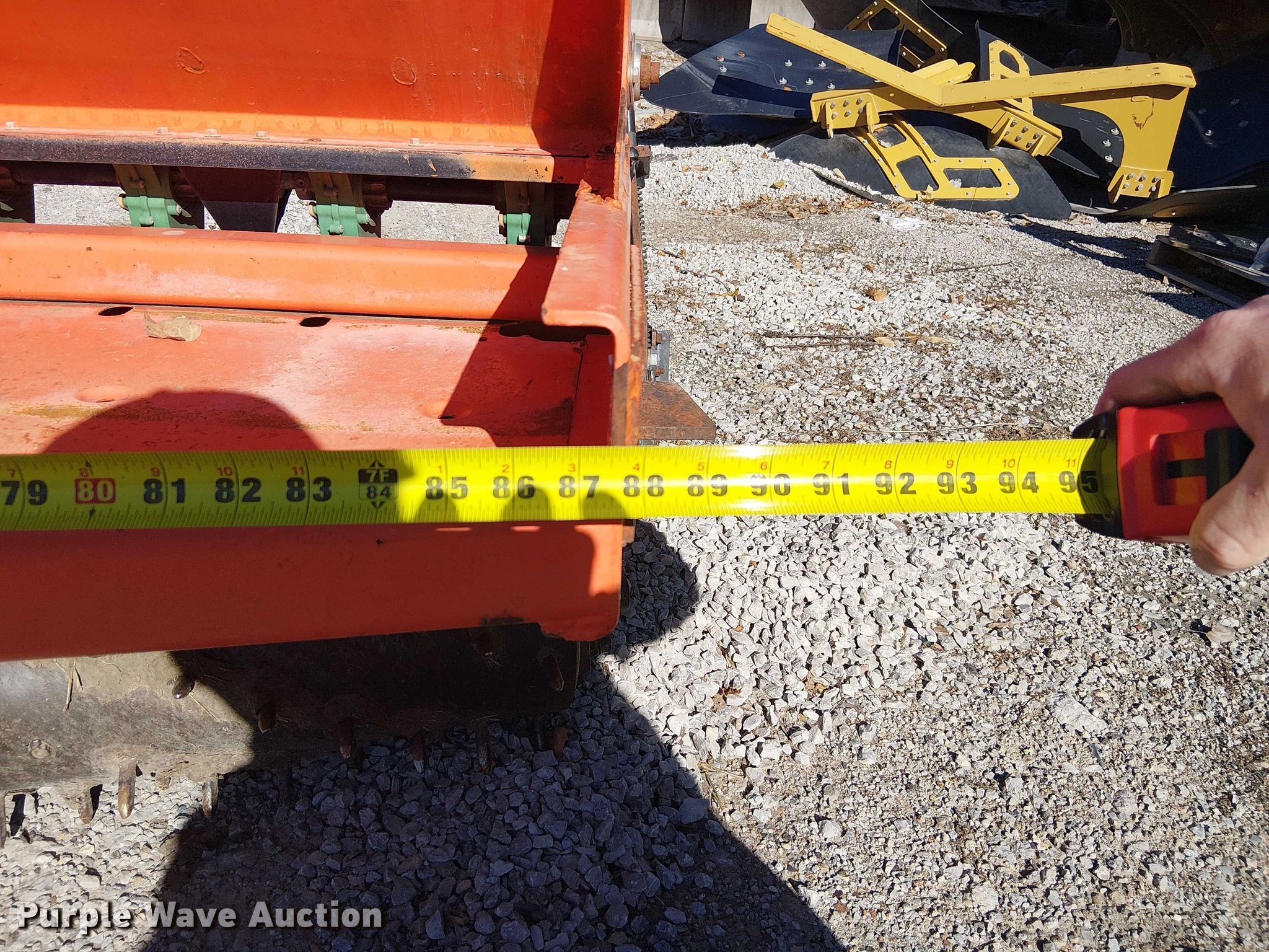 Land Pride seeder. Width: 88', Row units: 12, Row spacing: 7". Features Frame Hitch: Three point, Seed delivery Bulk fill system, Row units Meter drive: Ground, Down pressure: Spring. Notes Teeth missing. Clarkson Construction Co.. Kansas City, MO 64120