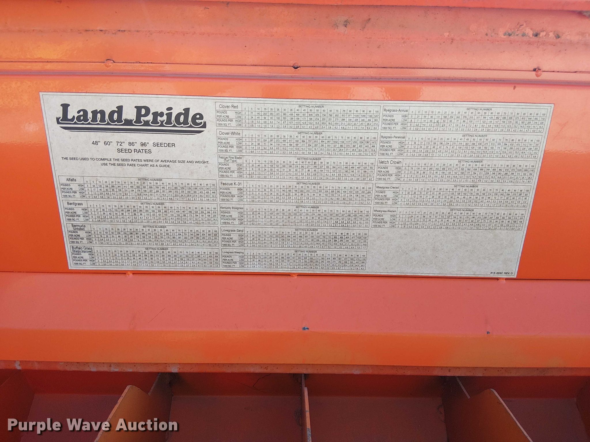 Purple Wave is selling a used Grain Drill or Seeder in Missouri. This item is a Land Pride seeder with the following: Width: 88', Row units: 12, Row spacing: 7"