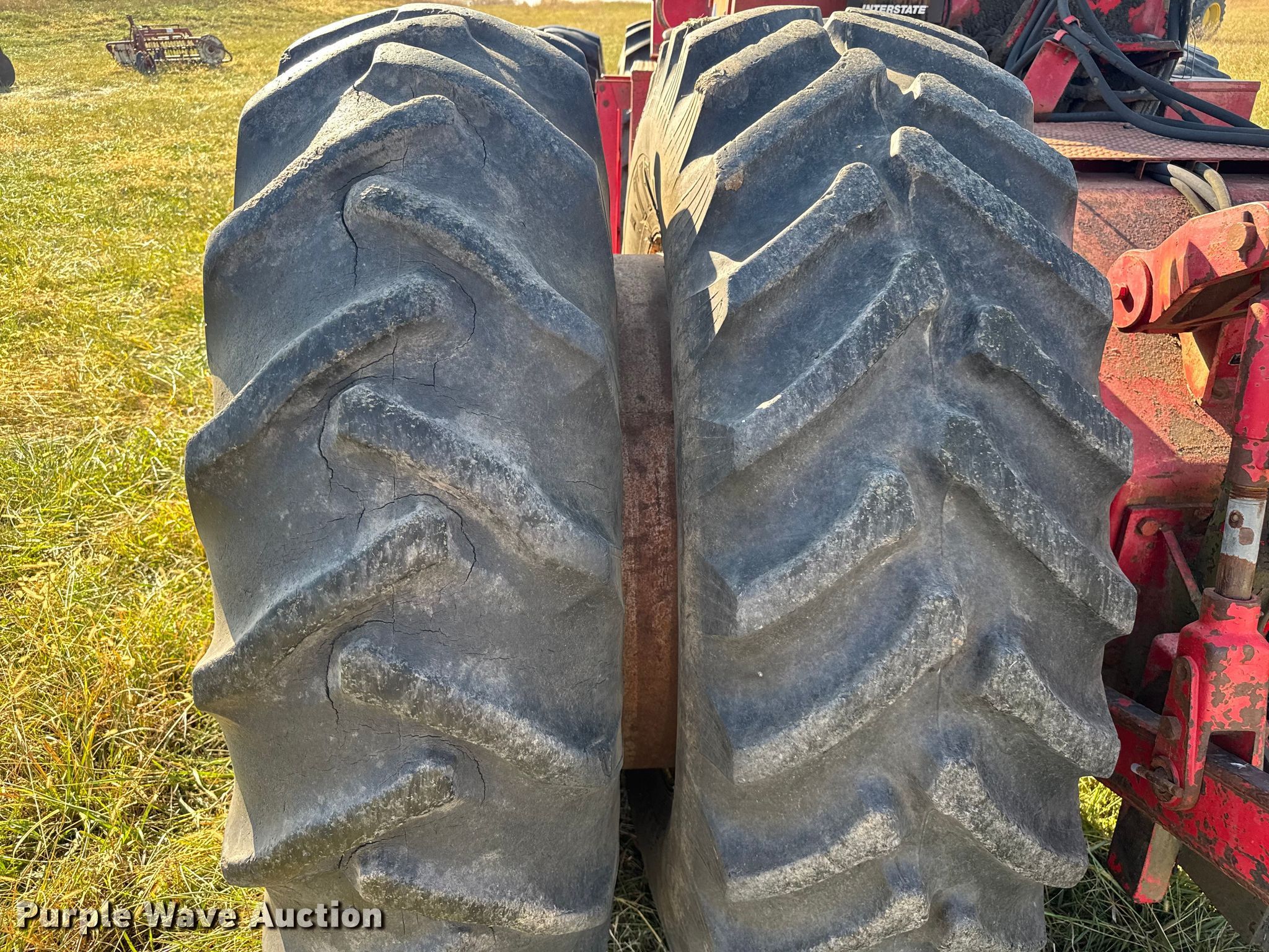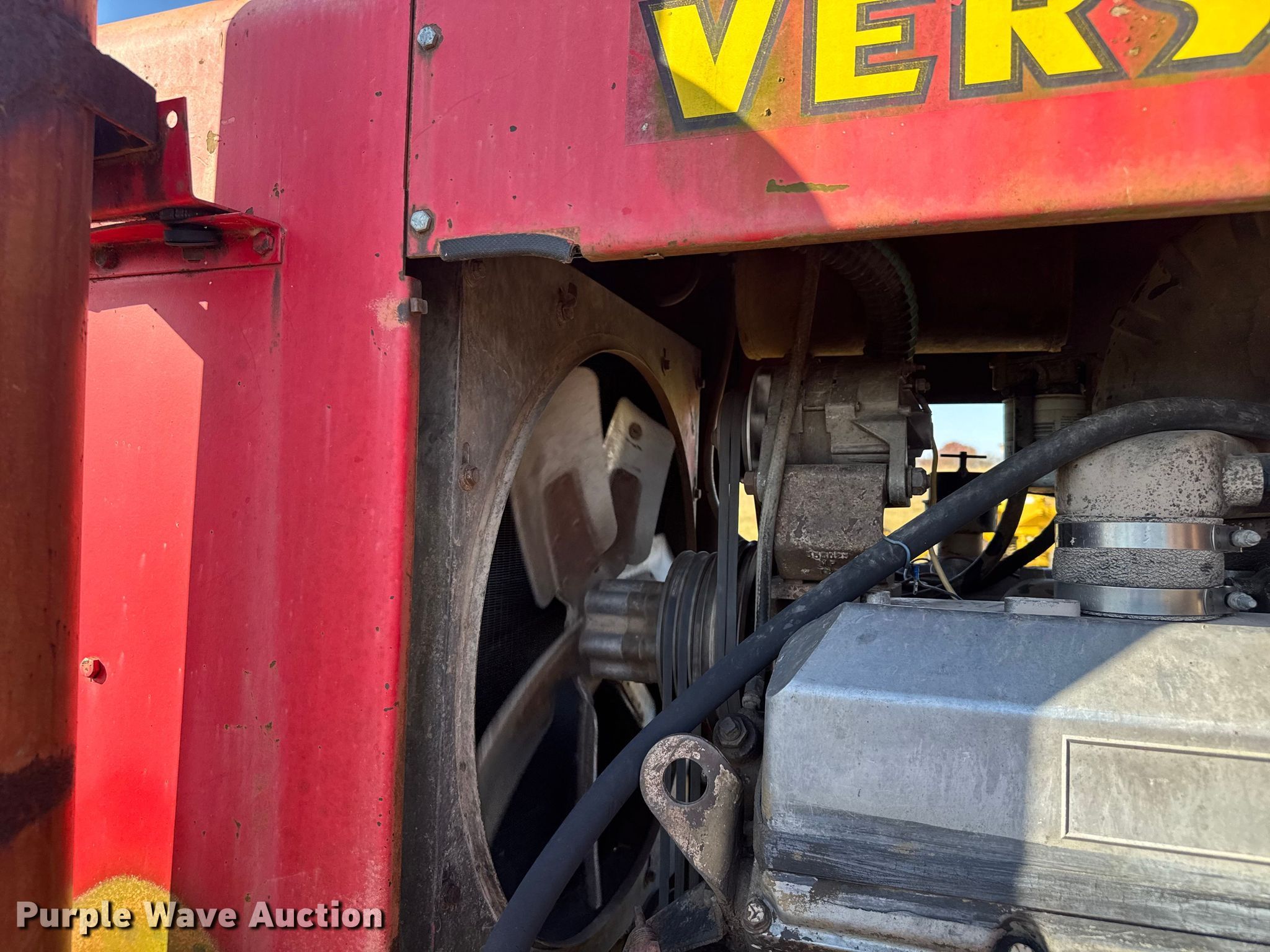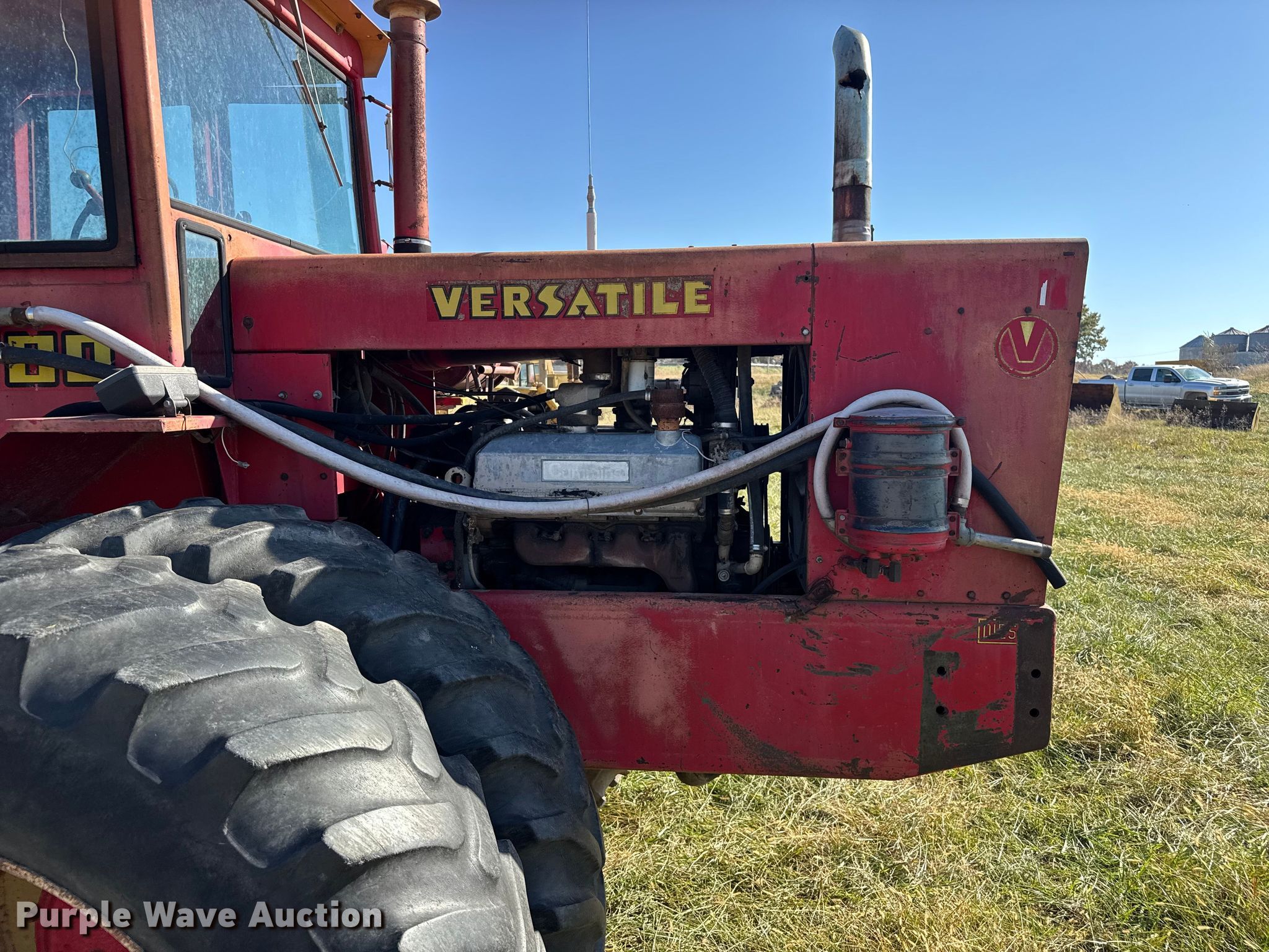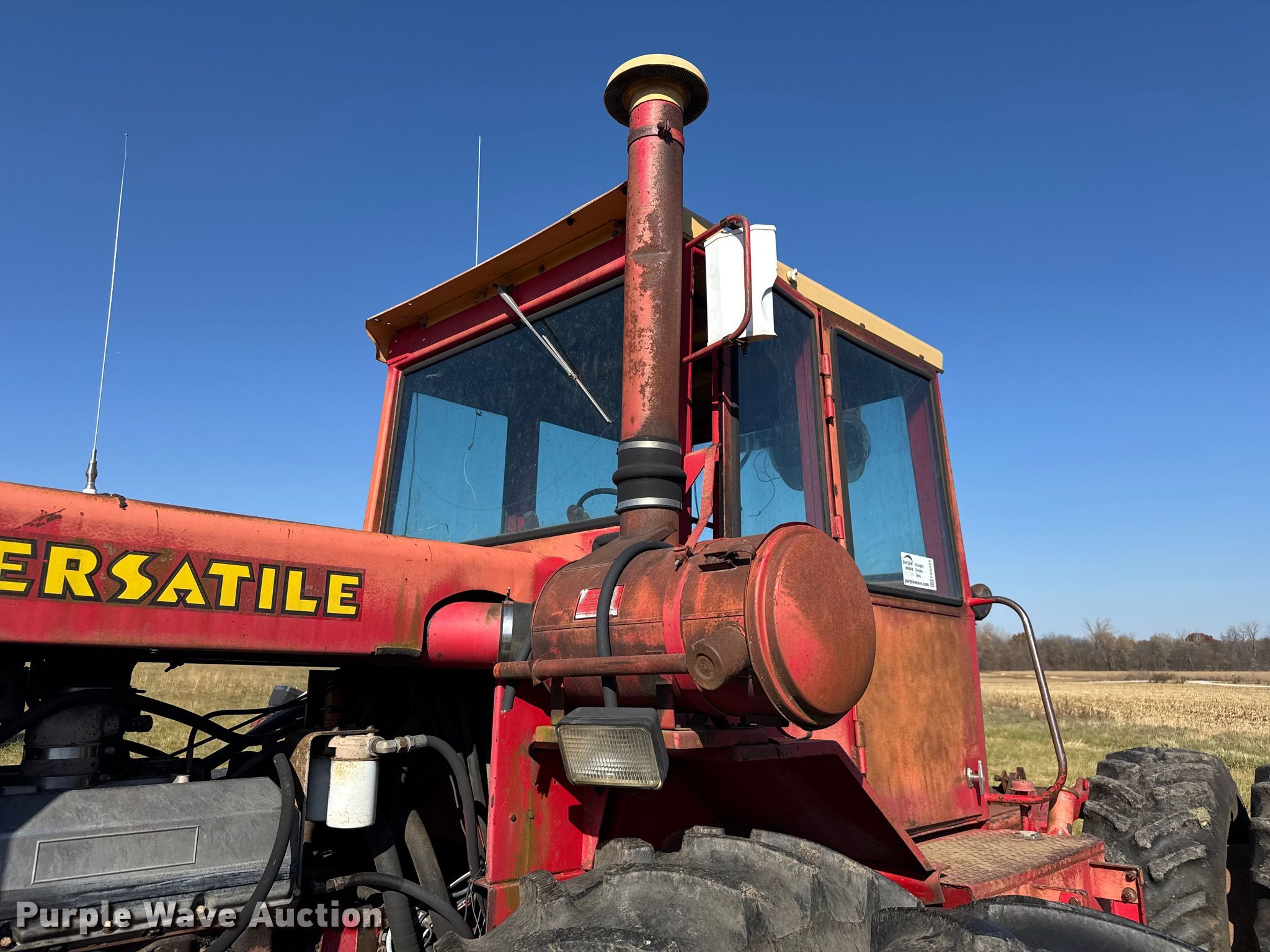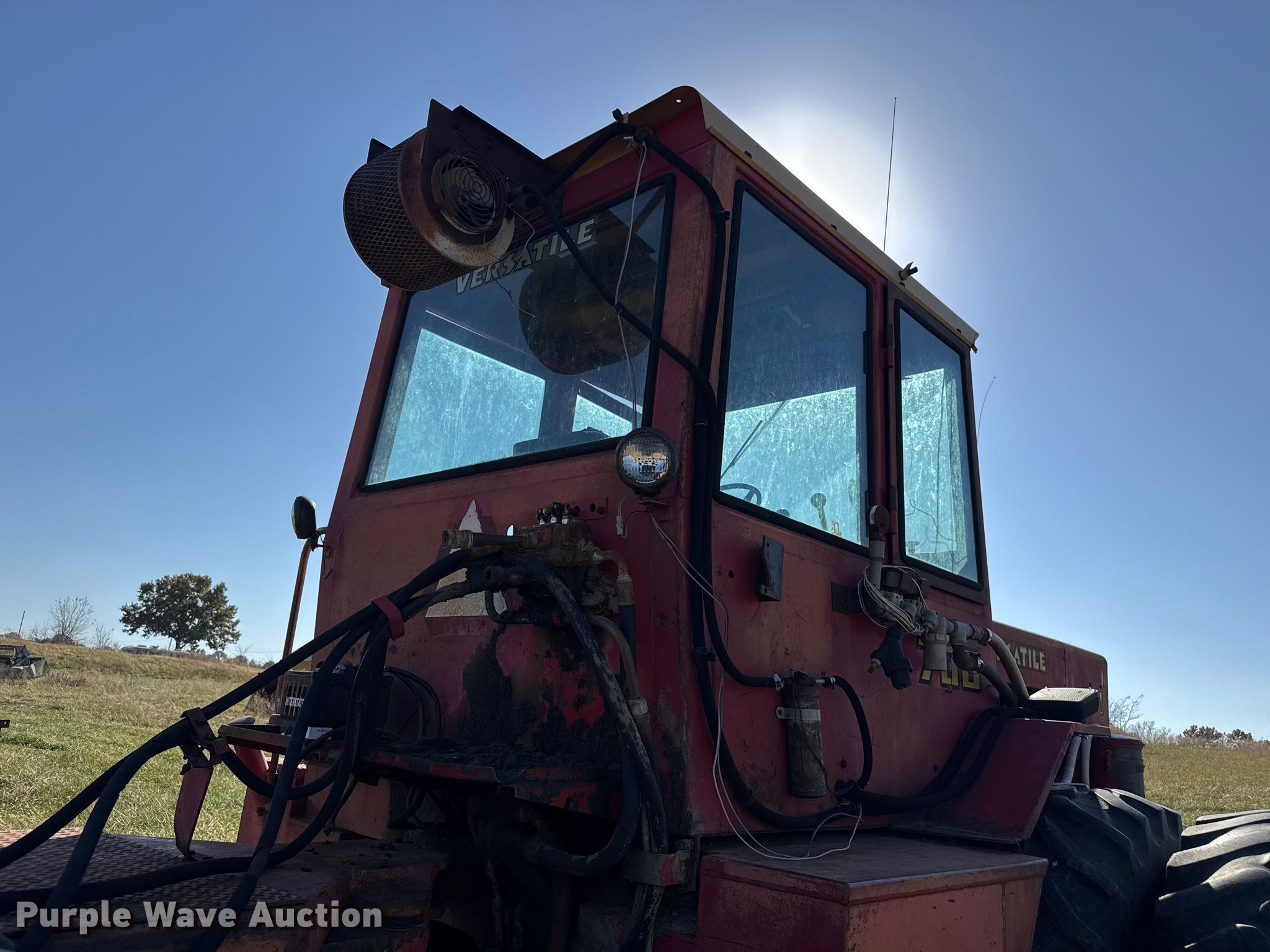 1975 Versatile 700 4WD tractor. Hours: 6,592 on meter, Serial: 7003011040. Engine Cummins, Cylinders: 8, Fuel type: Diesel. Transmission Manual, 12F - 4R. Operators station Heat. Features Three point Quick attach, Hydraulic remote sets Rear: 2. Tires Size: 18.4-38. Notes Brake issues, weak. Davies Farms. Dawn, MO 64638