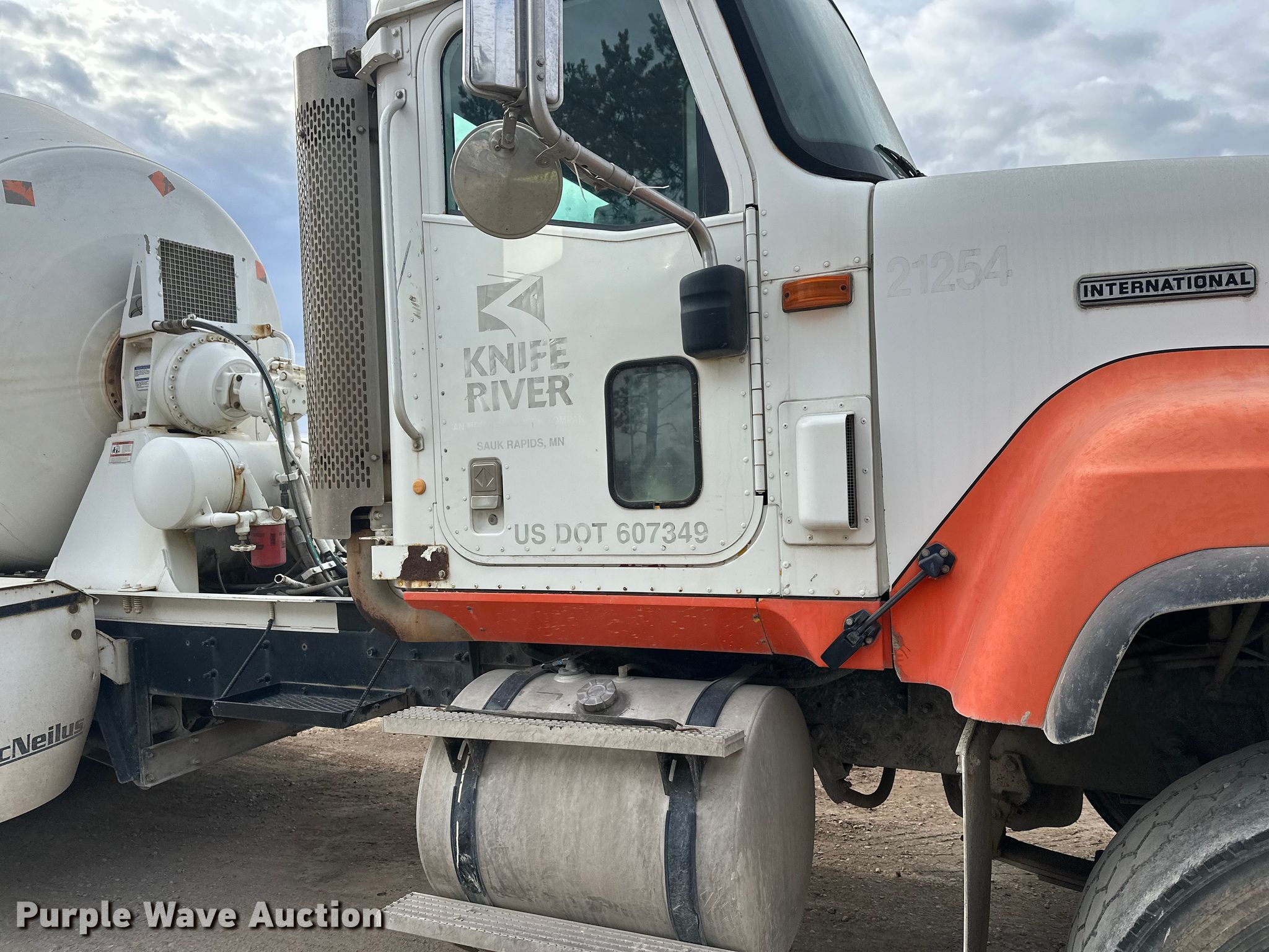 2000 International 5500i ready mix truck. Miles: 308,005 on odometer, Hours: 24,452 on meter, VIN: 1HTXLAHT1YJ005484, Unit #: 21254. Engine Cummins ISM, Displacement: 10.8L, Cylinders: 6, Fuel type: Diesel. Transmission Eaton Fuller 9LL, Manual, Speed: 11. Chassis Axles: 4, Pusher axle Steerable, Tag axle Steerable, Differential lock: Inter-axle, Suspension: Spring over walking beam, Brakes: Air, PTO. Interior AC, Heat, Power windows, Cruise control. Features Mixer McNeilus, Capacity: 11 cu.yd., Discharge: Rear, In-cab controls, Rear drum controls, Chute Chute type: Steel.. Tires Front: 425/65R22.5, Rear: 11R22.5, Lift axle: 255/70R22.5. Notes Windshield chipped or cracked. Minnesota title. Title distribution may be delayed up to 14 days from verification of funds. Knife River. Isanti, MN 55040