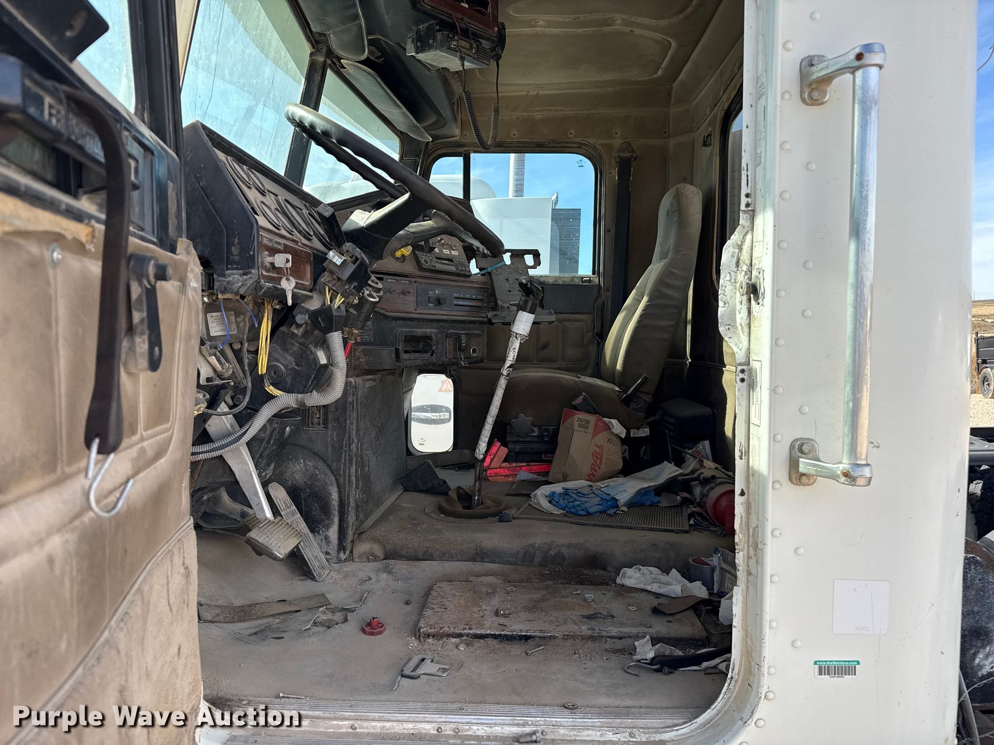 2006 Freightliner FLD semi truck. Miles: 578,726 on odometer, VIN: 1FUJALDE86DW79857, Unit #: 4243. Engine Caterpillar C13 Acert, Displacement: 12.5L, Cylinders: 6, Fuel type: Diesel. Transmission Manual. Chassis Axles: Tandem, Differential lock: Inter-axle, Suspension: Air Dump valves, Brakes: Air, PTO, Wet kit. Interior AC, Heat, Cruise control. Features Deck plate: Steel, Fifth wheel type: Air operated, Sliding, Fuel tank: Dual. Tires Size: 11R22.5. Notes Headlights missing, Batteries missing, Drivers seat missing, Engine issues, cranks but does not start , Unit must be towed or hauled , Non-operational unit. Titles will be distributed after confirmation of payment and removal. Oklahoma title. Title distribution may be delayed up to 30 days from verification of funds. Seaboard Foods. Optima, OK 73945