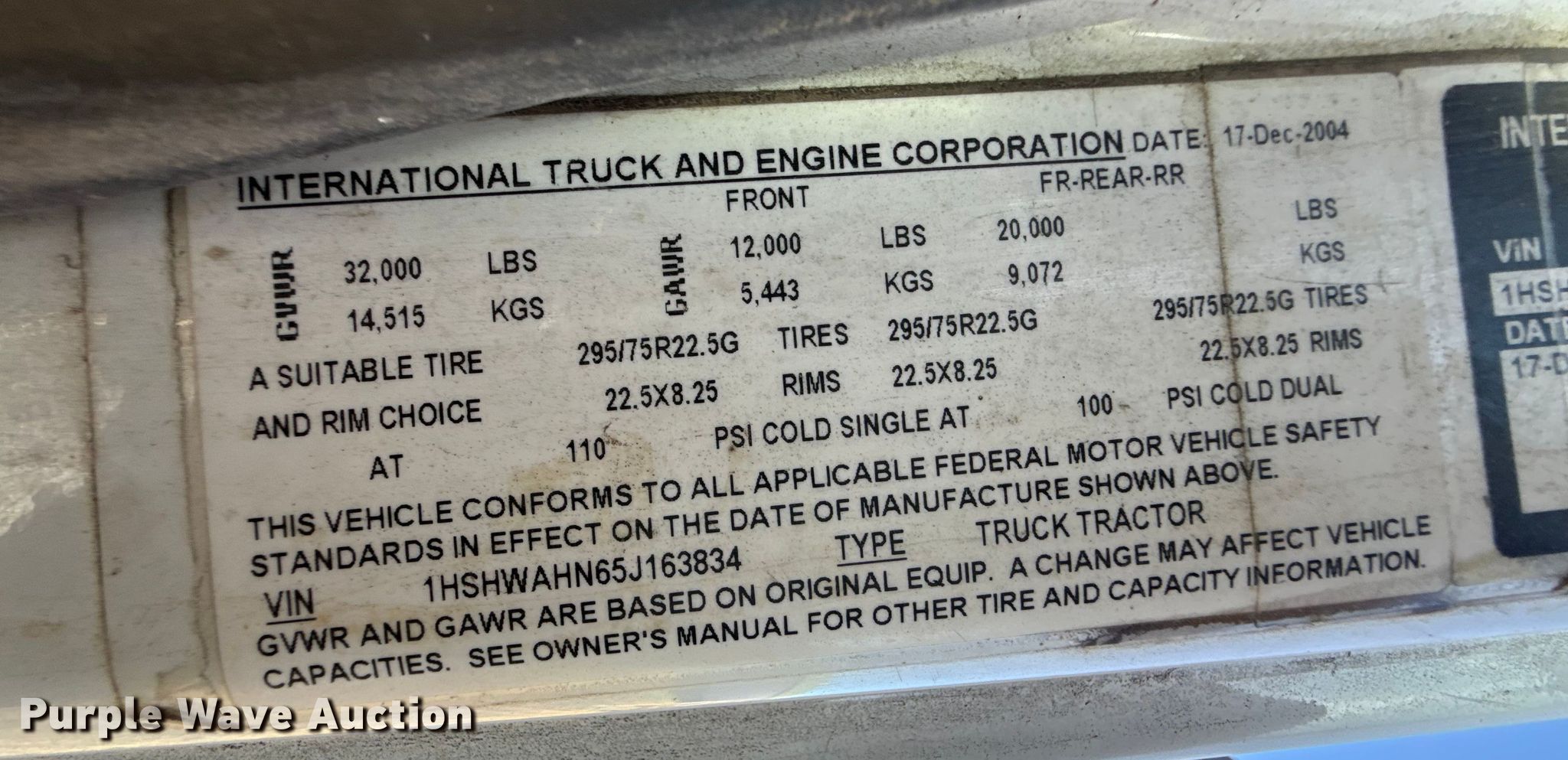 Purple Wave is selling a used Flat Bed Truck in Kansas. This item is a 2005 International 8600 flatbed truck with the following: Miles: 517,462 on odometer, VIN: 1HSHWAHN65J163834
