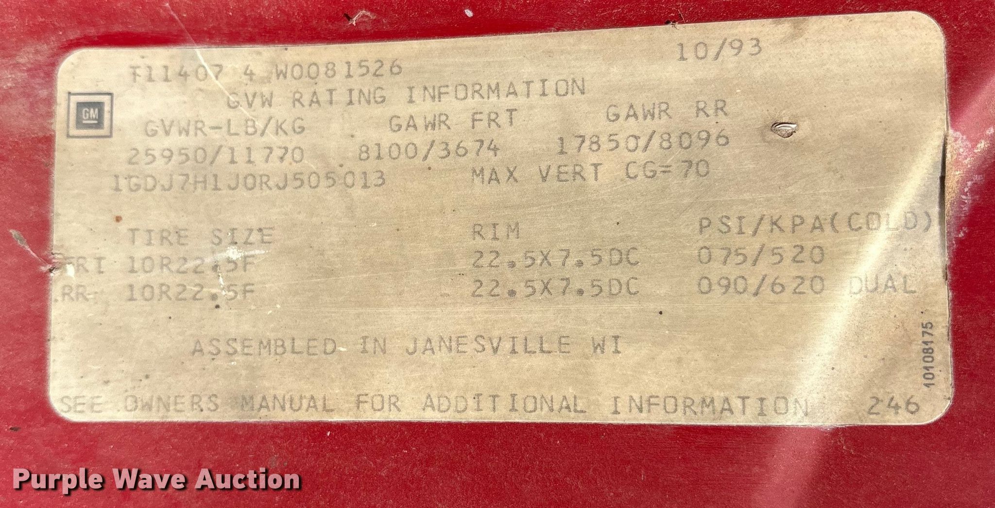 - VIN: 1GDJ7H1J0RJ505013