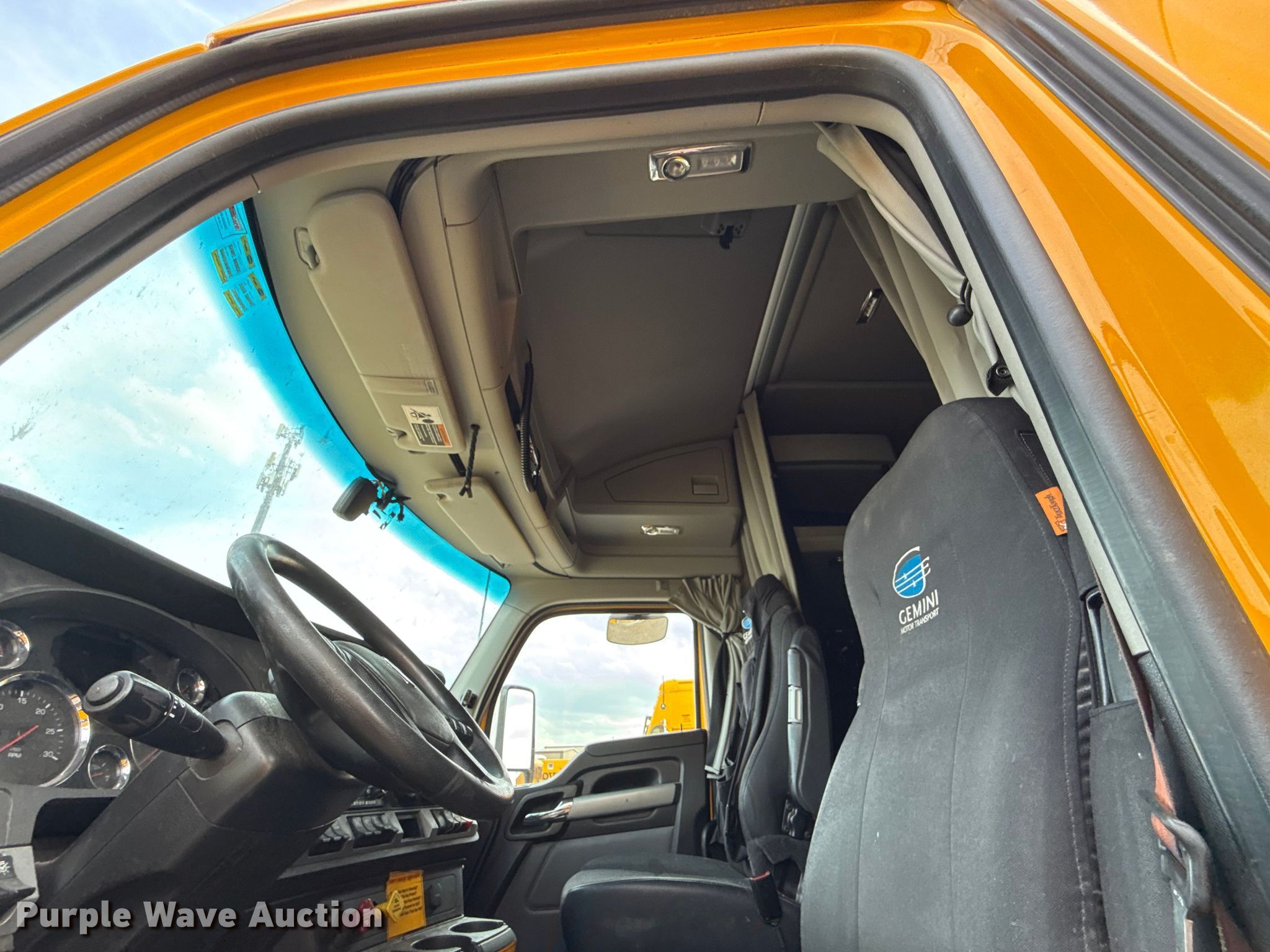 2022 Kenworth T680 semi truck. Miles: 430,643 on odometer, Hours: 20,002 on meter, VIN: 1XKYDP9X9NJ130459, Unit #: 22570. Engine Paccar MX-13, Serial: Y256813, Displacement: 12.9L, Cylinders: 6, Fuel type: Diesel. Transmission Automated manual. Chassis Axles: Tandem, Differential lock: Inter-axle, Suspension: Air Dump valves, Brakes: Air, GVWR: 50,500 lbs FAWR: 12,500 lbs, IAWR: 19,000 lbs, RAWR: 19,000 lbs. Interior AC, Heat, Power windows, Power locks, Cruise control, Air ride cab, Sleeper Sleeper length: 64", Beds: Single, Auxiliary power unit Carrier. Features Deck plate: Aluminum, Fifth wheel type: Fixed, Fuel tank: Dual. Notes Windshield chipped or cracked, Jump start required during on-site data collection, Air lines disconnected, Non-operational transmission , Non-operational unit Unit must be towed or hauled. Oklahoma title. Title distribution may be delayed up to 30 days from verification of funds. Gemini Motor Transport. Oklahoma City, OK 73127