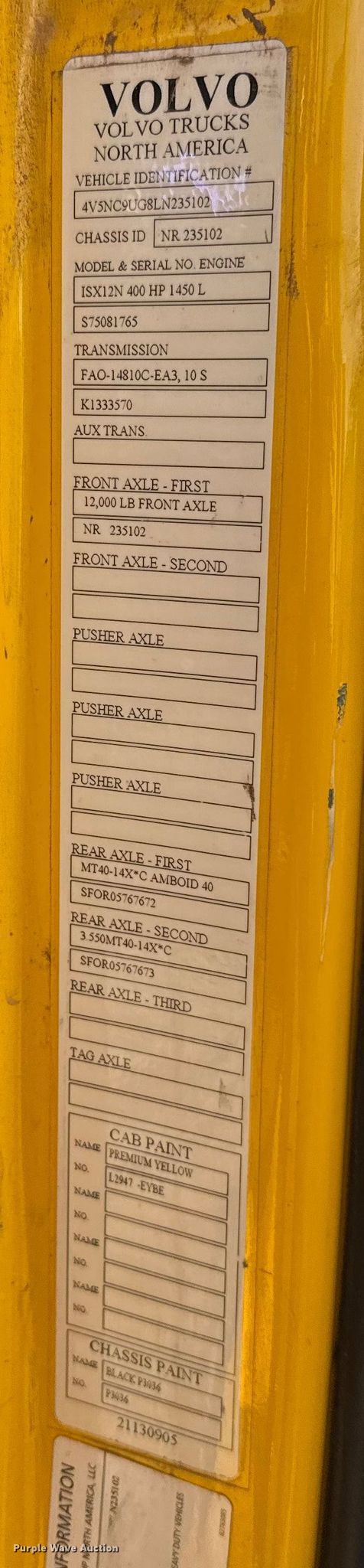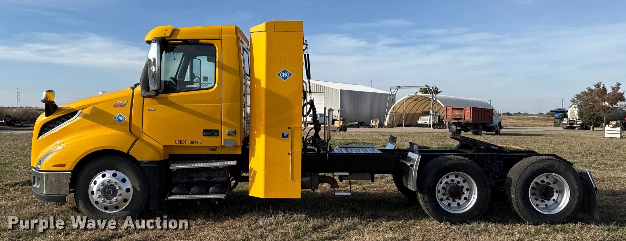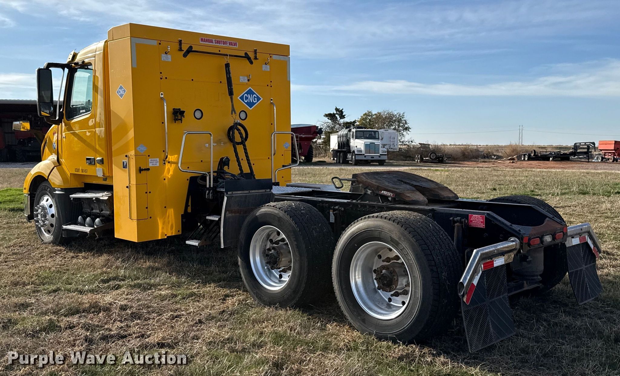 2020 Volvo VNL semi truck. Miles: 428,905 on odometer, Hours: 10,373 on meter, VIN: 4V5NC9UG8LN235102. Engine Cummins ISX, Displacement: 12L, Cylinders: 6, Fuel type: CNG, Engine brake. Transmission Automated manual. Chassis Axles: Tandem, Differential lock: Inter-axle, Suspension: Air Dump valves, Brakes: Air, GVWR: 50,000 lbs FAWR: 12,000 lbs, IAWR: 19,000 lbs, RAWR: 19,000 lbs. Interior AC, Heat, Heated mirrors, Power windows, Power locks, Cruise control, Air ride cab, Auxiliary controls. Features Deck plate: Aluminum, Fifth wheel type: Fixed. Tires Front: 295/75R22.5, Rear: 445/50R22 5. Oklahoma title. Title distribution may be delayed up to 14 days from verification of funds. Westerberg Applications, Inc.. Kingfisher, OK 73750