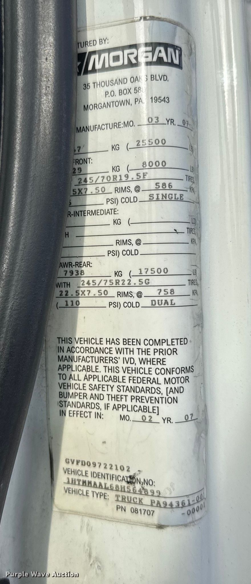 2008 International MA025 box truck. Miles: 391,371 on odometer, VIN: 1HTMMAAL68H564899. Engine International DT466, Displacement: 7.64L, Fuel type: Diesel. Transmission Automatic. Chassis Axles: Single, Suspension: Spring, Brakes: Air, GVWR: 25,500 lbs. Interior AC, Heat, Heated mirrors. Features Bed Box bed, Length: 24' 6", Width: 102", Height: 96", E-track rail system, Floor: Wood, End gate lift. Tires Size: 11R22.5. Notes Dash warning indicator: ABS. Kansas title. Title distribution may be delayed up to 14 days from verification of funds. Leiker Farms & Trucking. Hays, KS 67601