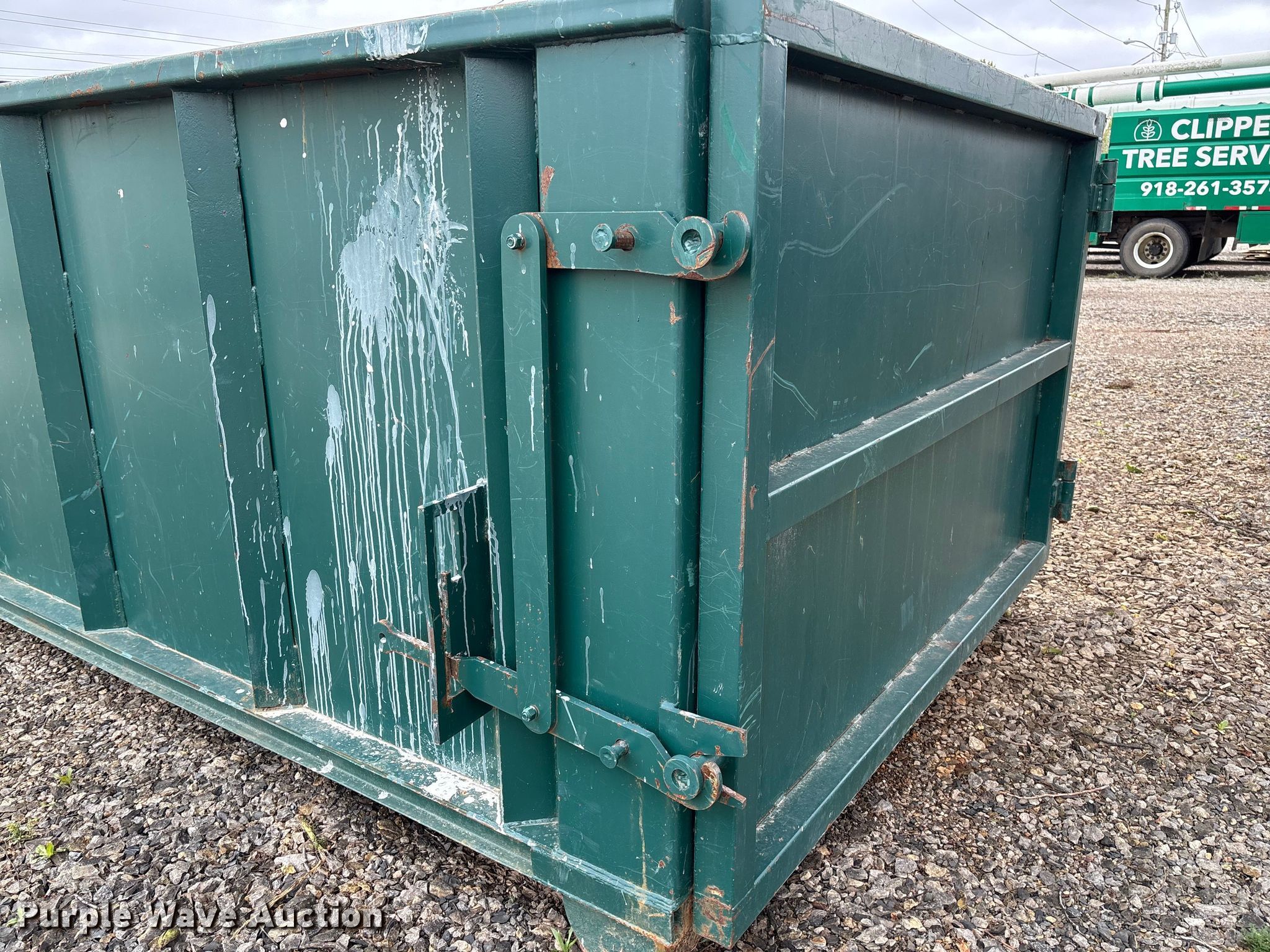 Purple Wave is selling a used Refuse or Compaction Equip. in Oklahoma. This item is a Roll-off dumpster with the following: Overall, Length: 14', Width: 7' 4", Height: 54"