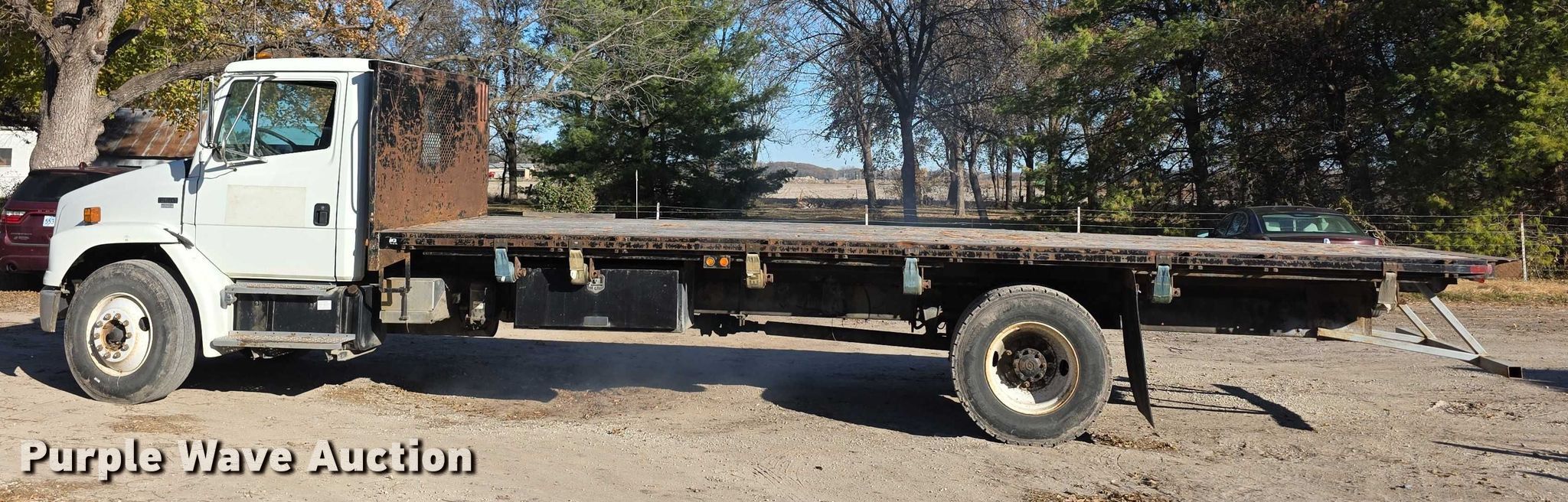 Purple Wave is selling a used Flat Bed Truck in Kansas. This item is a 2000 Freightliner FL70 flatbed truck with the following: Kilometers: 358,272 on odometer, VIN: 1FV6HLBC7YHF83280