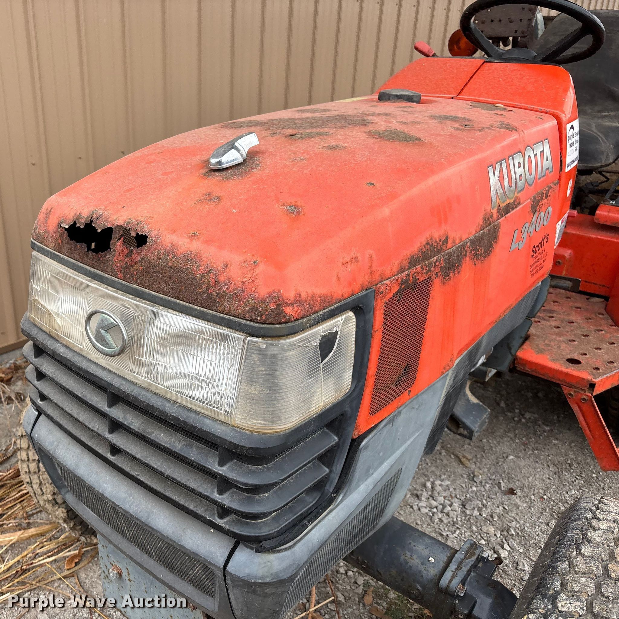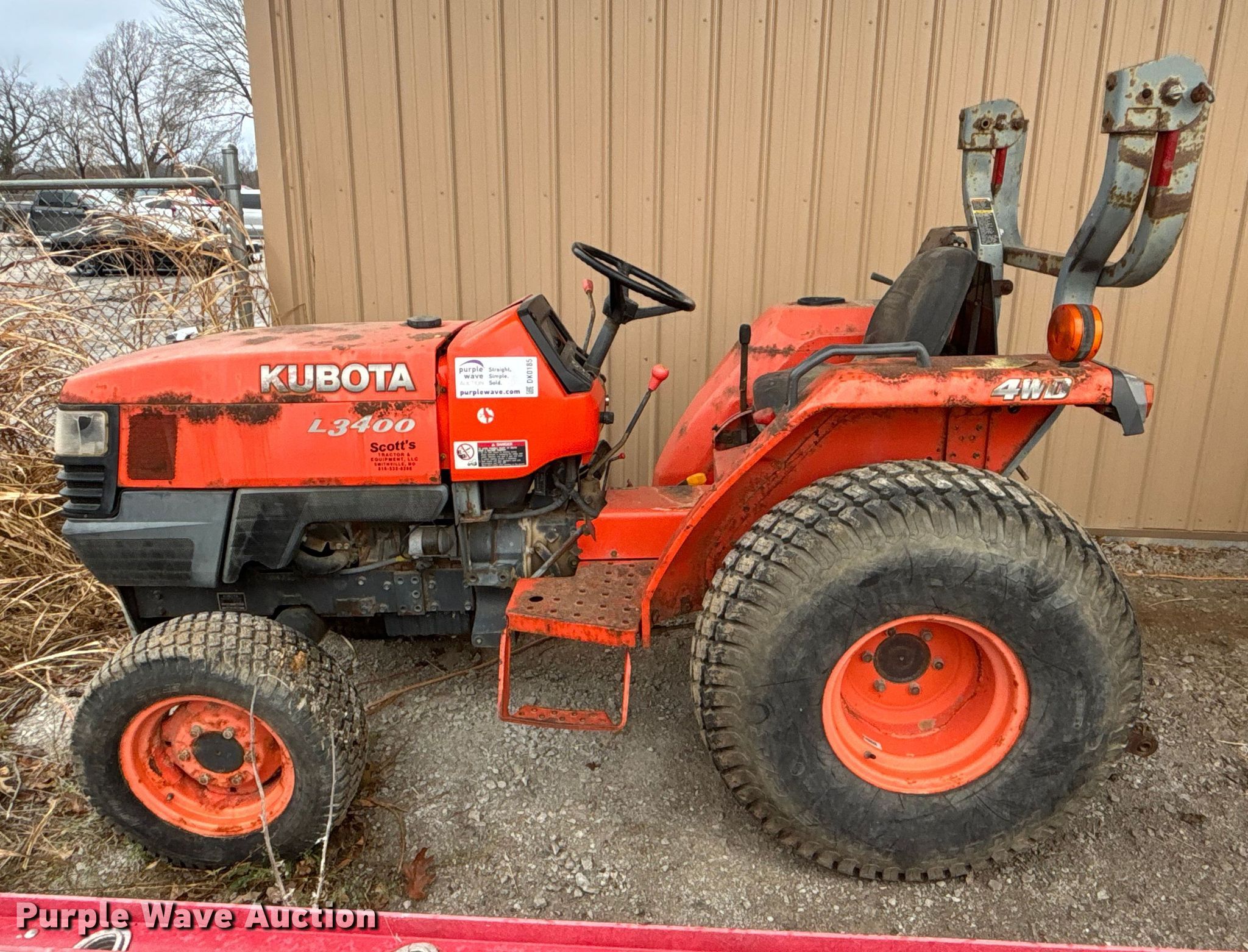 Purple Wave is selling a used Lawn Mower in Missouri. This item is a Kubota L3400 MFWD lawn tractor with the following: Hours: 839 on meter, Serial: 68610