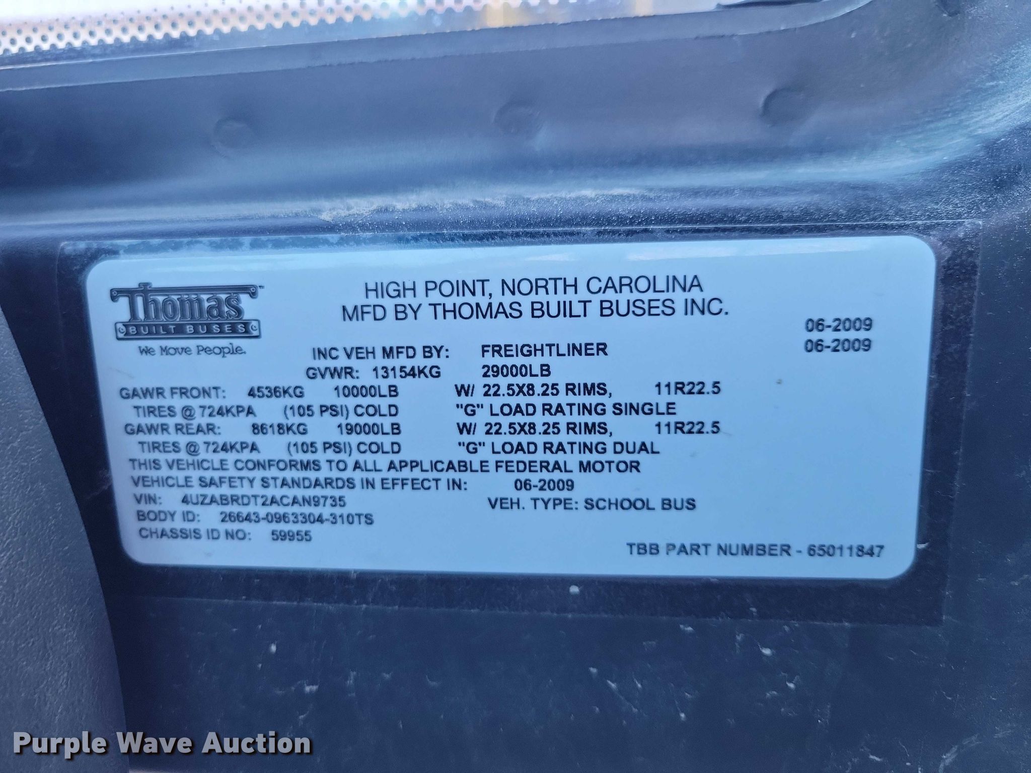 Purple Wave is selling a used Bus in Iowa. This item is a 2010 Thomas Built 310TS school bus with the following: Miles: 184,809 on odometer, Hours: 6,440 on meter, VIN: 4UZABRDT2ACAN9735