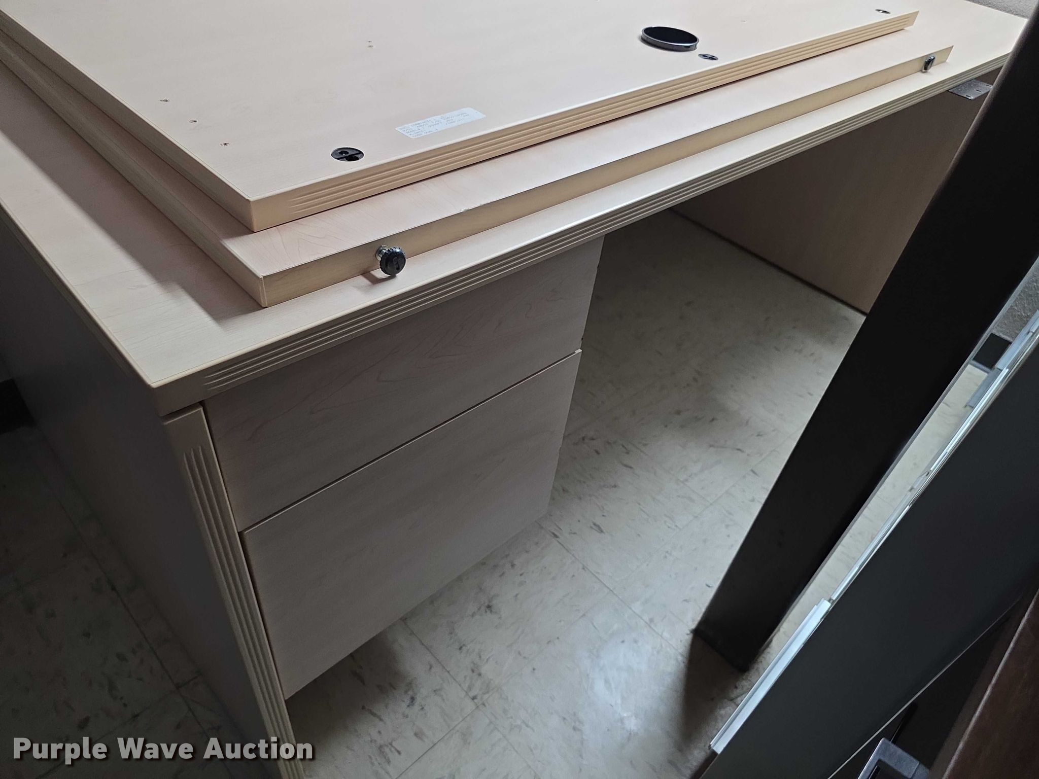 Purple Wave is selling a used Office Supplies and Equip. in Kansas. This item is a Furniture with the following: (2) desks, (2) shelves, (2) shelf organizer