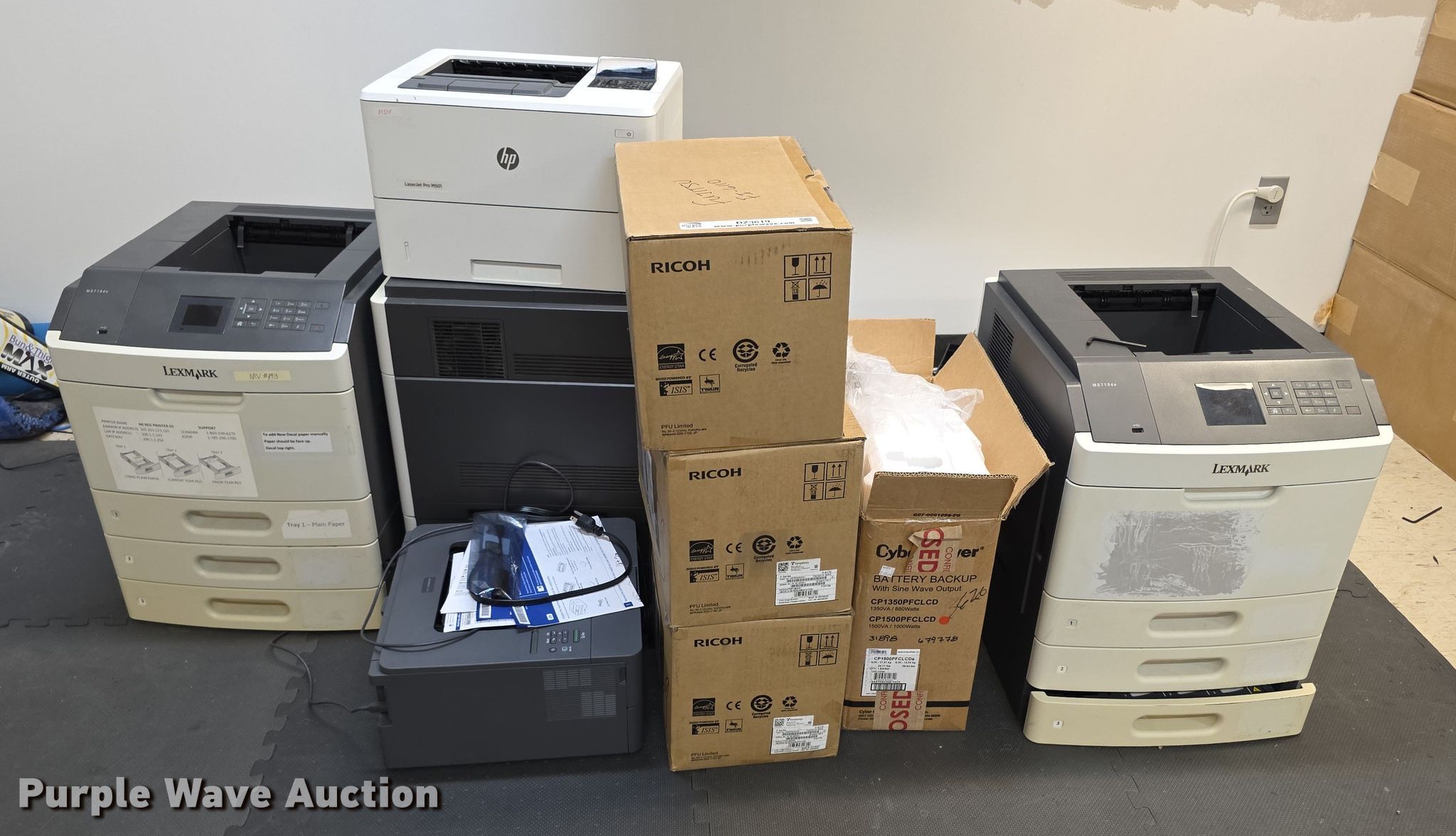 Purple Wave is selling a used Office Supplies and Equip. in Kansas. This item is a Office equipment with the following: (8) copiers, Battery backup pack