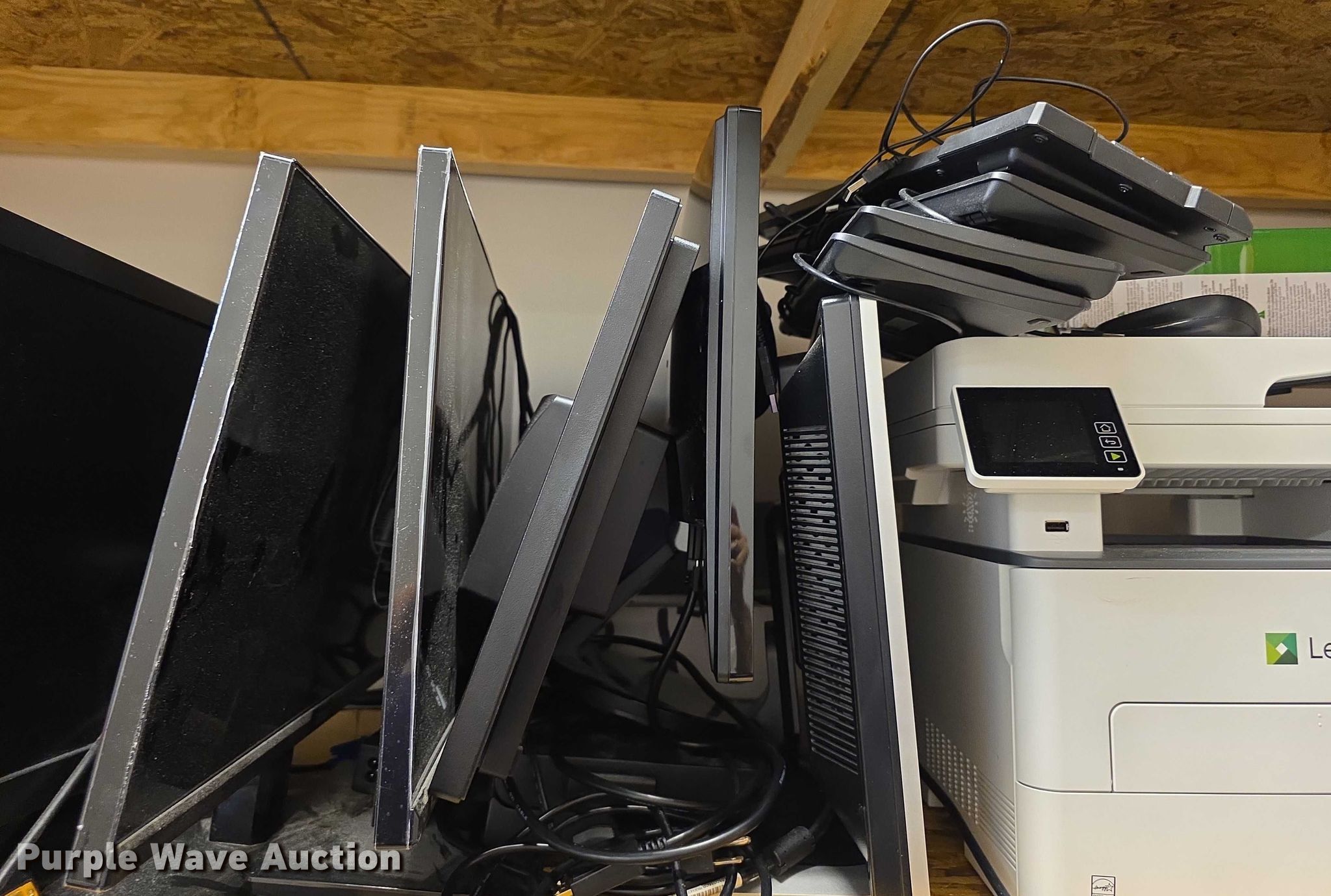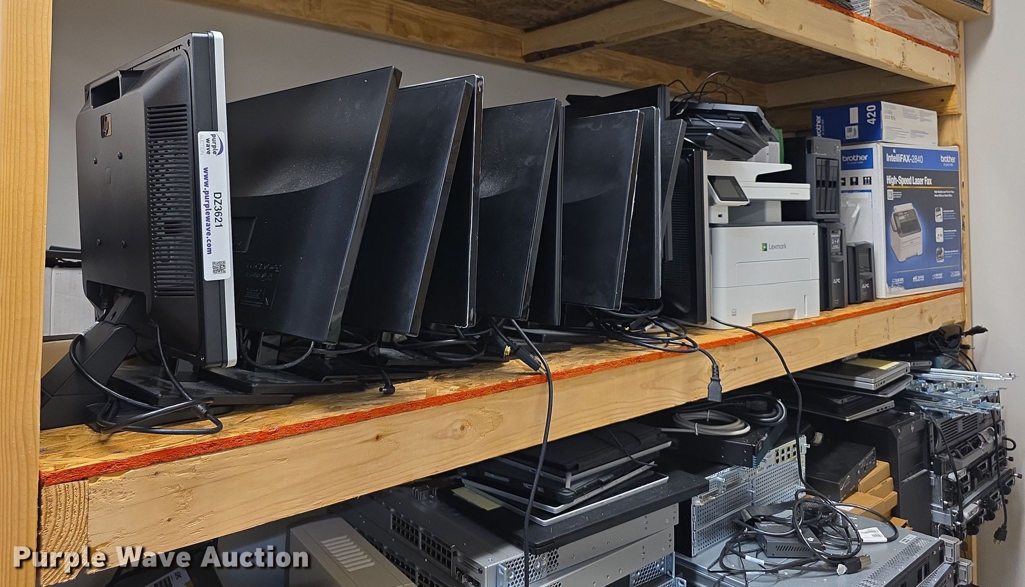 Purple Wave is selling a used Electronics in Kansas. This item is a Electronics with the following: (11) HP monitors, Lexmark copier, (4) UPS's, (2) toners, Brother laser fax machine, Unknown operating condition