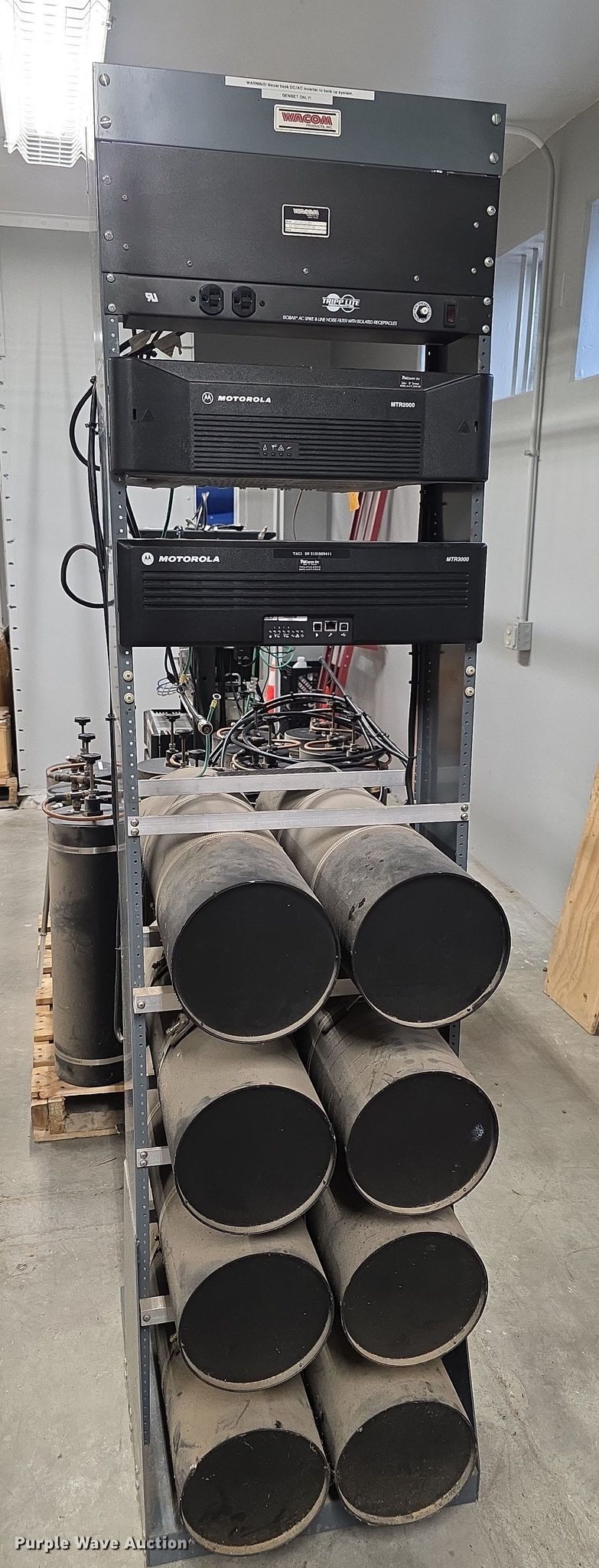 Purple Wave is selling a used Electronics in Kansas. This item is a Motorola server stand with the following: (8) canisters, (2) servers