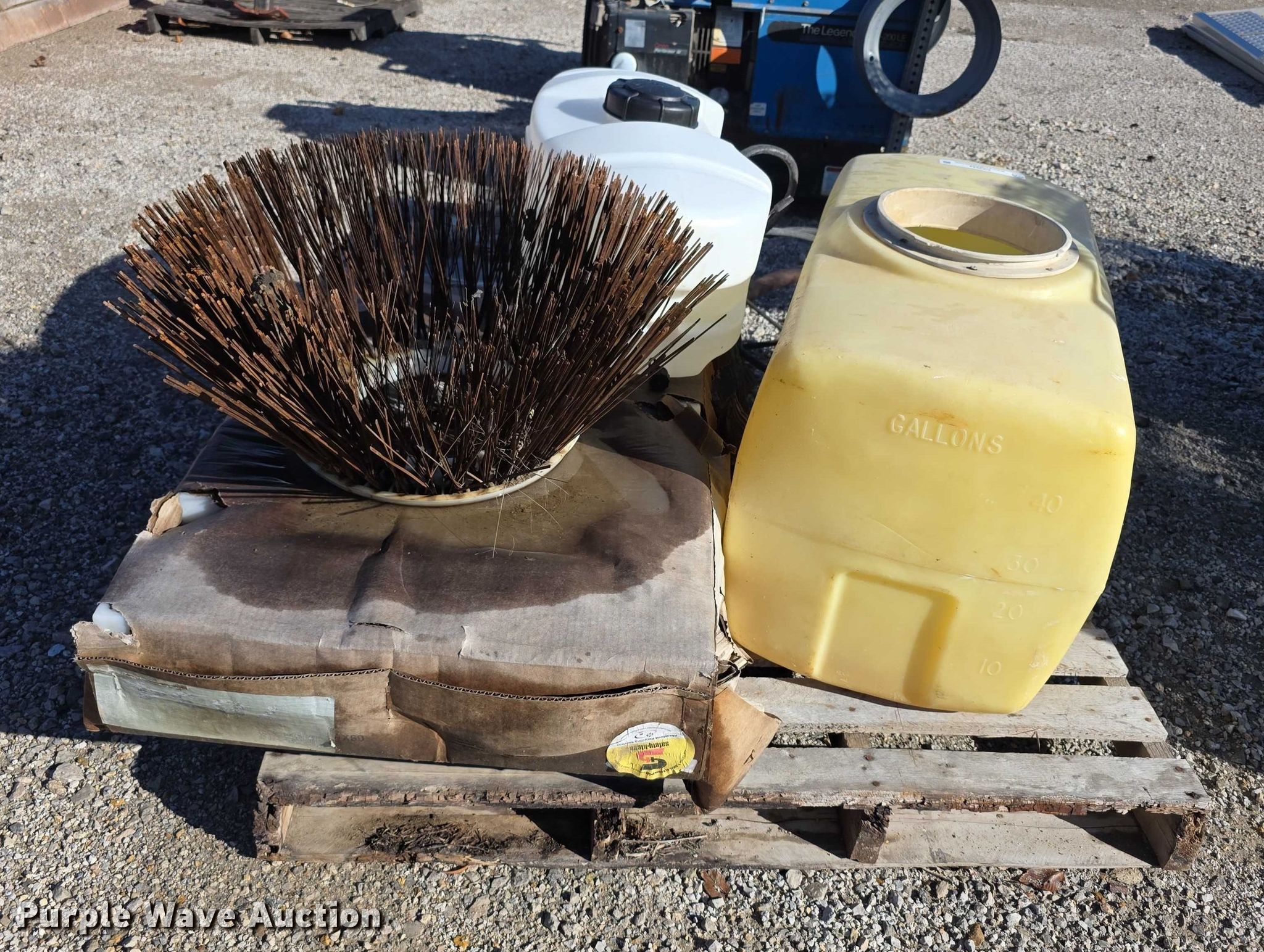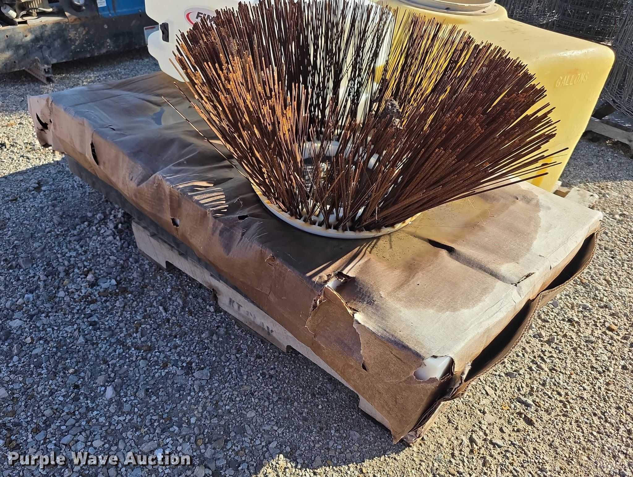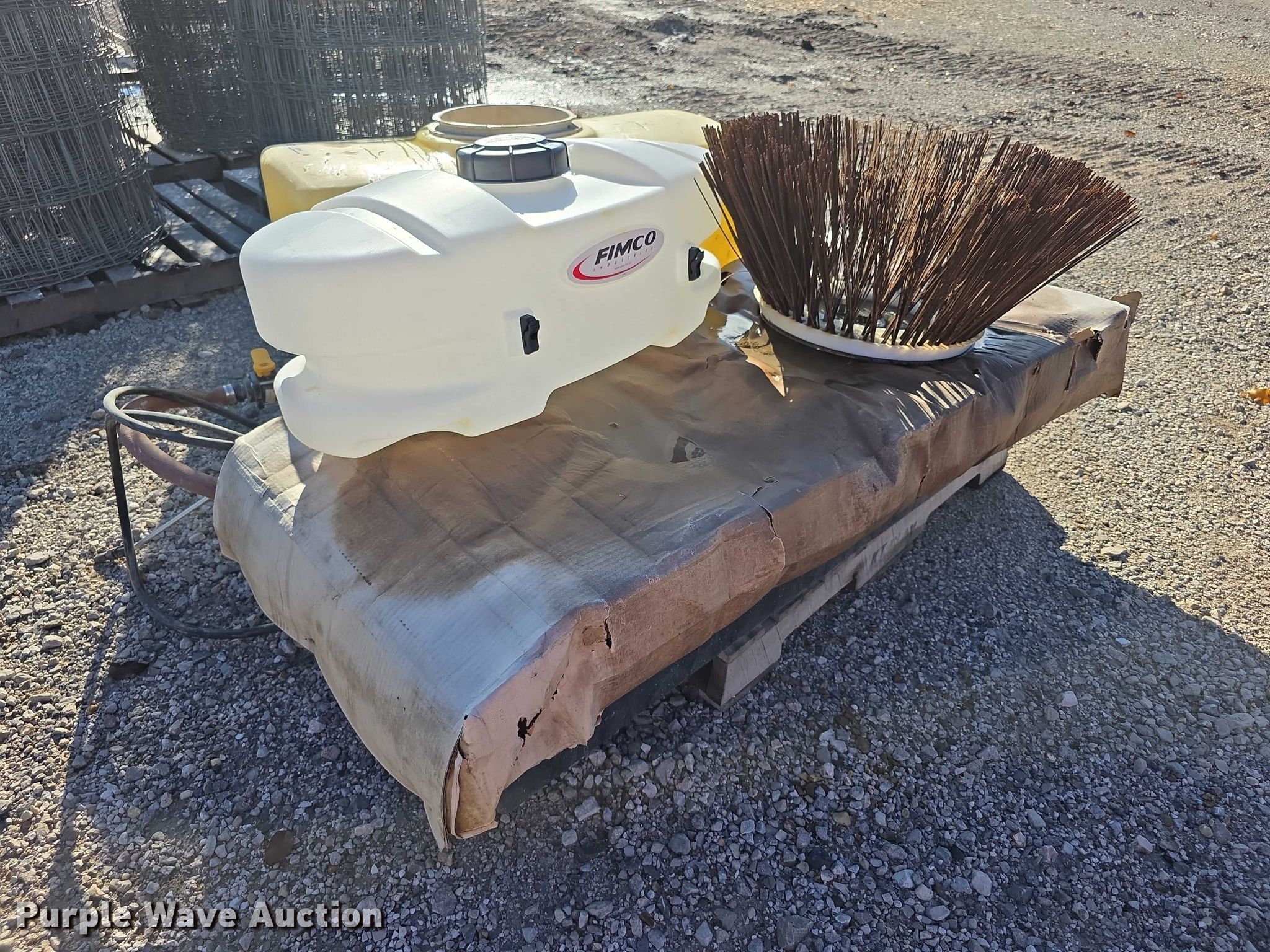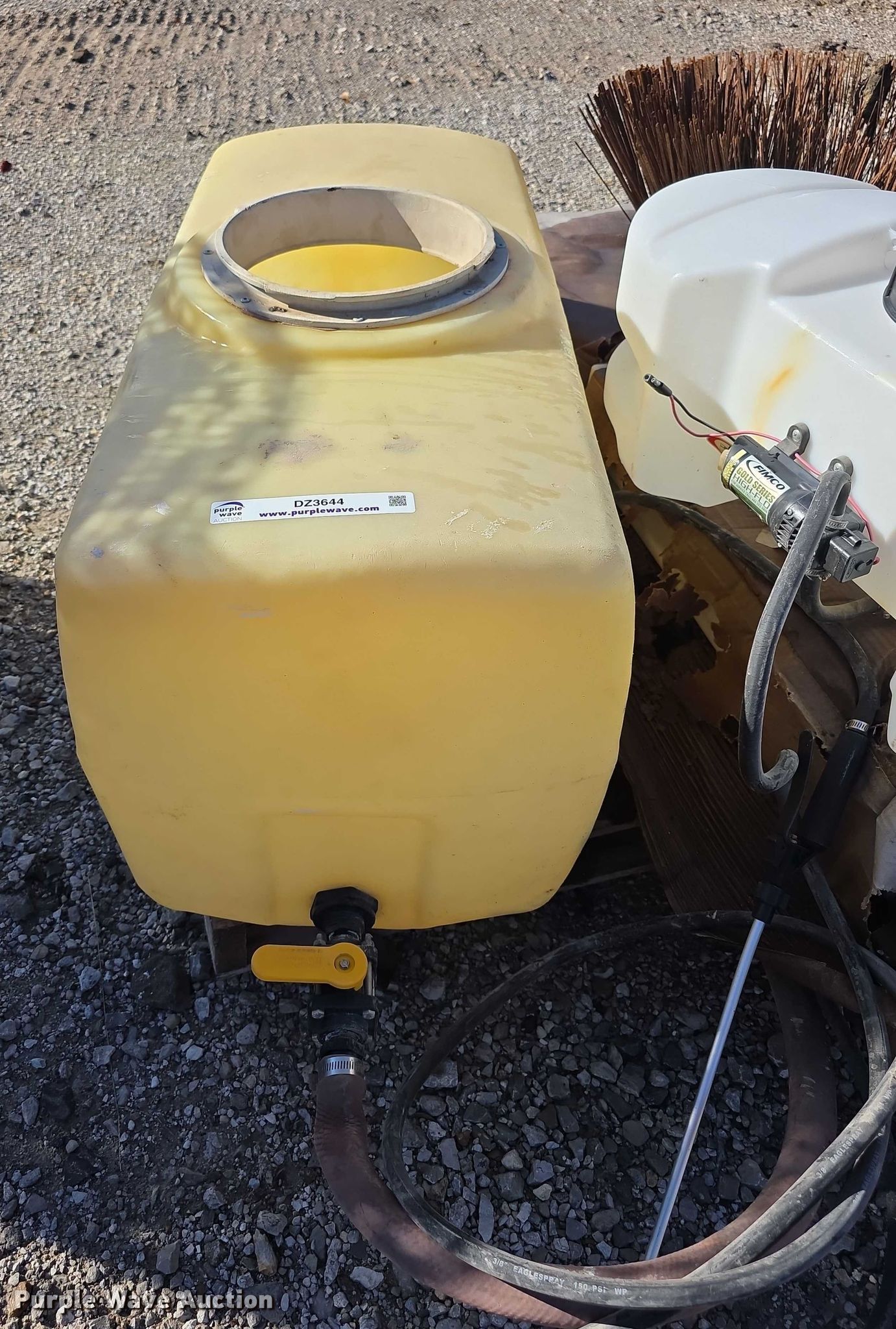 Purple Wave is selling a used Tools in Kansas. This item is a Tools with the following: Poly tank, Capacity: 50 gallons, Lid missing, Fimco sprayer tank, Hose, Spray wand, Width: 28", Sweeper gutter broom, Safety-Kleen containment tank