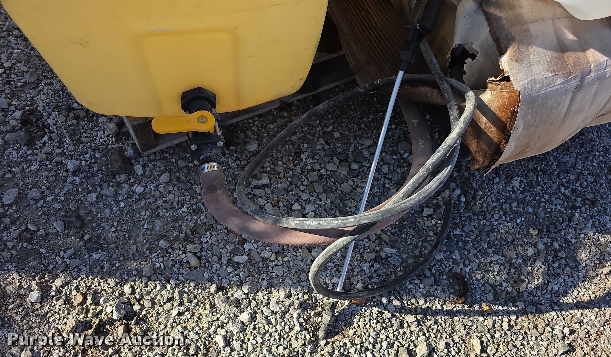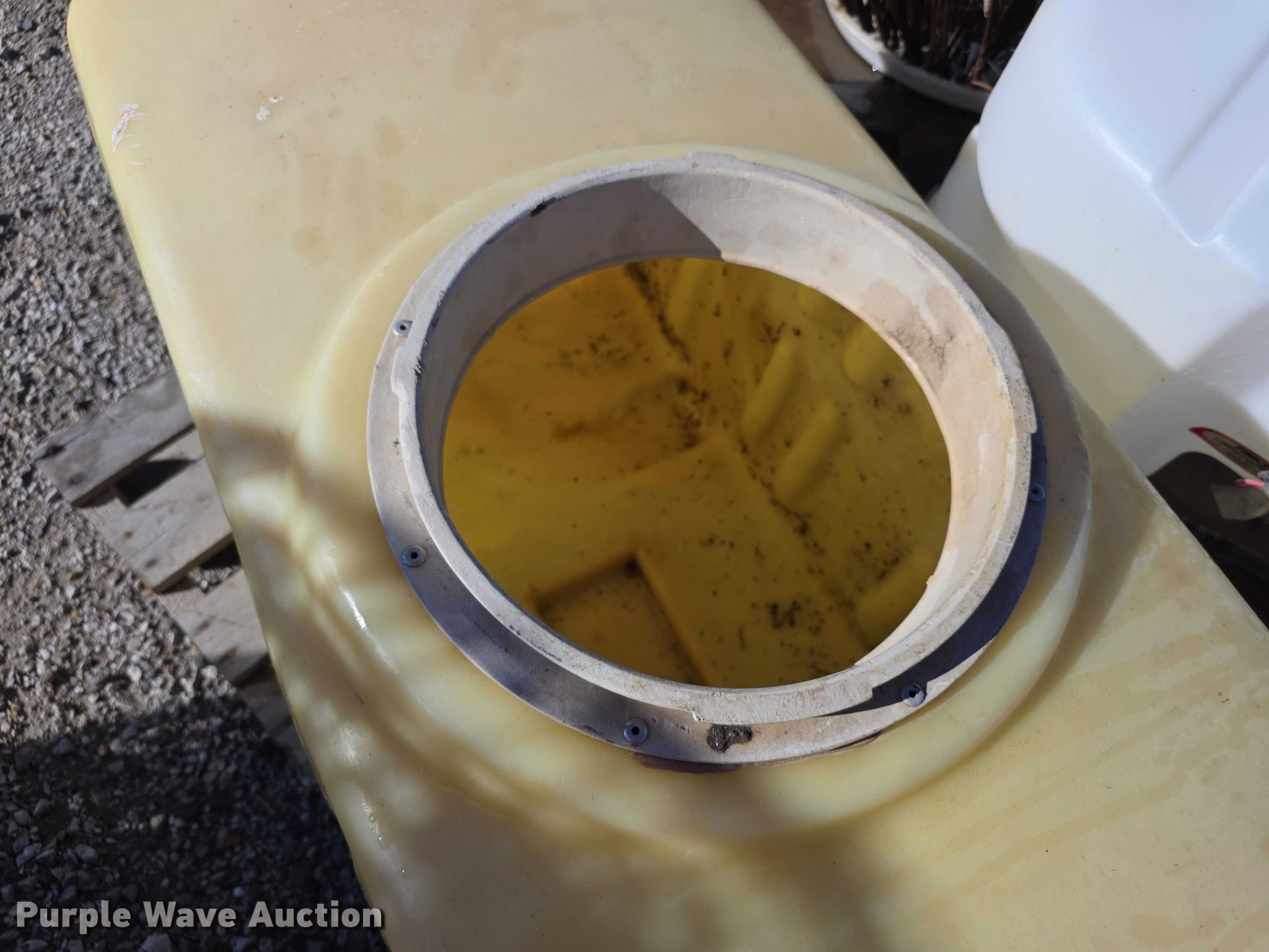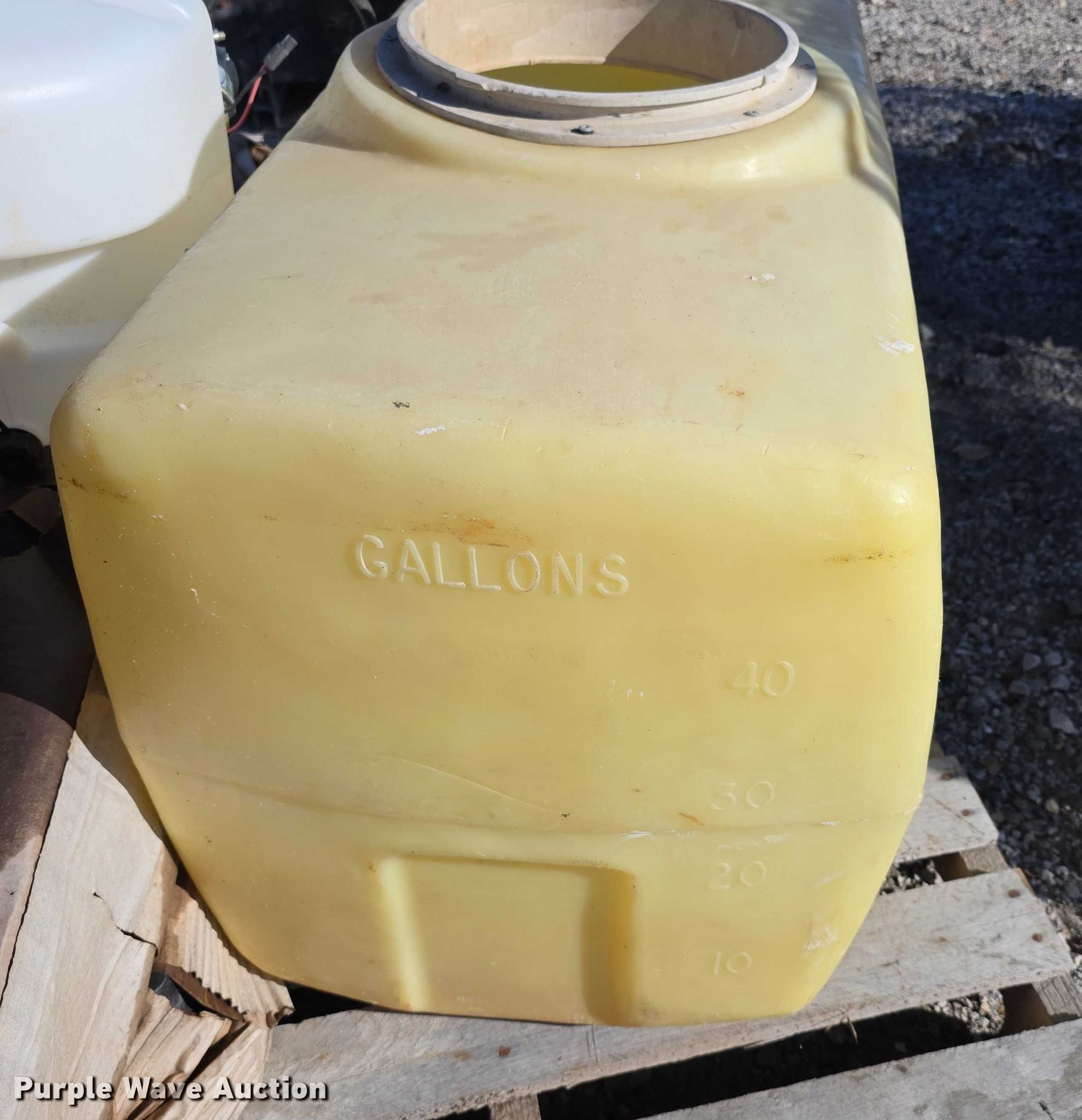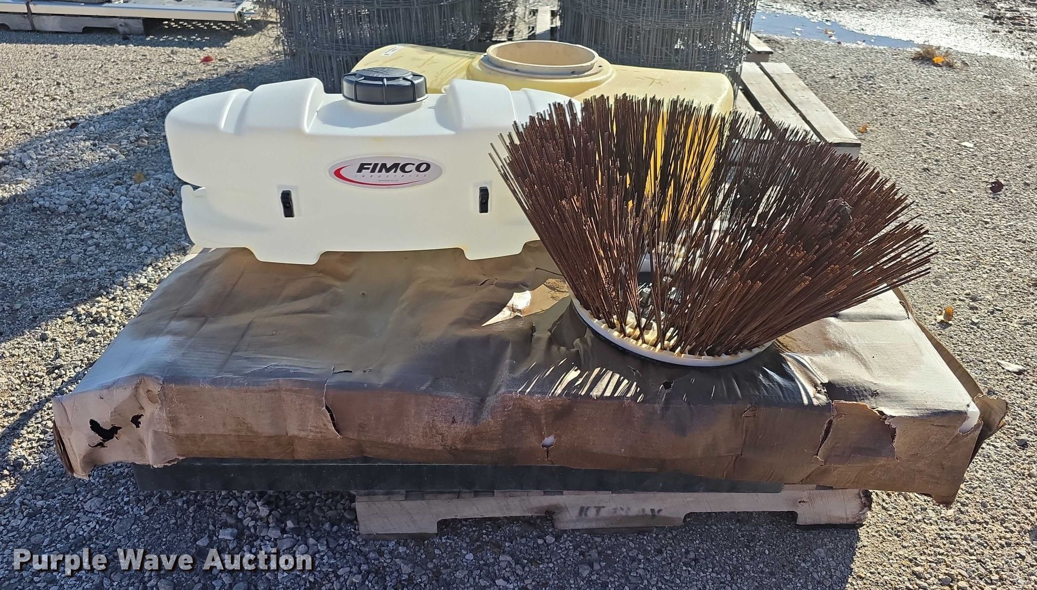 Purple Wave is selling a used Tools in Kansas. This item is a Tools with the following: Poly tank, Capacity: 50 gallons, Lid missing, Fimco sprayer tank, Hose, Spray wand, Width: 28", Sweeper gutter broom, Safety-Kleen containment tank