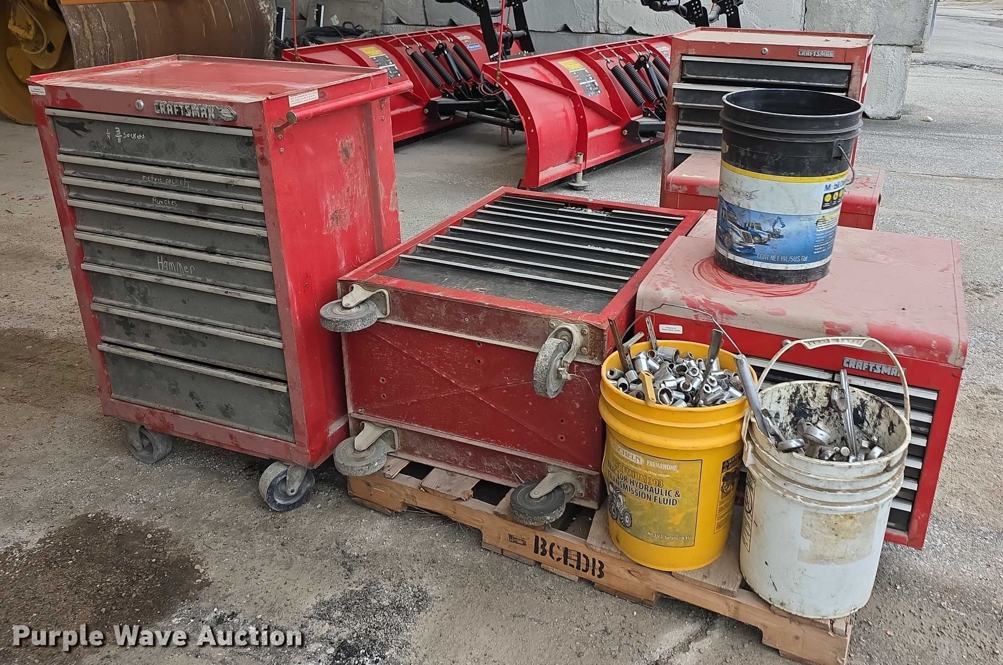 Purple Wave is selling a used Tools in Kansas. This item is a Tools with the following: (6) toolboxes, Hand tools, Sockets, Wrenches, Screwdrivers
