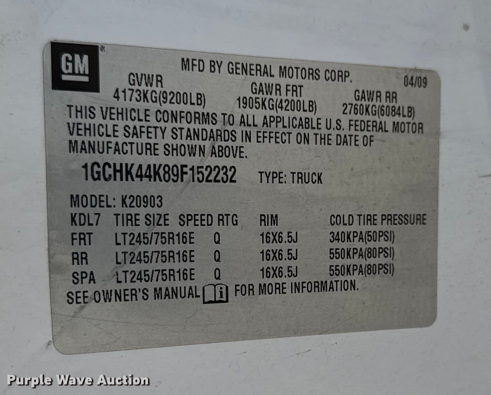 Purple Wave is selling a used 3/4 or 1 Ton Pickup or Van in Iowa. This item is a 2009 Chevrolet Silverado 2500HD pickup truck with the following: Miles: 225,470 on odometer, VIN: 1GCHK44K89F152232