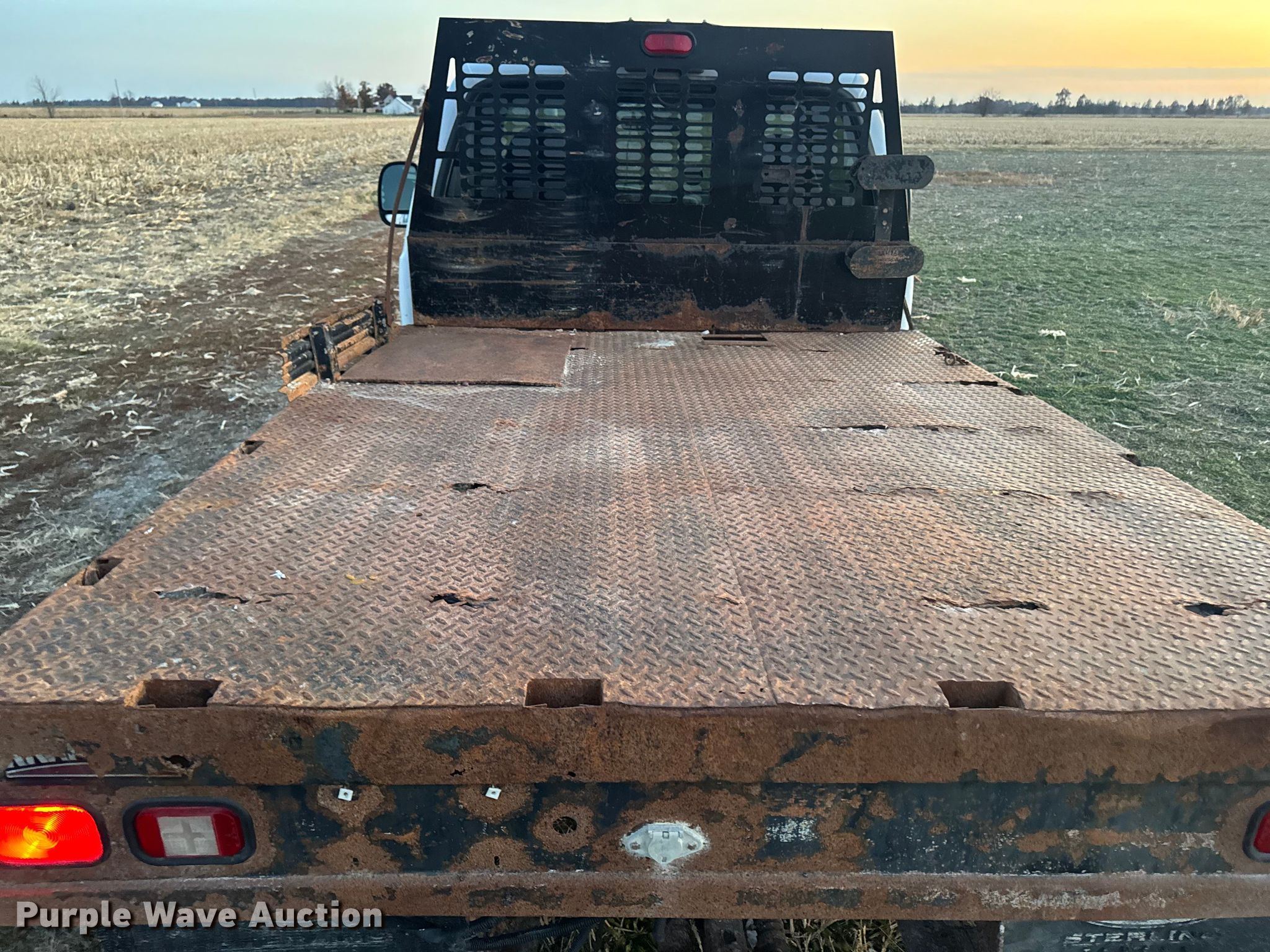 This 2000 Ford F350 Super Duty flatbed pickup truck will sell to the highest bidder regardless of price.
