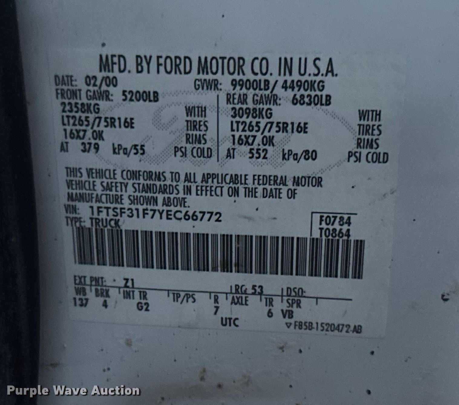 - VIN: 1FTSF31F7YEC66772