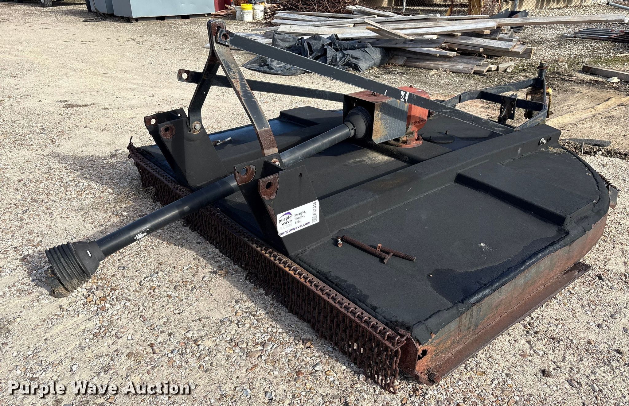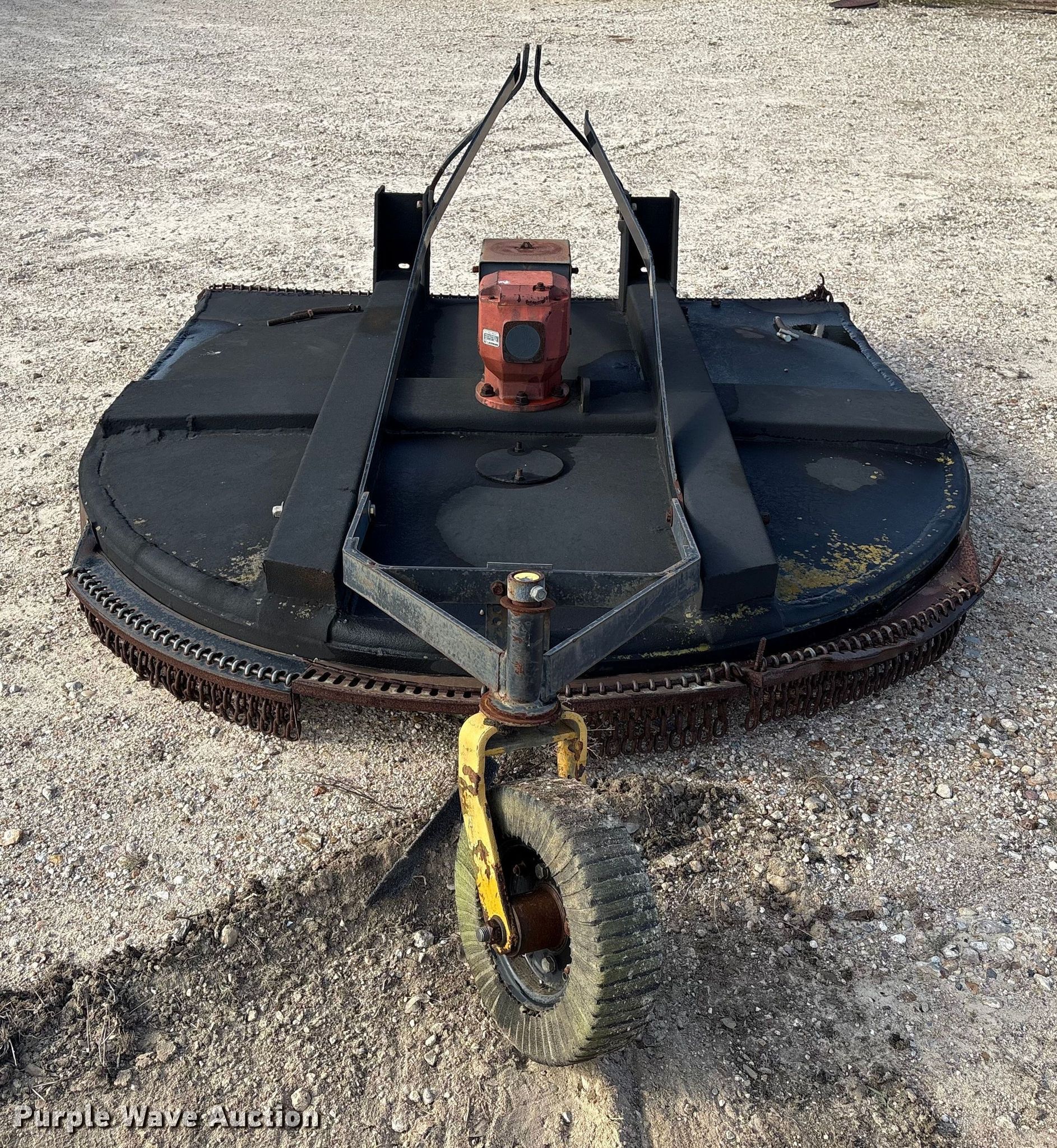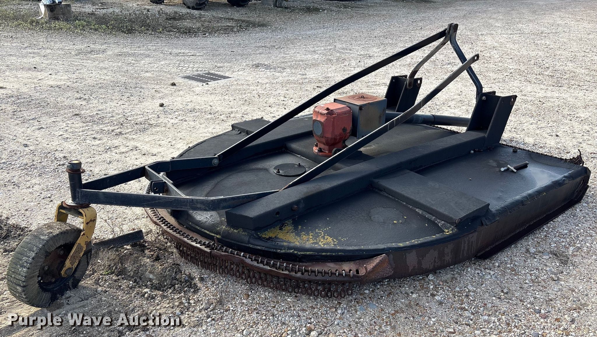 Bush Hog rotary mower. Serial: 70992. Features Width: 89", PTO: 540, Hitch: Three point. Tires Solid. Galveston County Consolidated Drainage District. Friendswood, TX 77546