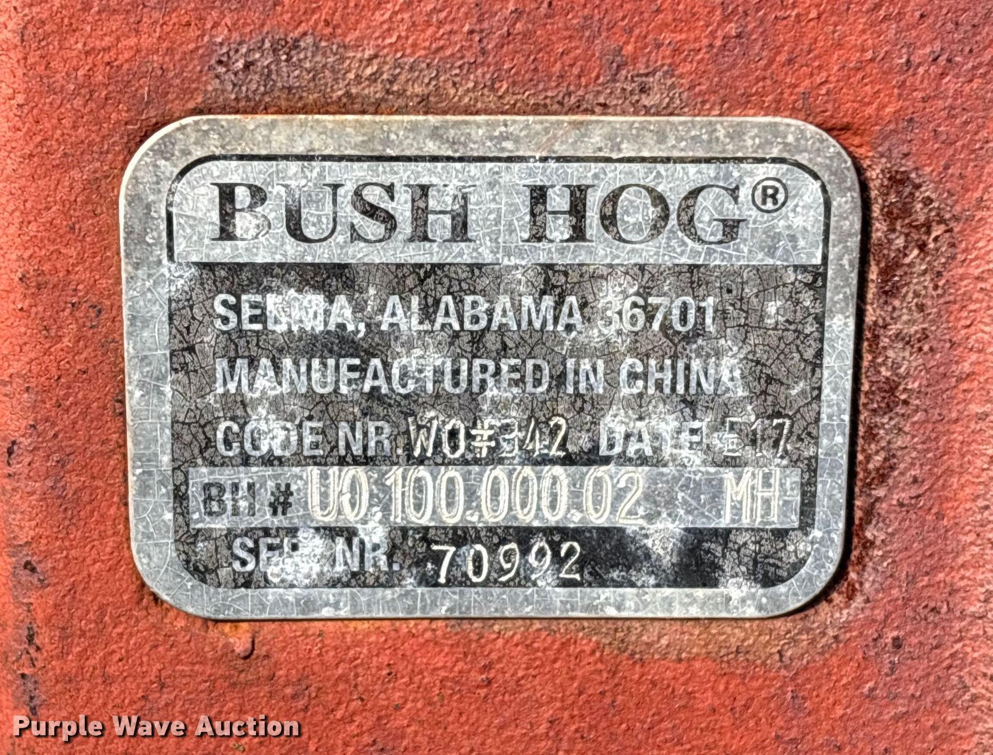 Purple Wave is selling a used Mower, Cutter, Shredder in Texas. This item is a Bush Hog rotary mower with the following: Serial: 70992