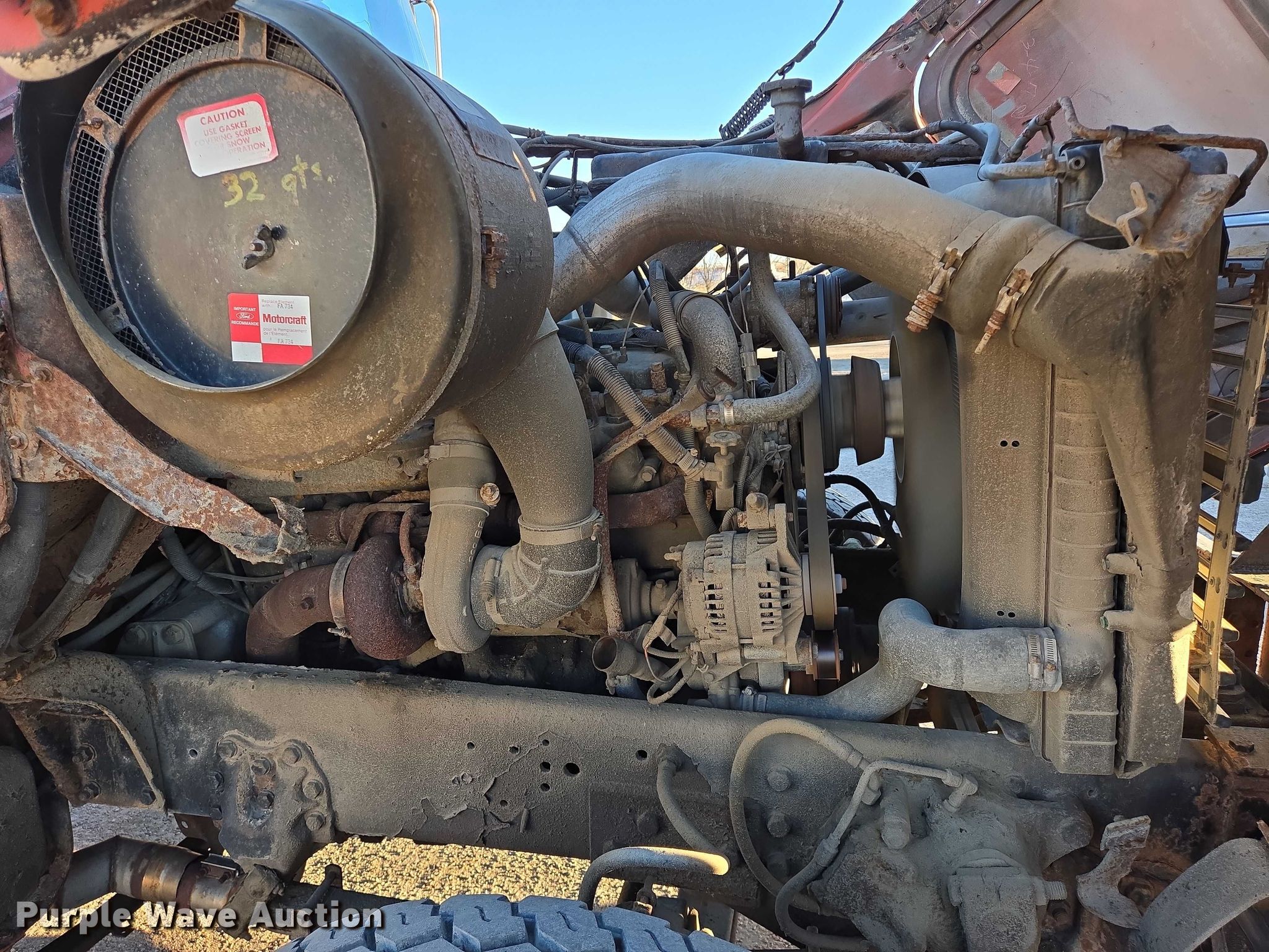 1992 Ford LT9000 dump truck. Miles: 301,887 on odometer, Hours: 386 on meter, VIN: 1FDZU90S9NVA21212, Unit #: 530. Engine Caterpillar 3176, Displacement: 10.0L, Cylinders: 6, Fuel type: Diesel. Transmission Manual, Speed: 7. Chassis Axles: Tandem, Differential lock: Inter-axle, Suspension: Spring over walking beam, Brakes: Air, Front mount PTO. Interior Heat, Heated mirrors, Cruise control. Features Bed Dump bed, Length: 14', Width: 96", Side height: 44", Bed type: Steel, Ram: Dual, Wing plow Width: 144". Tires Front: 385/65R22.5, Rear: 11R22.5. Notes Rust damage, End gate missing, Suspension issues, Windshield chipped or cracked. South Dakota title. Title distribution may be delayed up to 14 days from verification of funds. Tripp County, SD. Winner, SD 57580